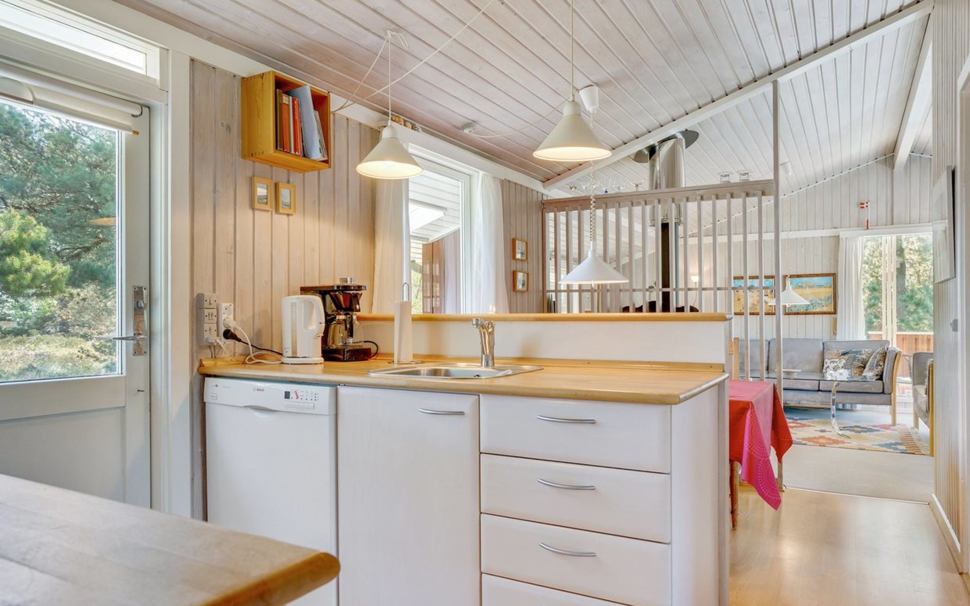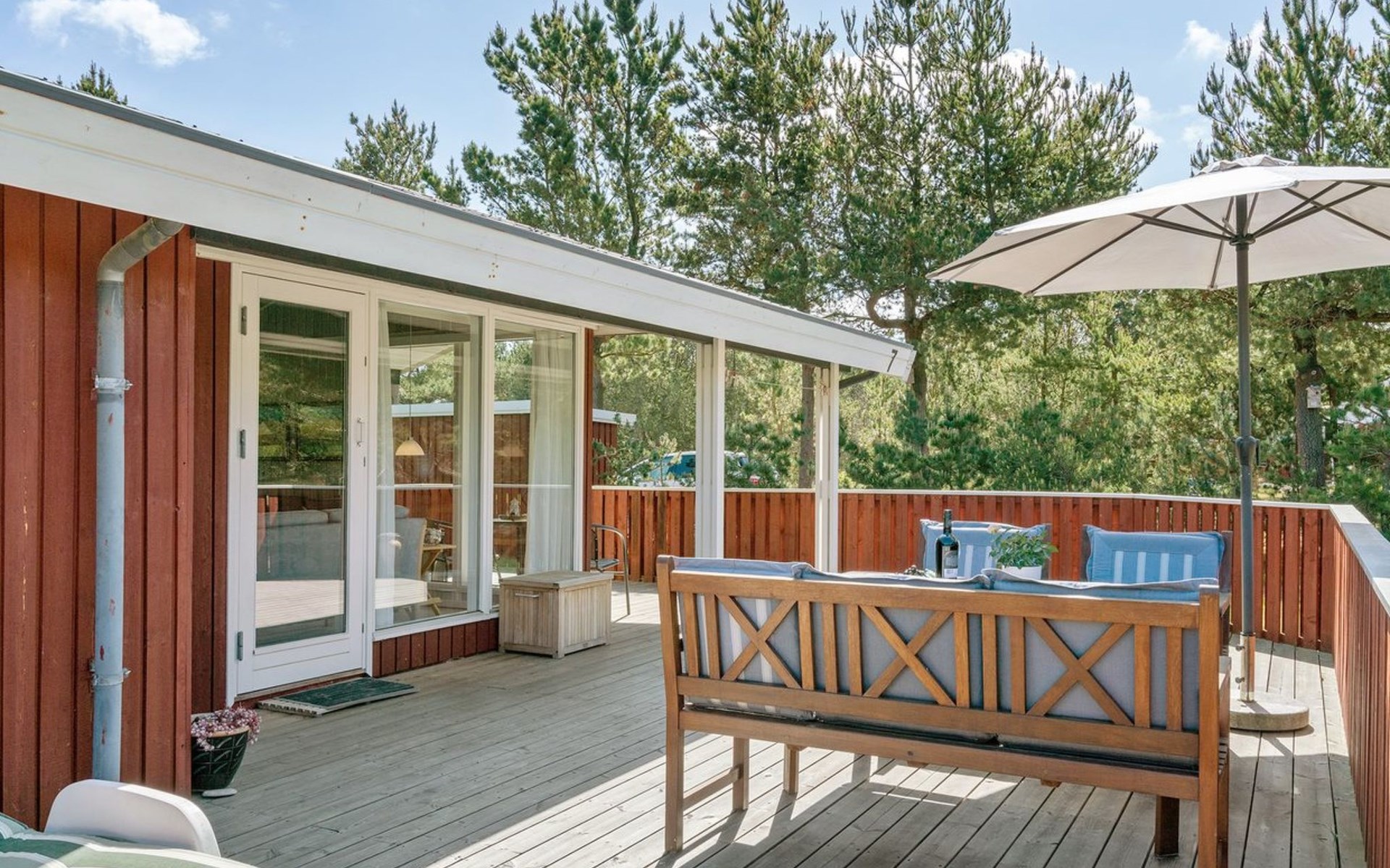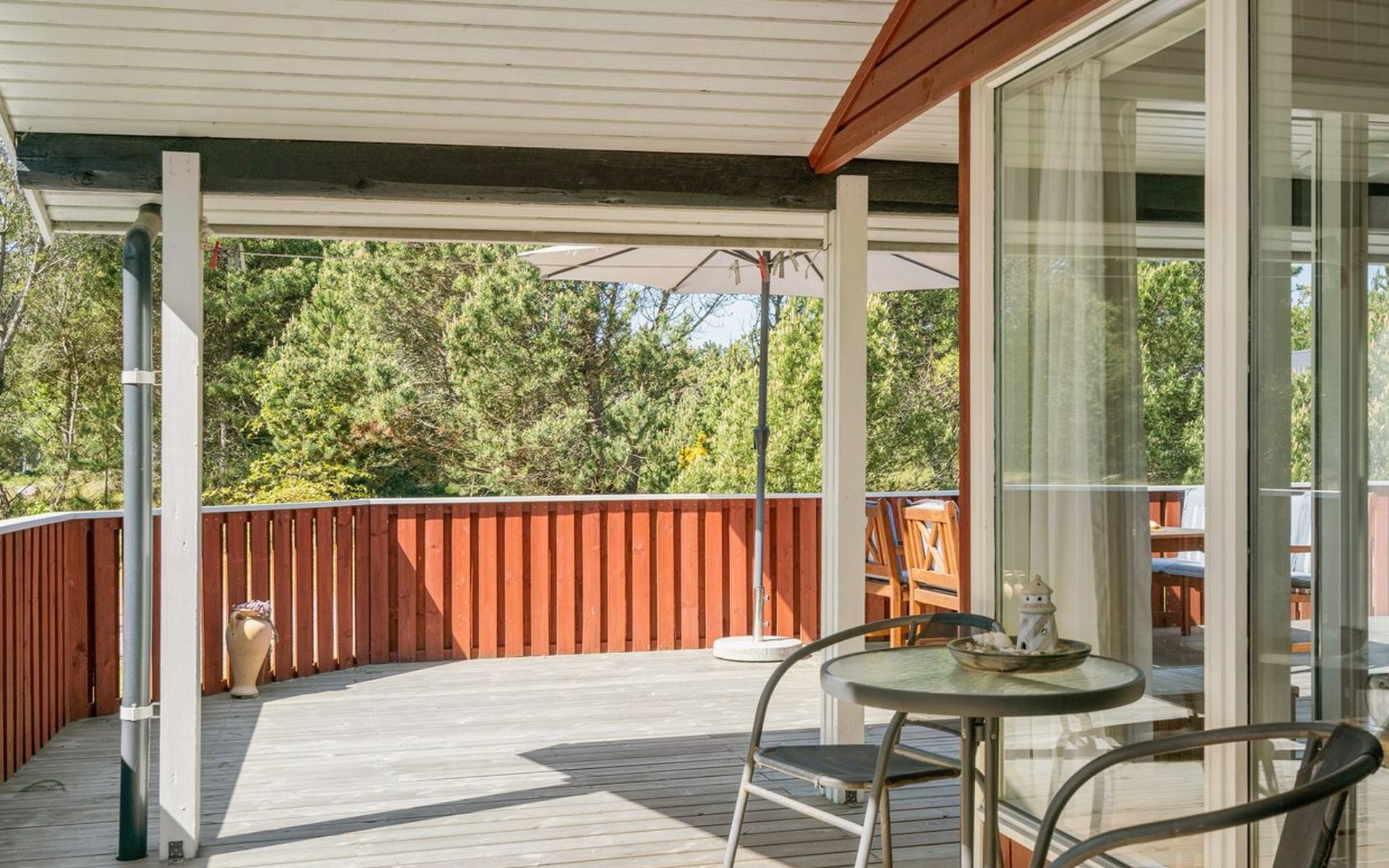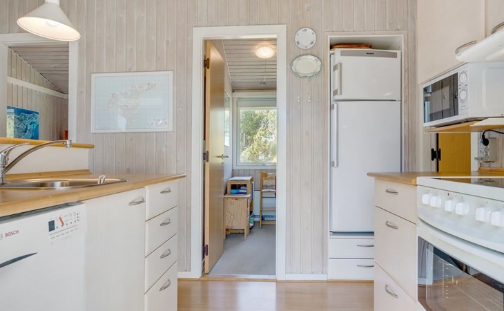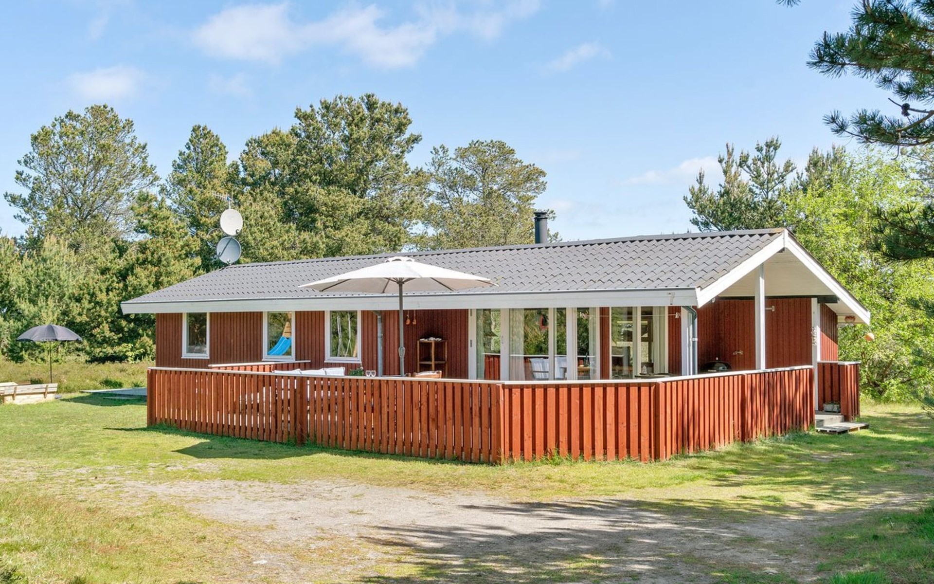 Eengezinswoning, bouwjaar 1974. 350 m van zee. Voor alleengebruik: wild terrein 1.400 m2. Terras (60 m2), kinderspeelplaats (schommel). In het huis: wasmachine. Parkeerplaats bij het huis. Levensmiddelenwinkel 1 km. Golfterrein 3.5 km. De eigenaar accepteert geen jeugdgroepen.