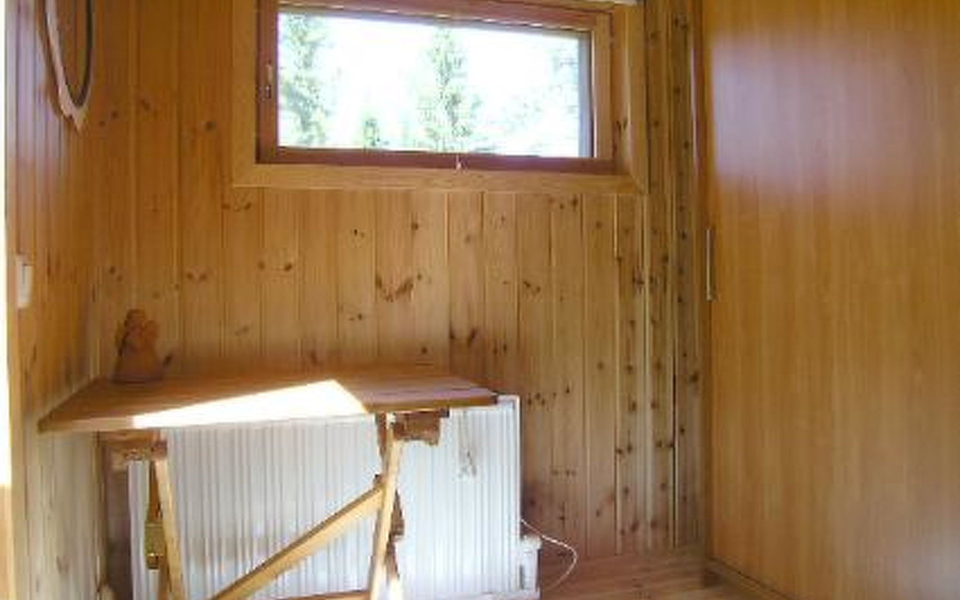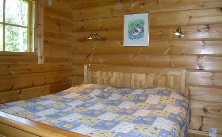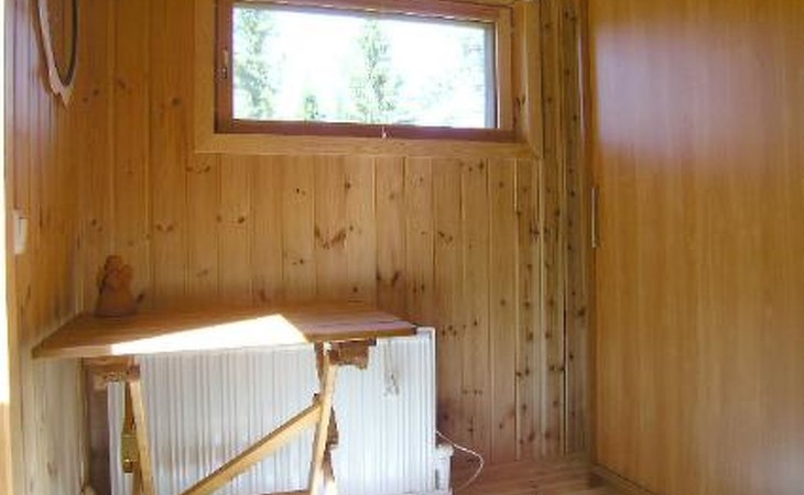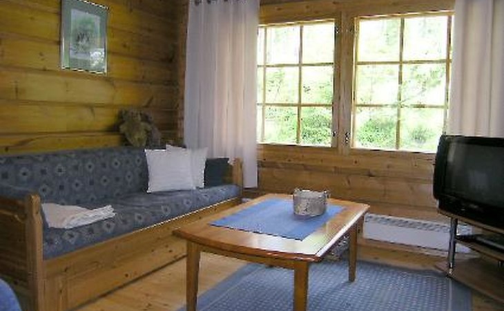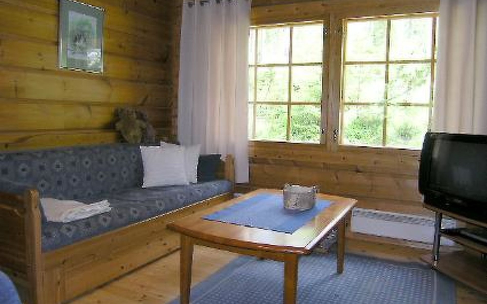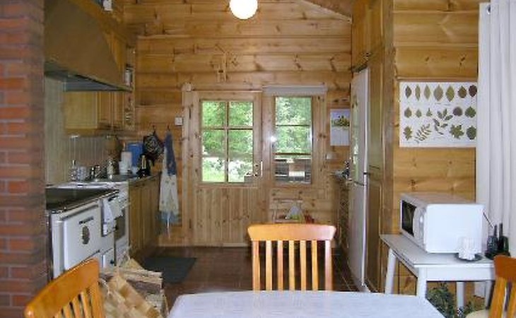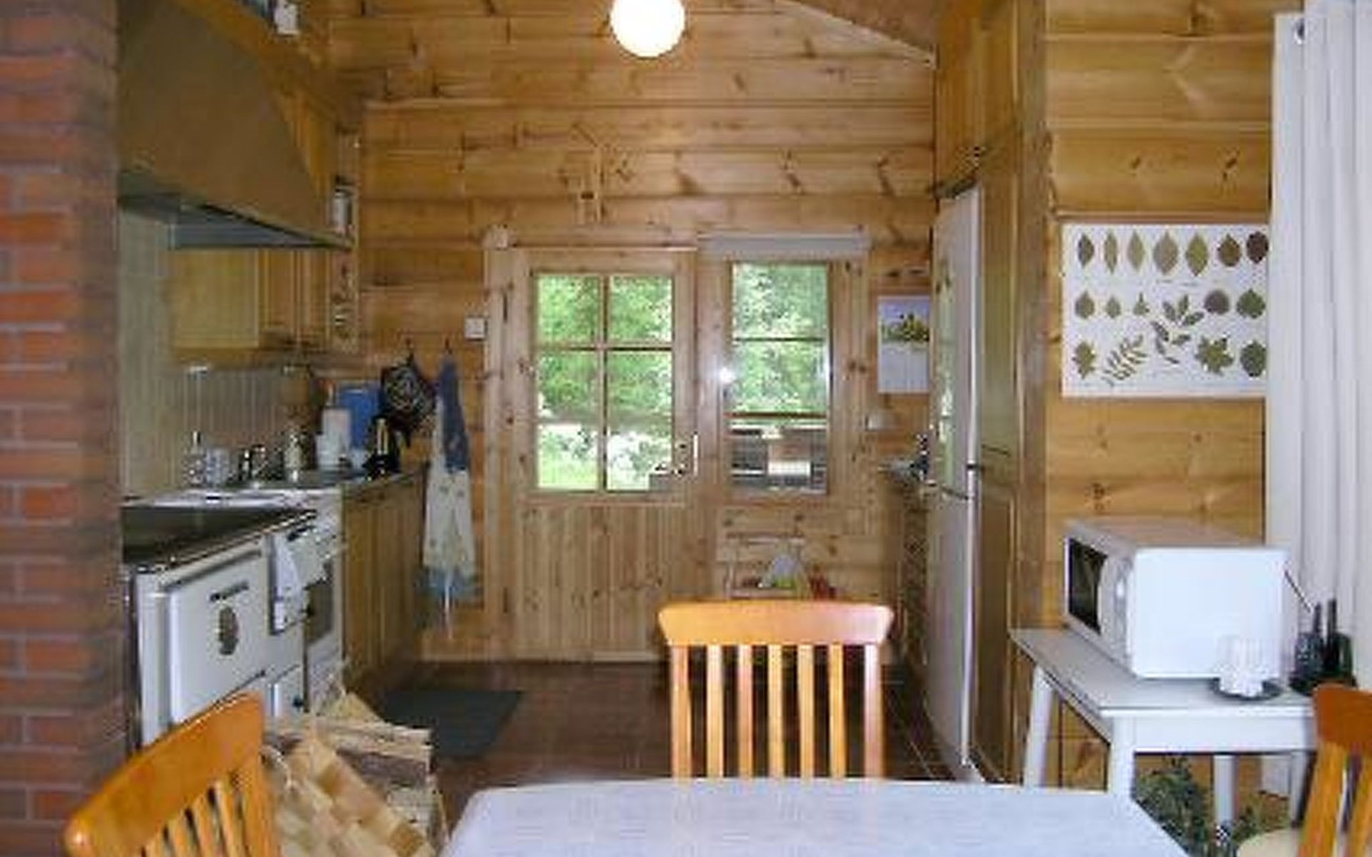 Log cabin 2000, kitchen-living room: sofa bed for two, bedroom with double bed, bedroom with one bed, hall, utility room/dressing room, shower room, sauna (electric) and a covered terrace. There is also a wood-burning stove in the kitchen.
