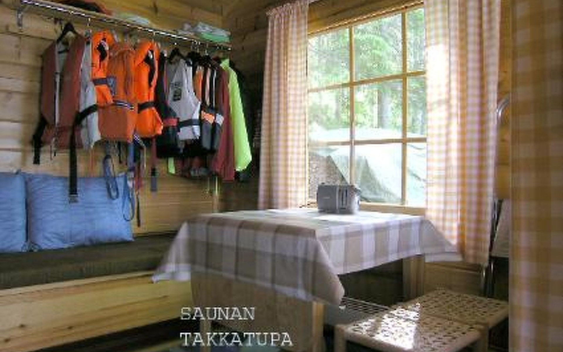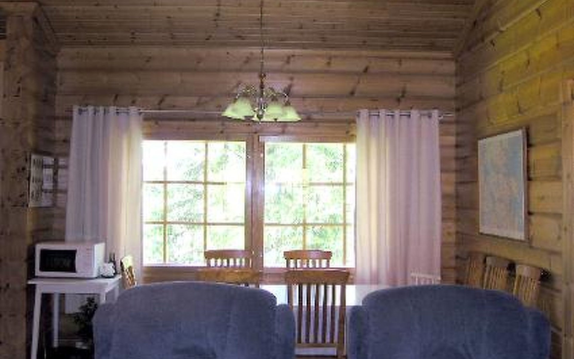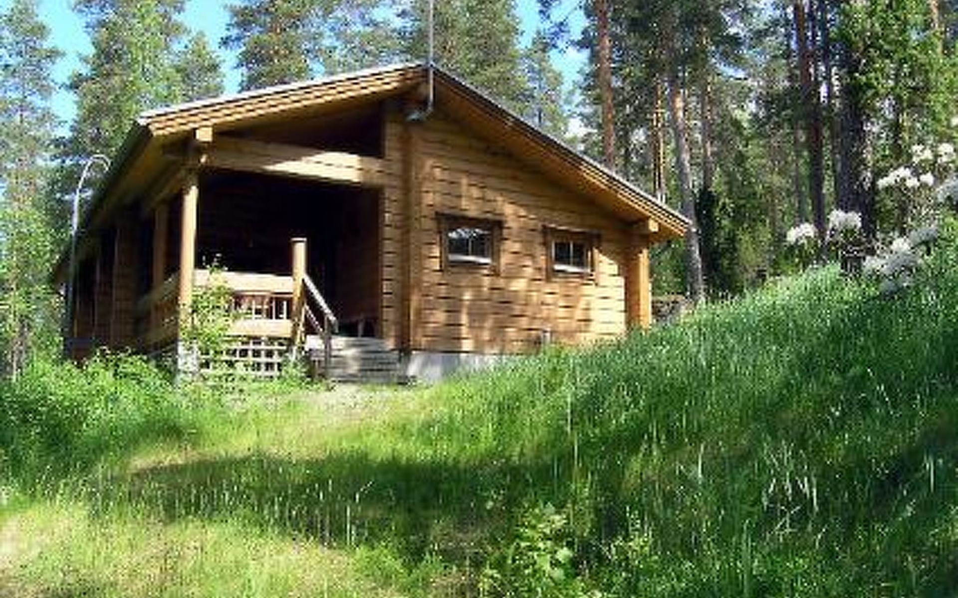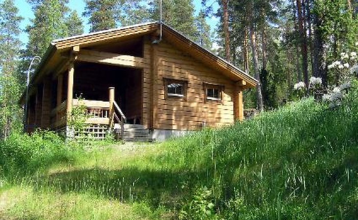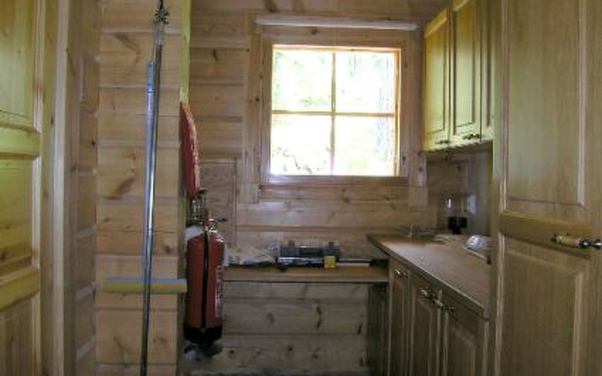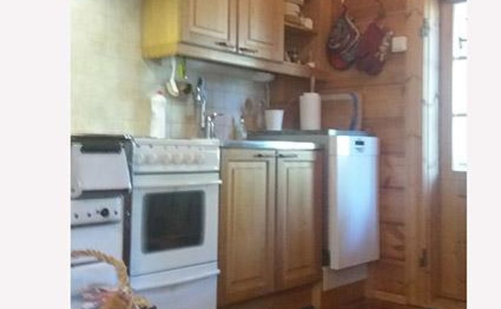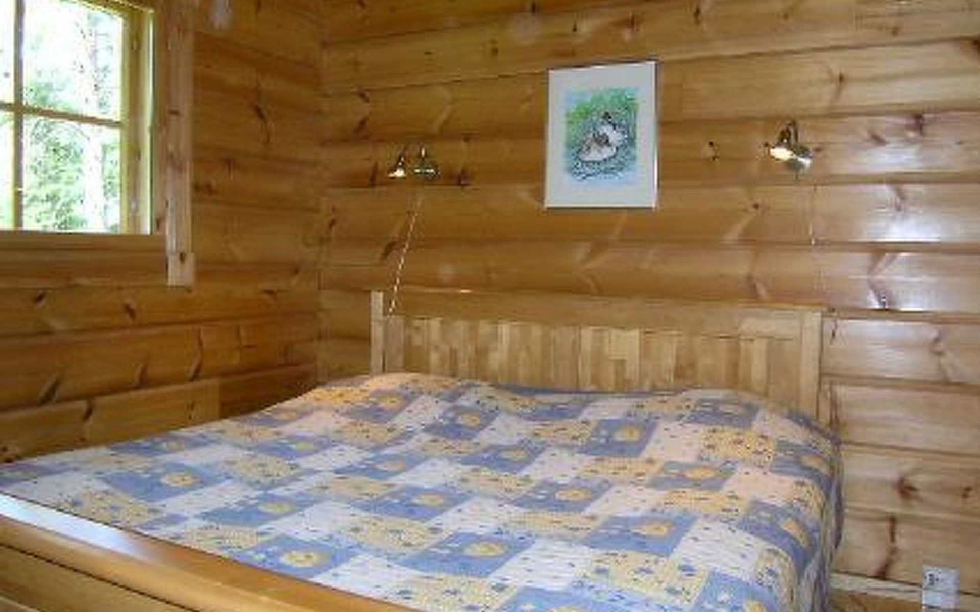 Log cabin 2000, kitchen-living room: sofa bed for two, bedroom with double bed, bedroom with one bed, hall, utility room/dressing room, shower room, sauna (electric) and a covered terrace. There is also a wood-burning stove in the kitchen.
