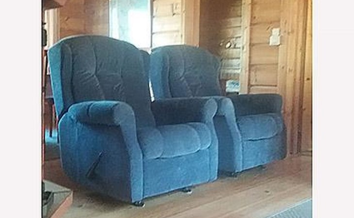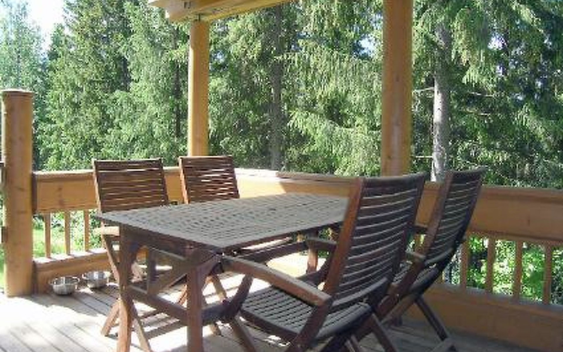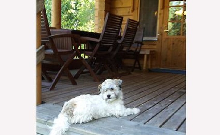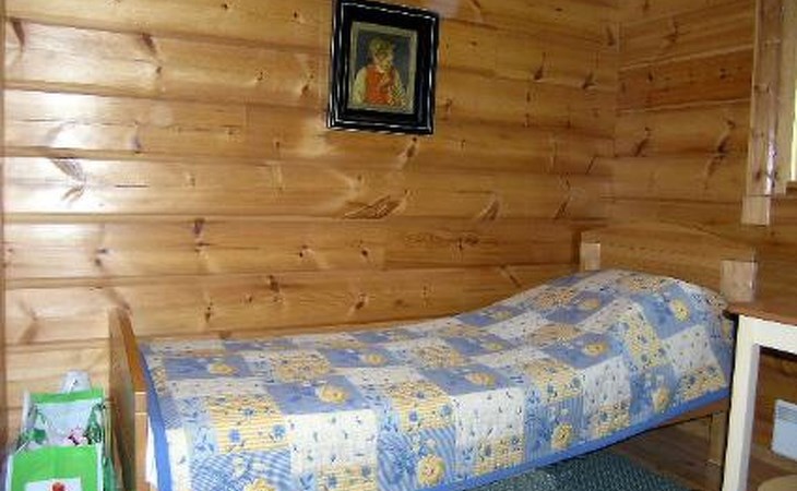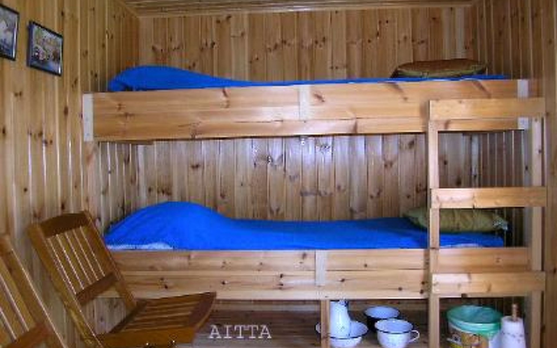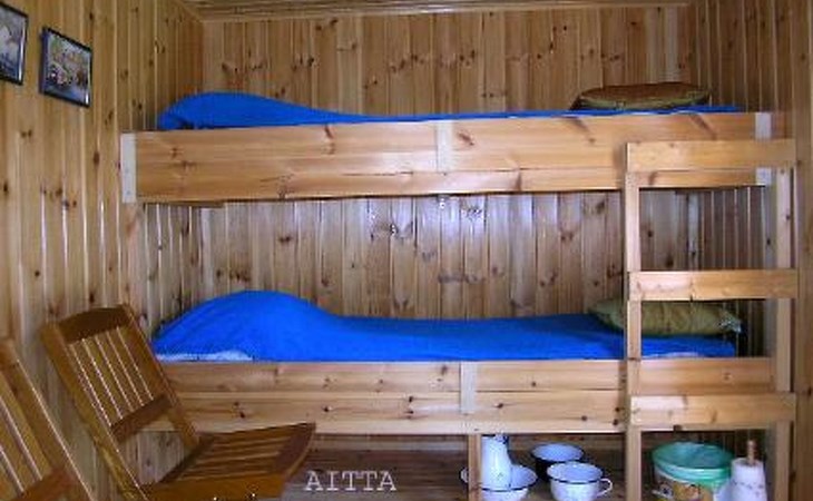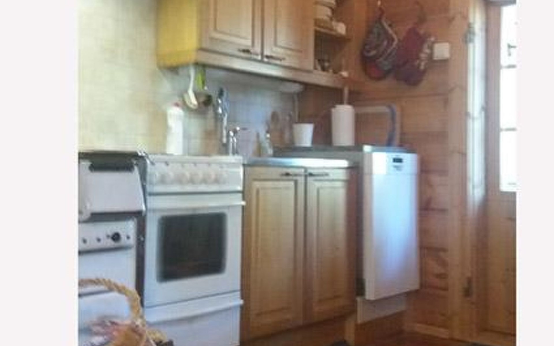Log cabin 2000, kitchen-living room: sofa bed for two, bedroom with double bed, bedroom with one bed, hall, utility room/dressing room, shower room, sauna (electric) and a covered terrace. There is also a wood-burning stove in the kitchen.