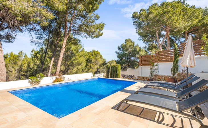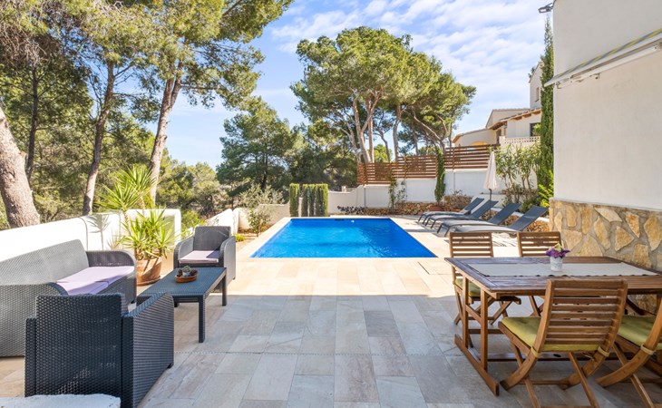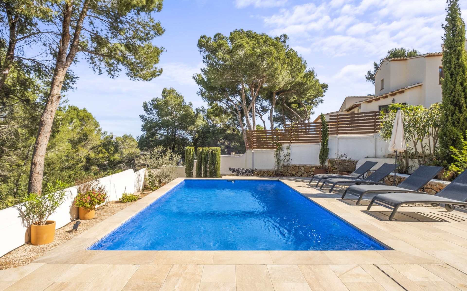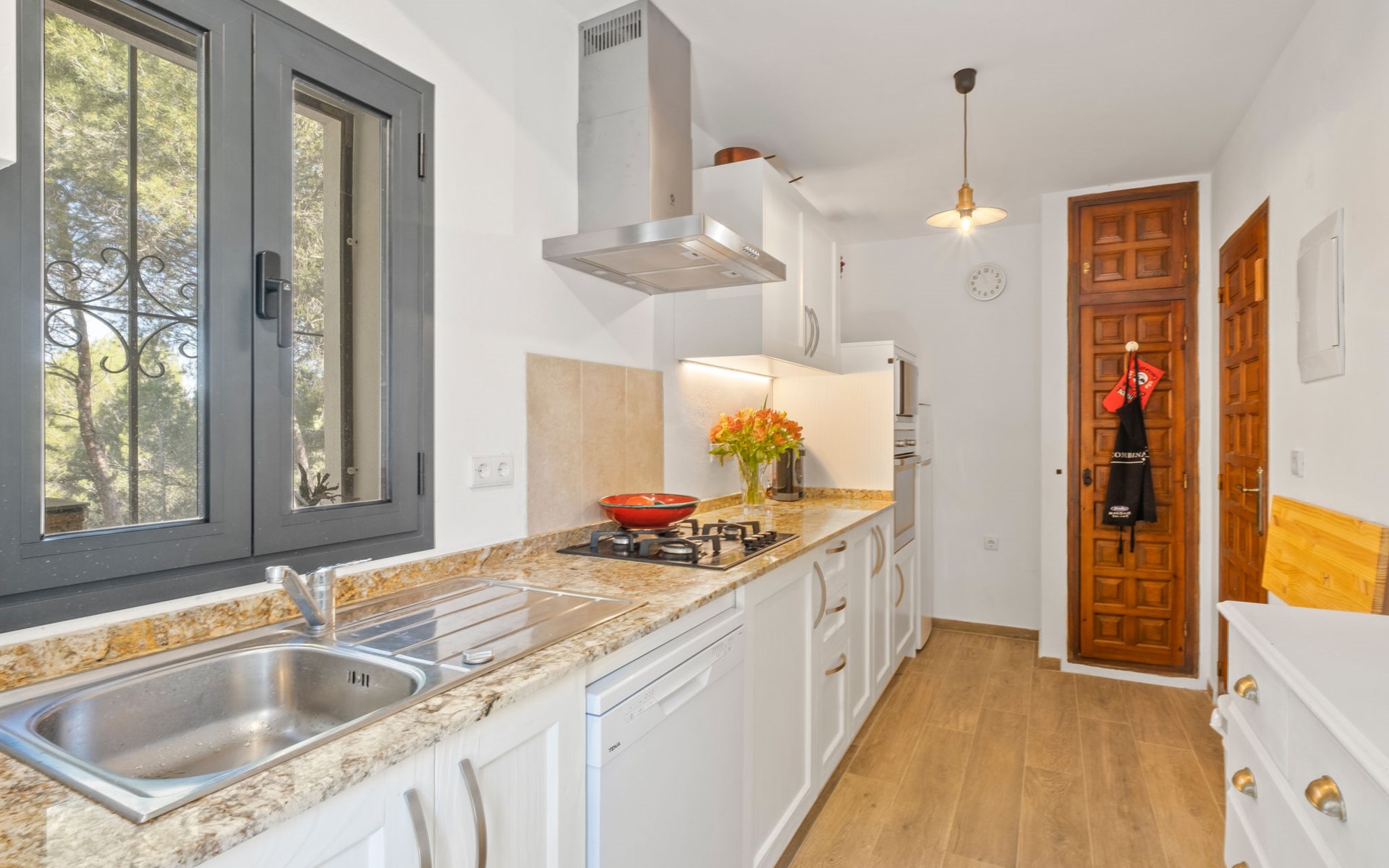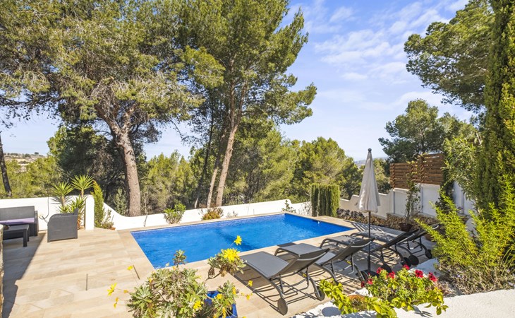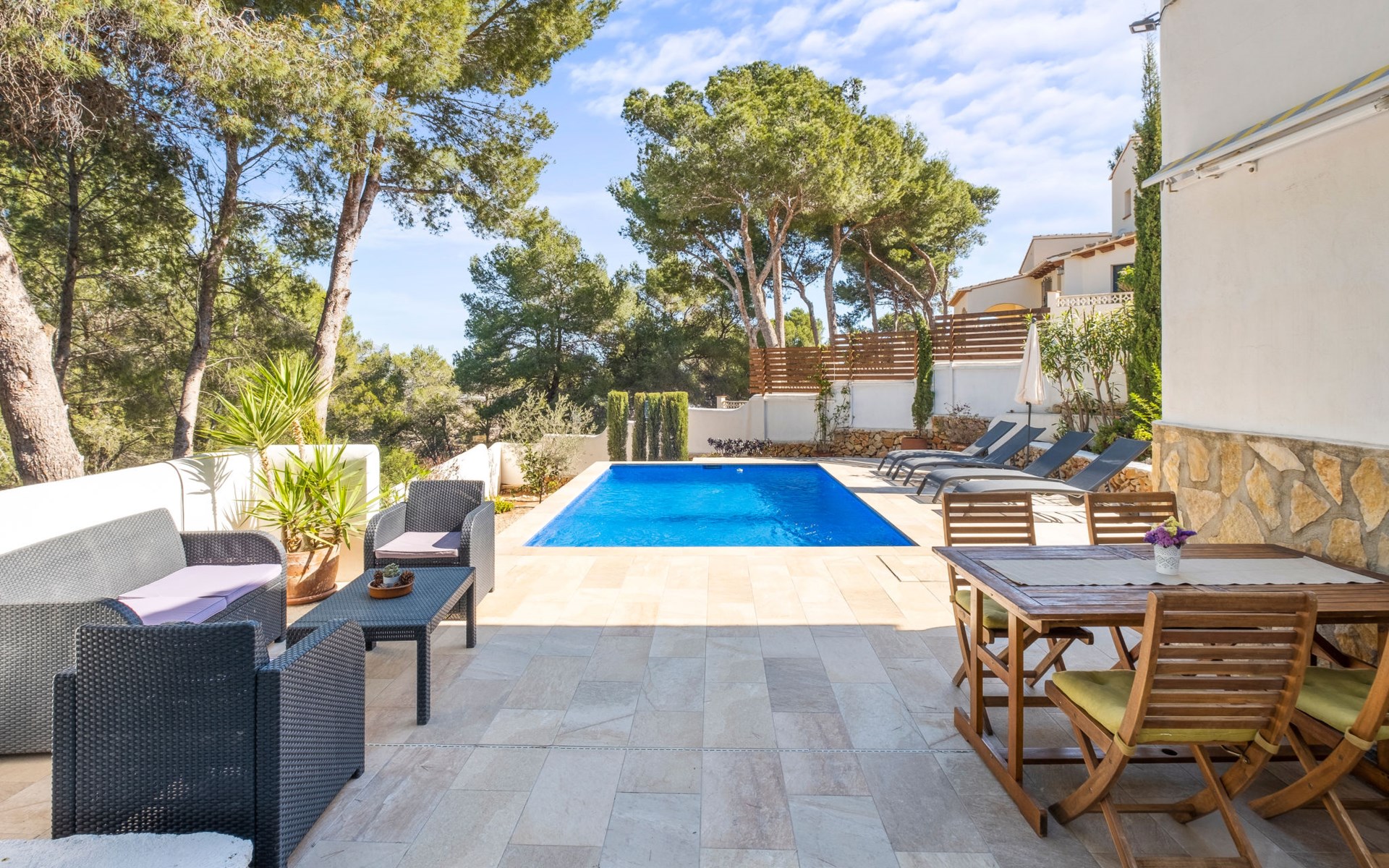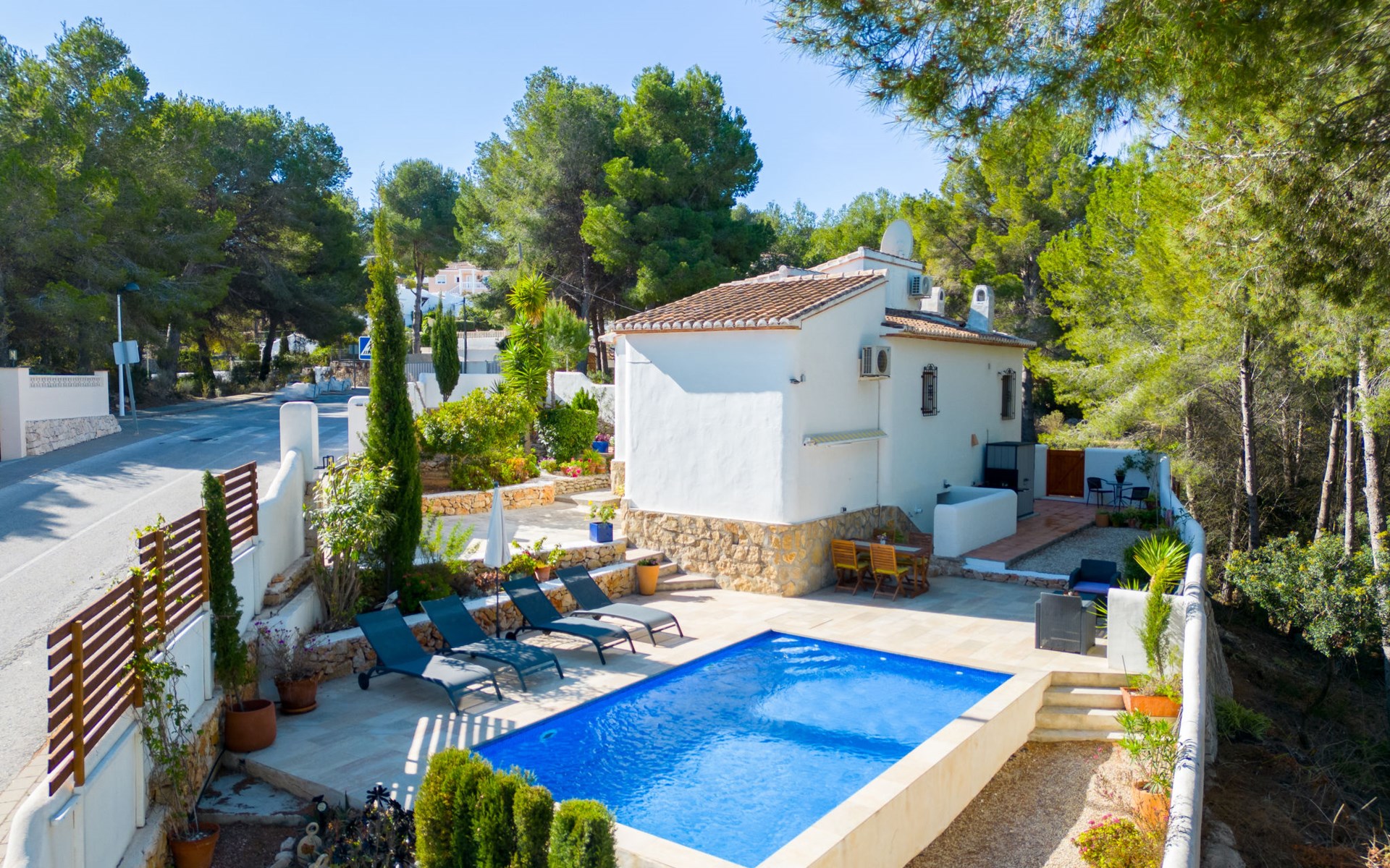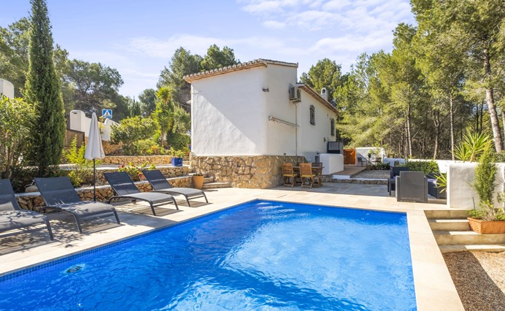 Benimeit: Mooi, gezellig huis "El Rinconcito", gerenoveerd. 4 km van het centrum van Moraira, geïsoleerde, rustige, verhoogde ligging in een woonwijk, 4 km van zee, 4 km van het strand. Voor alleengebruik: terrein 600 m2 (omheind), mooie, verzorgde tuin, openluchtzwembad hoekig (6 x 3 m, 120 - 150 cm diepte, seizoensgebonden beschikbaarheid: 01.Jan. - 31.Dec.) met trap. WC bij het zwembad. In het huis: wasmachine. Parkeerplaats op het terrein. Supermarkt 2.5 km, restaurant 2.5 km, bar 2.5 km, bushalte 4 km, zandstrand "Playa L'Ampolla" 4 km. Golfterrein (19 holes) 4 km. Attracties in de buurt: El Castillo de Guadalest 60 km, Aqualandia 45 km, Las Fuentes d'Algar 42 km, Altea 33 km, Valencia 120 km, Alicante 80 km. Auto noodzakelijk. De eigenaar accepteert geen jeugdgroepen.