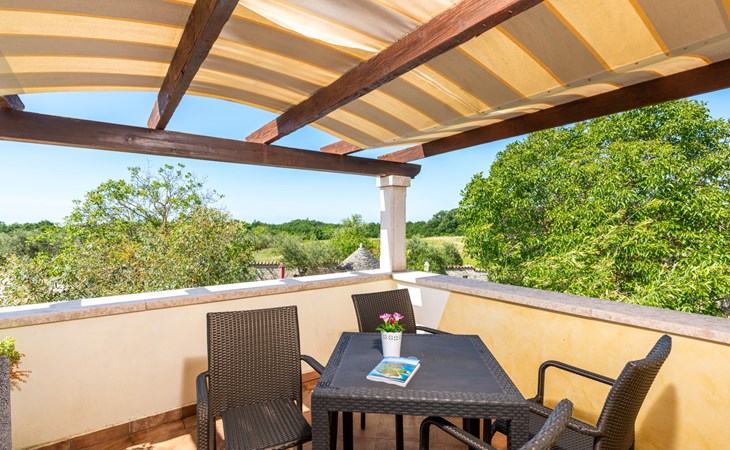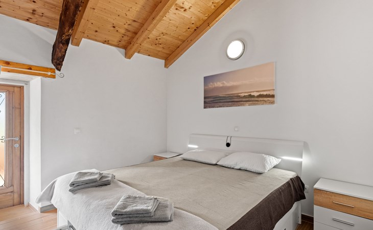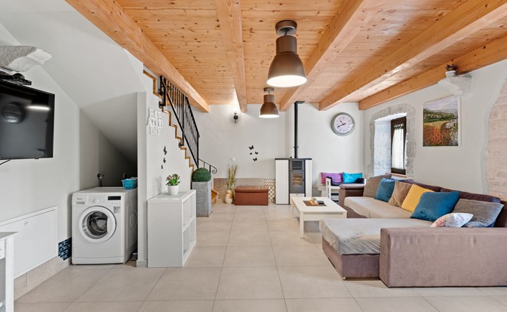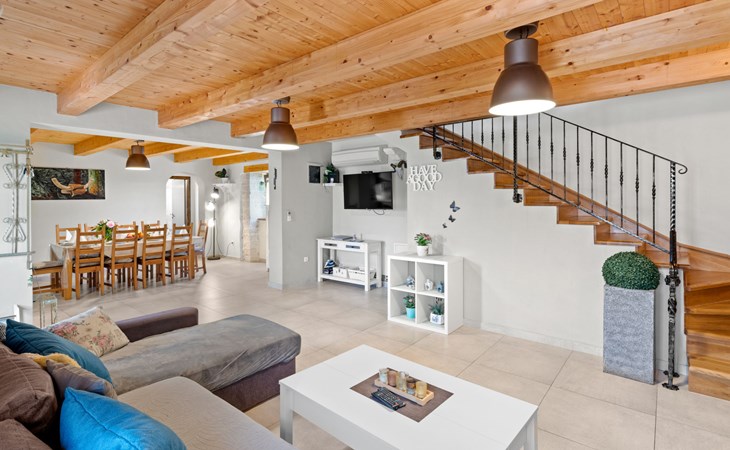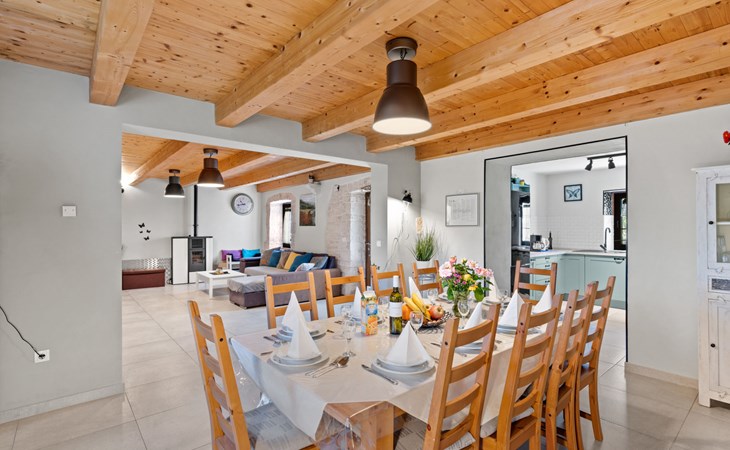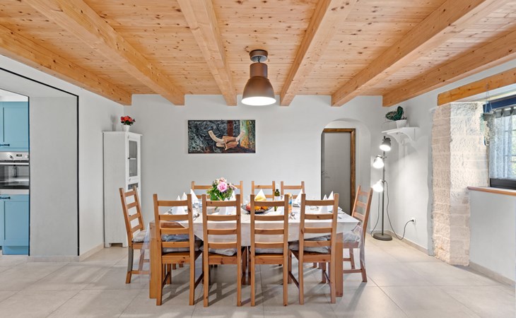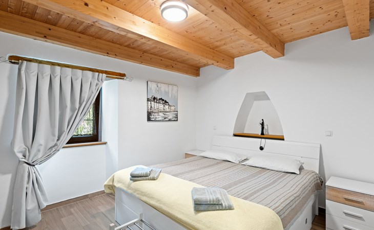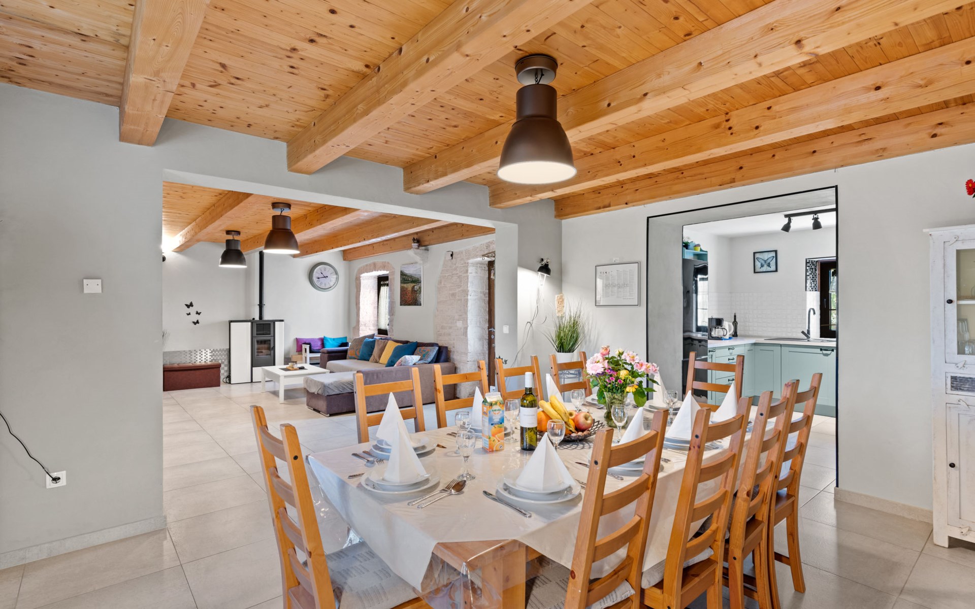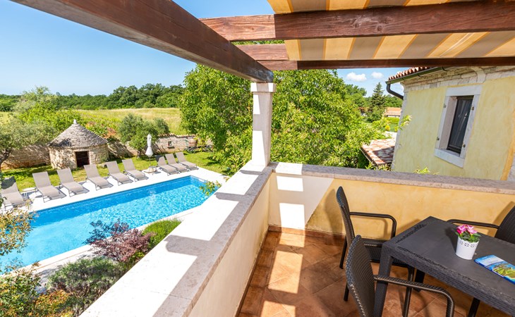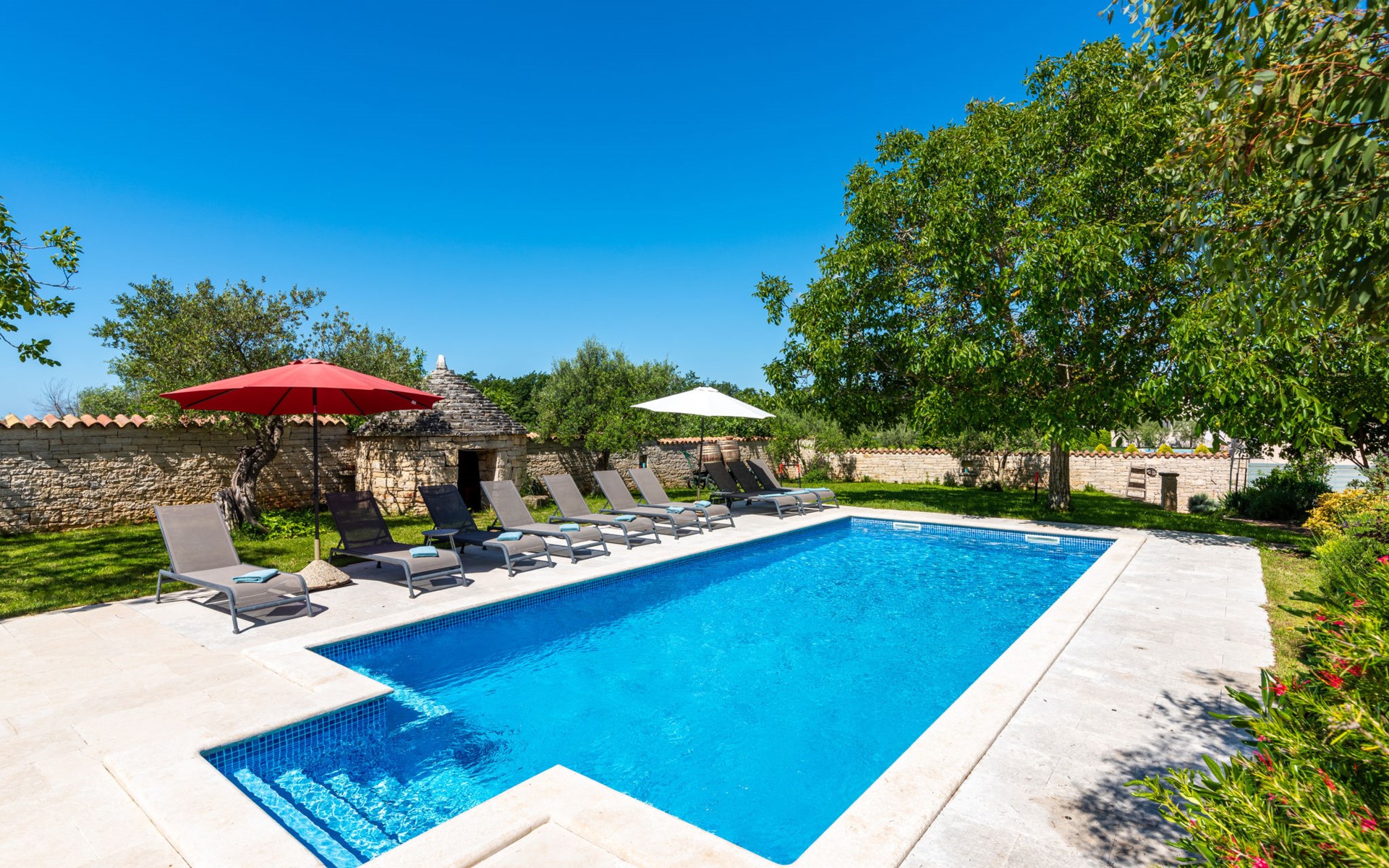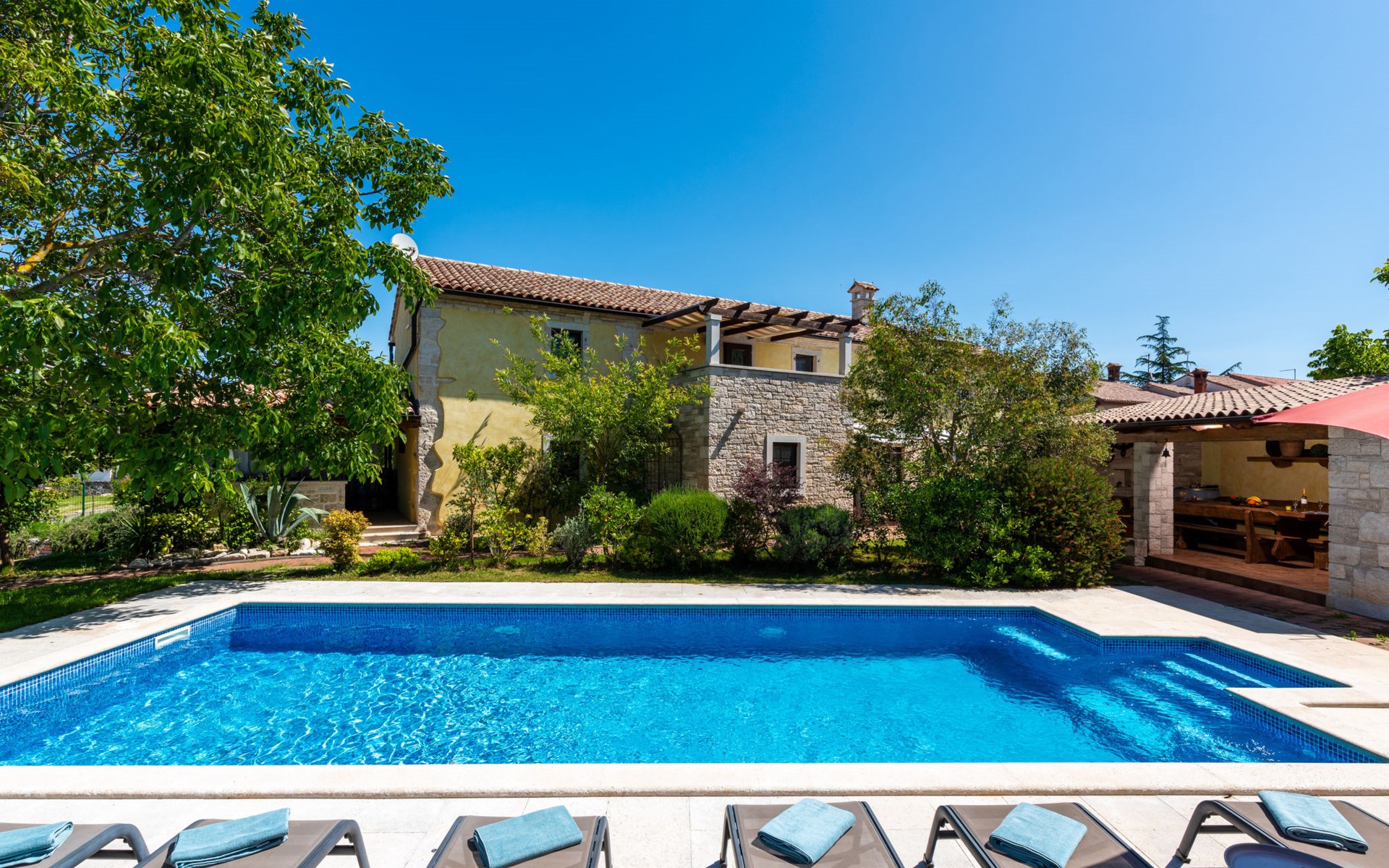 Orbanići 7 km van Vodnjan: Groot, rustieke huis "Ive", van 2 verdiepingen. 12 km van het centrum van Svetvinčenat, 19 km van het centrum van Pula, 12 km van zee. Voor alleengebruik: terrein 1.000 m2 (omheind), verzorgde tuin, weide, openluchtzwembad hoekig (9 x 4 m, 140 cm diepte, seizoensgebonden beschikbaarheid: 01.Mei. - 01.Nov.) met trap. Buitendouche, terras (20 m2), tuinmeubelen, grill (schommel). In het huis: internetaansluiting, biljart, wasmachine. Parkeerplaats (voor 3 auto's) bij het huis op het terrein. Winkel 2 km, restaurant 2 km, bushalte 3.5 km, kiezelstrand 12 km. Groepen jongeren uitsluitend op aanvraag.