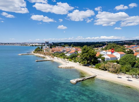 Eengezinswoning "Villa Crispo", van 2 verdiepingen. In de wijk Burle, 1 km van het centrum van Medulin, 12 km van het centrum van Pula, in een woonwijk, 50 m van zee, 1 km van het strand. Voor alleengebruik: terrein 1.292 m2 (omheind), planten en bomen, openluchtzwembad (7 x 4 m, 28 m2, 140 cm diepte, seizoensgebonden beschikbaarheid: 15.Mei. - 13.Okt.) met trap. Buitendouche, terras (100 m2), tuinmeubelen, barbecue. In het huis: internetaansluiting, wasmachine. Parkeerplaats (voor 2 auto's) op het terrein. Winkel 150 m, bushalte 200 m, zandstrand 1 km. Jachthaven 1.5 km. Vliegveld 14 km van het huis. Ter beschikking: taverne met zomerkeuken (2 kookplaten, koelkast).