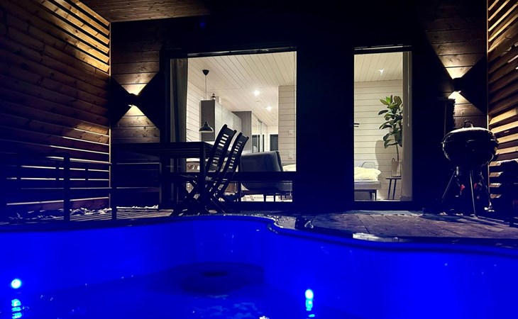 The front and back terraces is partly covered with outdoor furniture, and the back terrace has a barbecue and dining area. For a separate fee of €110 per booking, it is possible to use and enjoy the warmth and relaxation of the outdoor hot tub in the back yard.