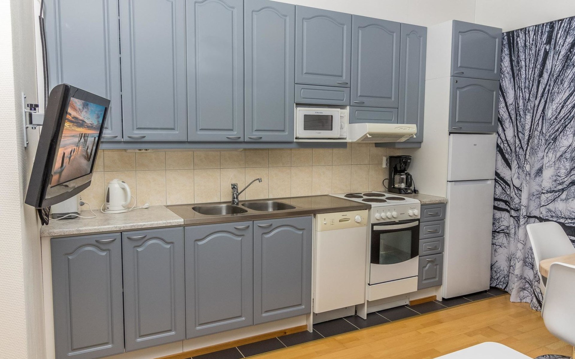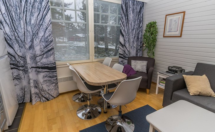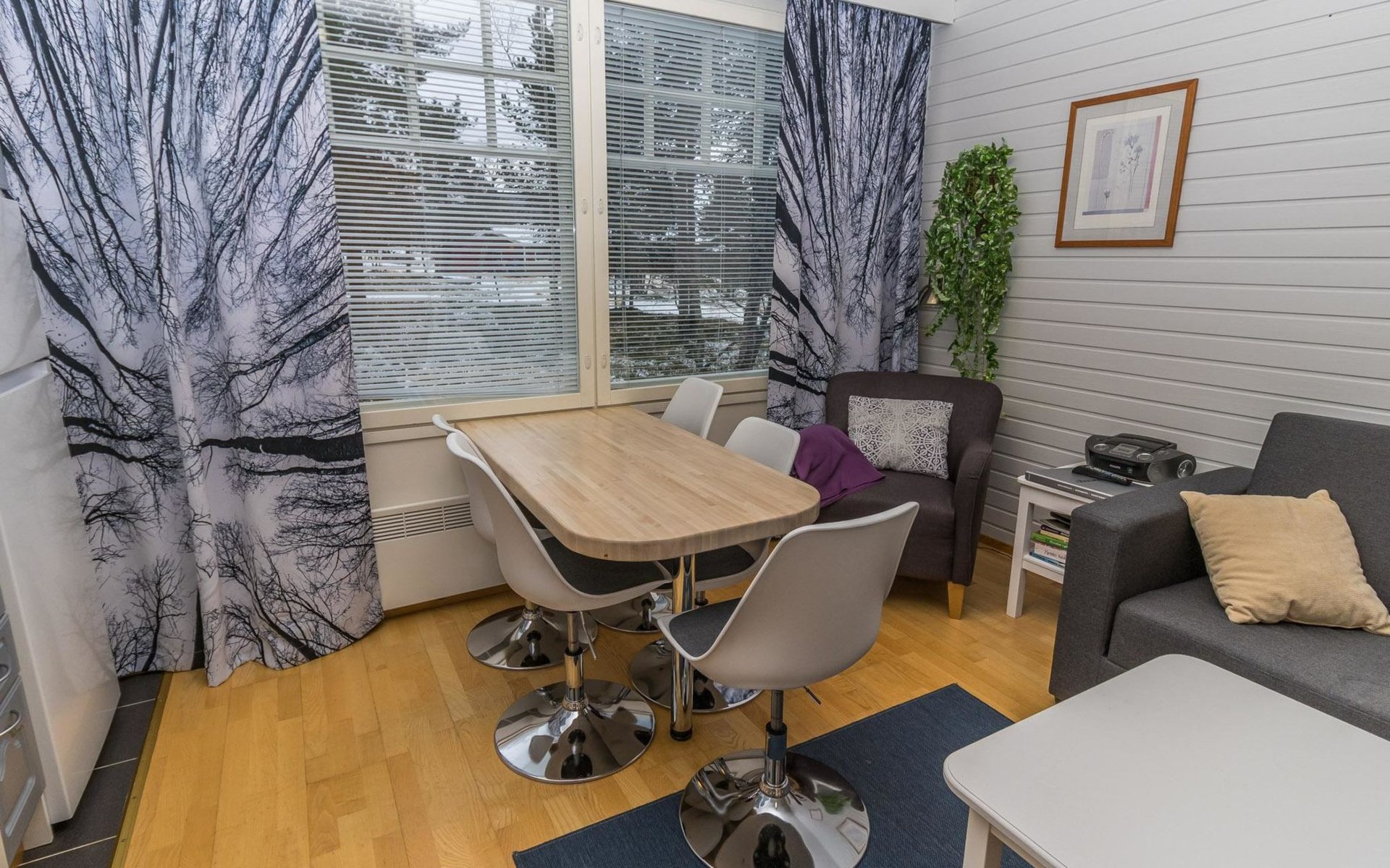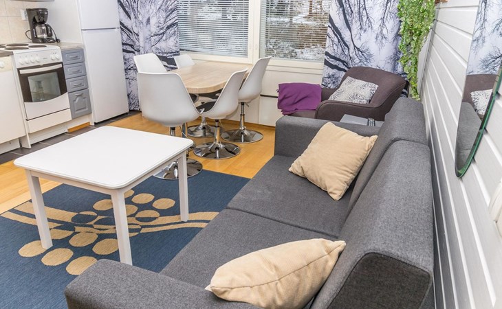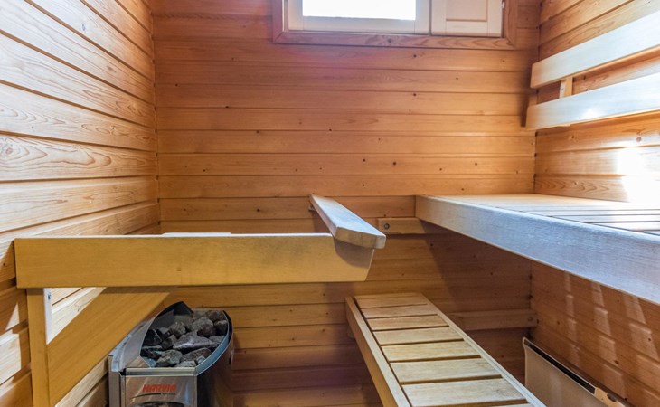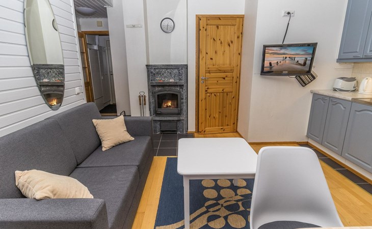 The kitchenette has everything you need for cooking and socialising. You can enjoy the warmth of a fireplace while dining, and the apartment's own sauna provides extra warmth after a day's excursions.