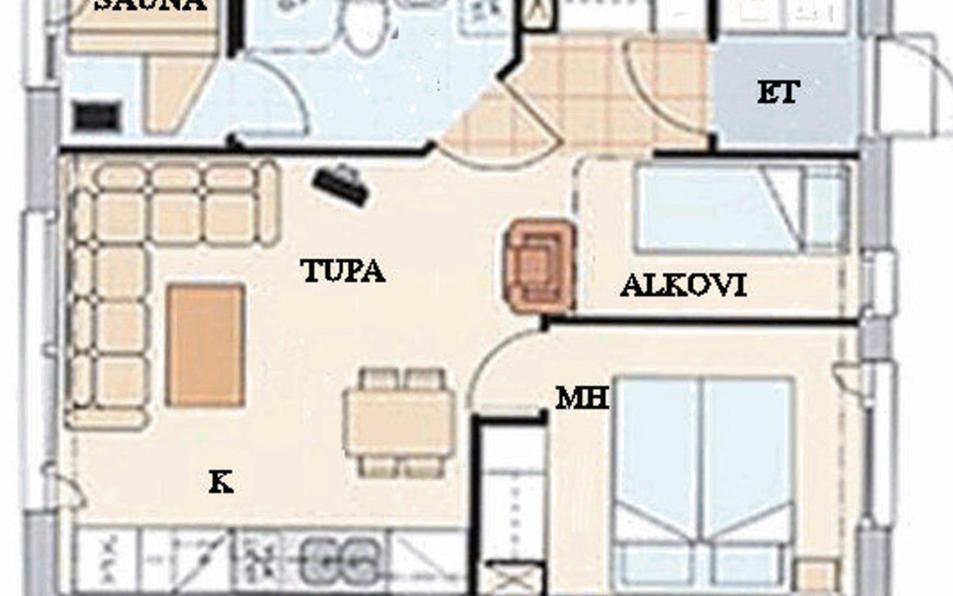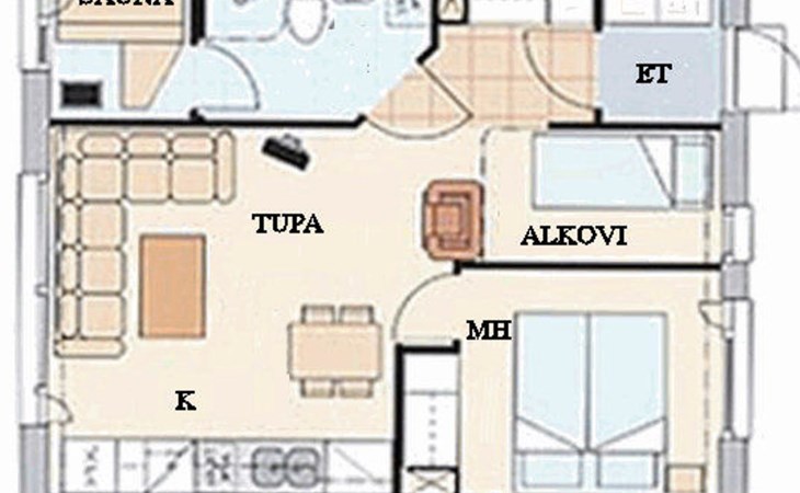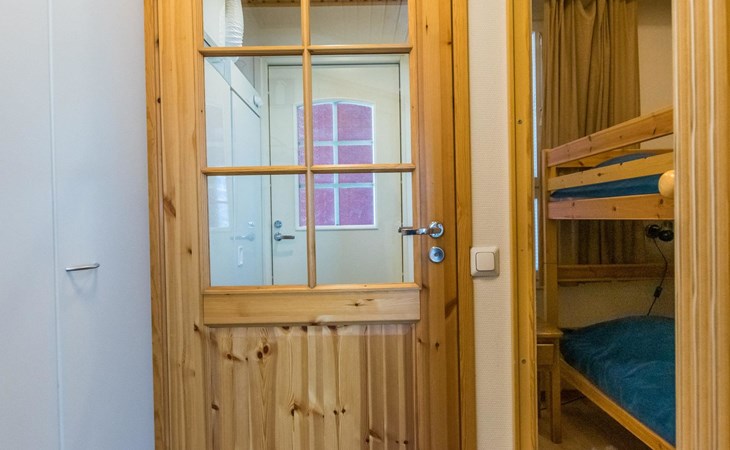 Restful sleep comes in the apartment's bedroom, which has two beds. A bunk bed in the alcove, which closes with a folding door. A sofa bed in the living room provides additional space for two.
