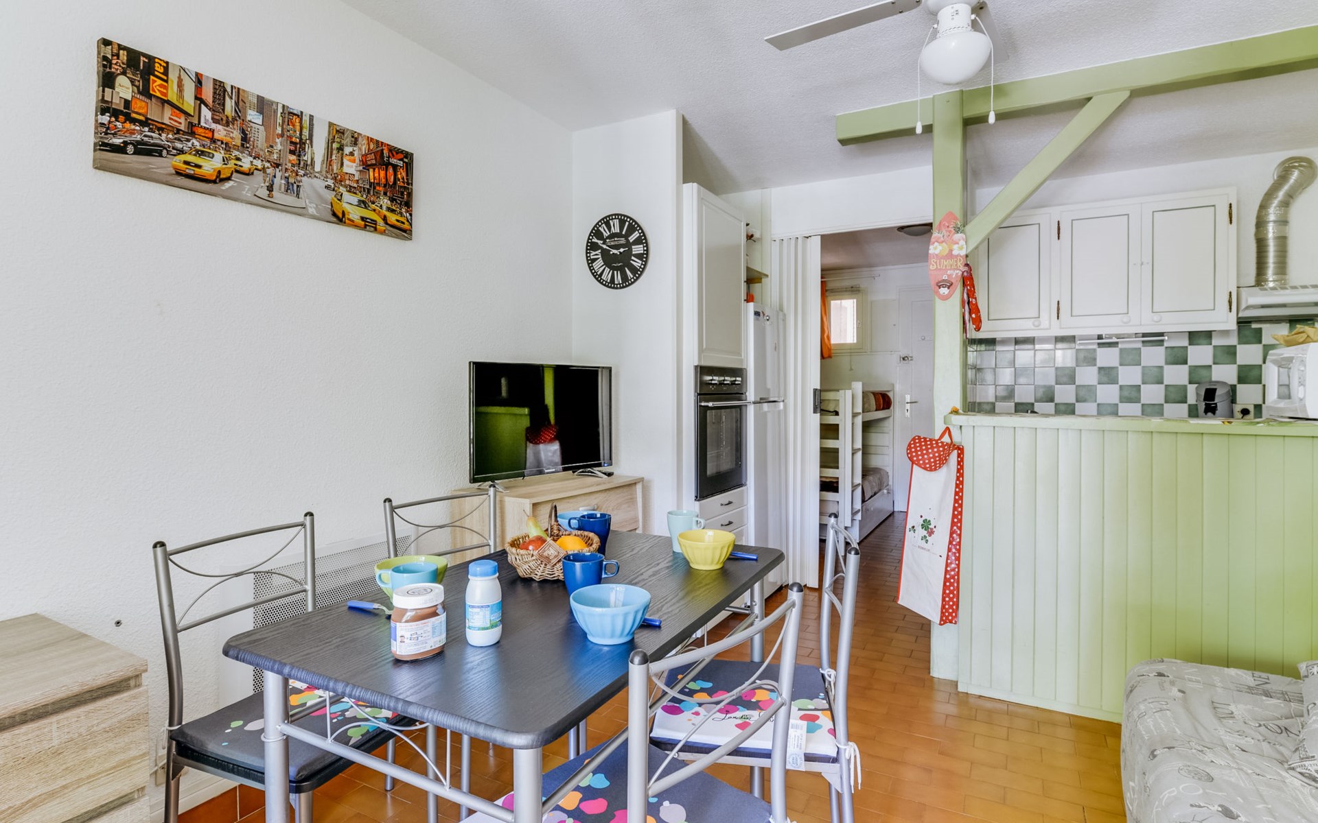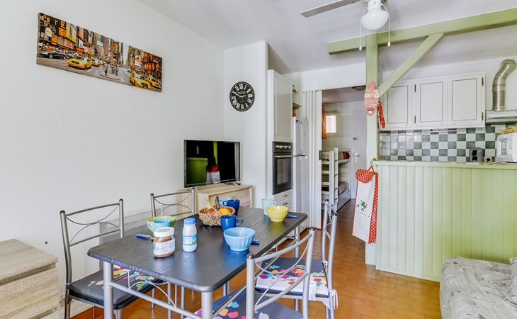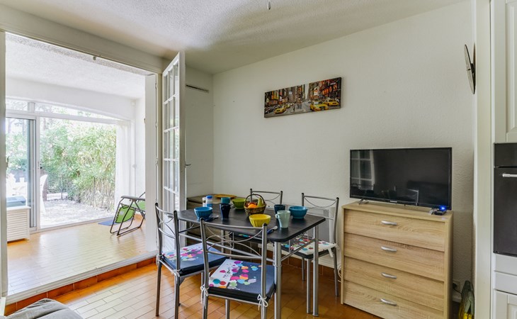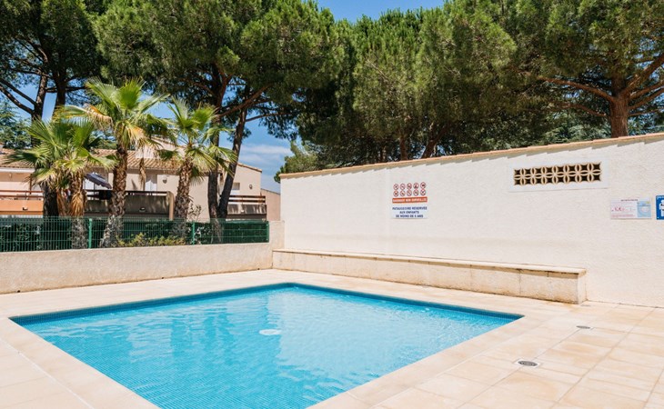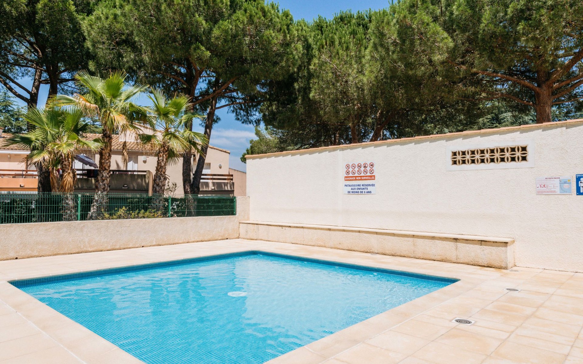 Mooi residentie "Résidence Green Village 2". In de wijk Tennis/Pinède, rustige ligging, 1 km van zee, 1 km van het strand. Voor medegebruik: openluchtzwembad hoekig omheind (15 x 6 m, 150 - 150 cm diepte, seizoensgebonden beschikbaarheid: 25.Mei. - 29.Sep. openingstijden zwembad: 08:30-20:30). Levensmiddelenwinkel 200 m, restaurant 1 km, bar 1 km, bakkerij 1 km, centrum te voet bereikbaar in 12 minuten, bushalte "Maraval" 350 m, zandstrand "La roquille". Jachthaven 1.6 km, golfterrein (27 holes) 6 km, tennis 700 m, manege 1.1 km. Attracties in de buurt: Casino 850 m, Musée de l'Ephèbe 1 km, Grande Roue 1.5 km, Aqualand 2.2 km, Ile des Loisirs 2.6 km.