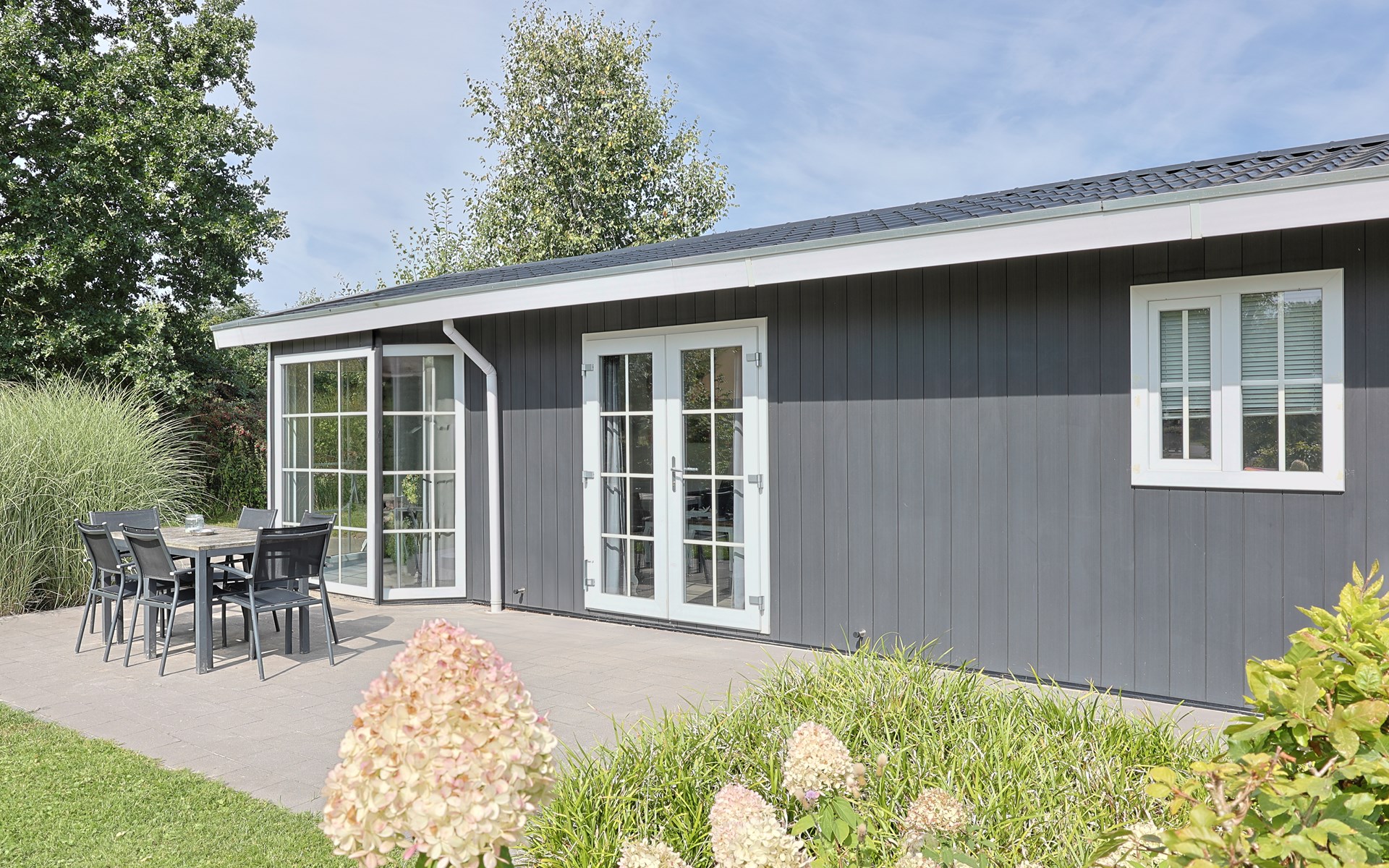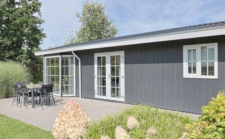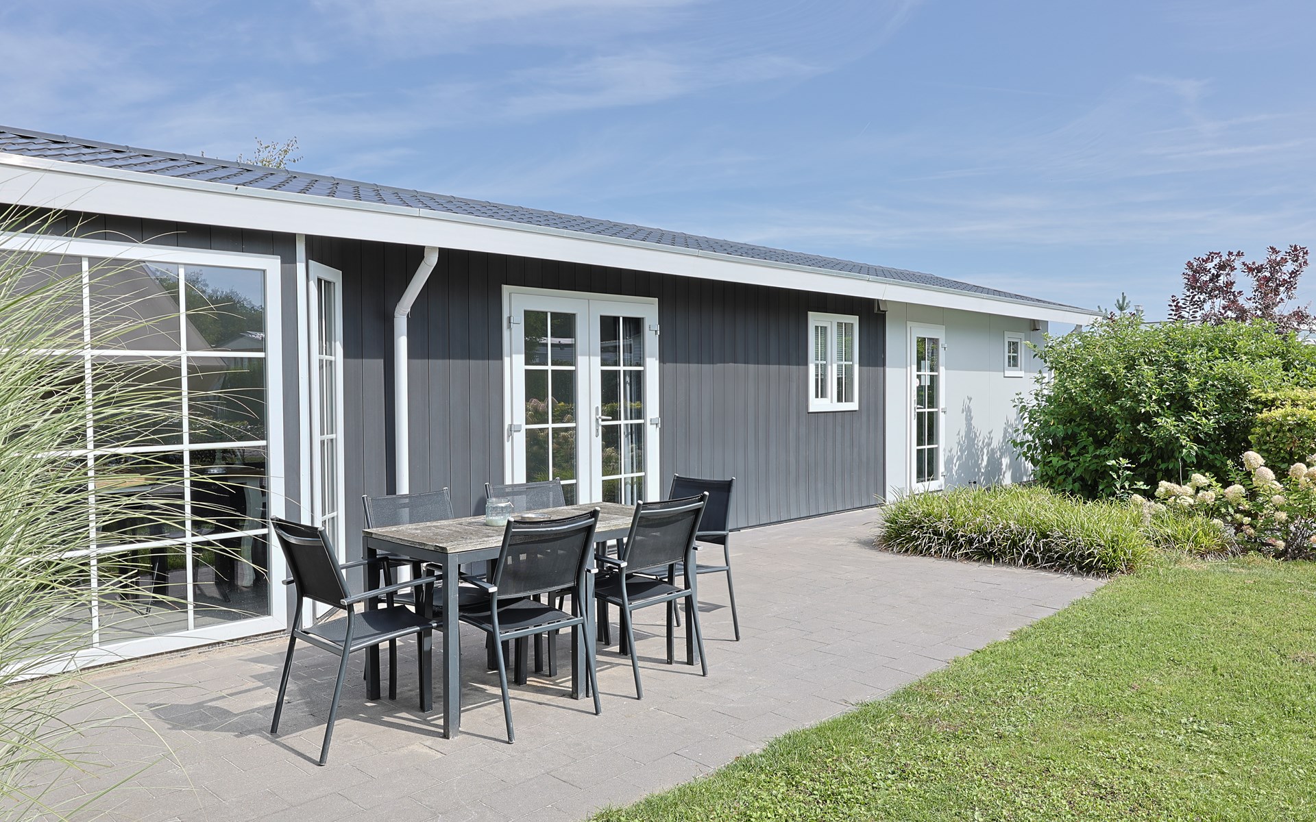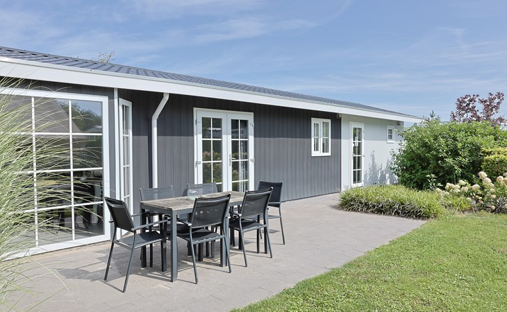 Deze stijlvolle recreatiewoning is geschikt voor 6 personen. Dankzij de hoge ramen is de woonkamer van de Pavilion 6 licht en ruim. Hier vind je een mooie zithoek met televisie en een lange eettafel. De open keuken is onder andere uitgerust met een vaatwasser, magnetron, waterkoker en een koffiezetapparaat. Daarnaast is er een badkamer met douchecabine en toilet. In totaal zijn er 3 slaapkamers, elk met 2 eenpersoonsbedden of een stapelbed. Buiten is een terras met tuinmeubilair. Bij je vakantiewoning kun je 1 auto parkeren en er is gratis wifi beschikbaar.