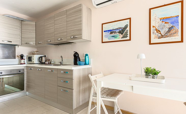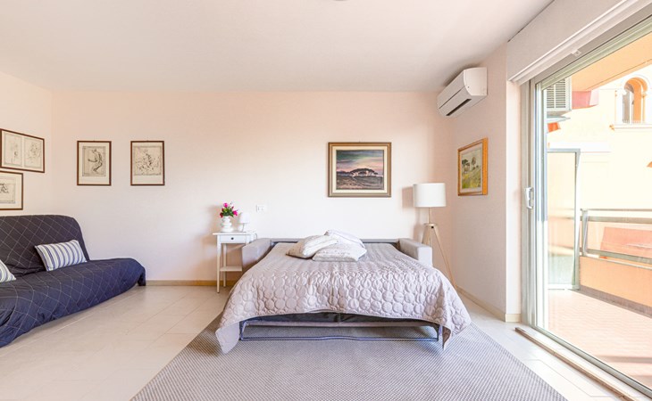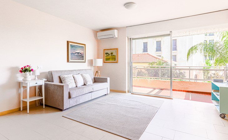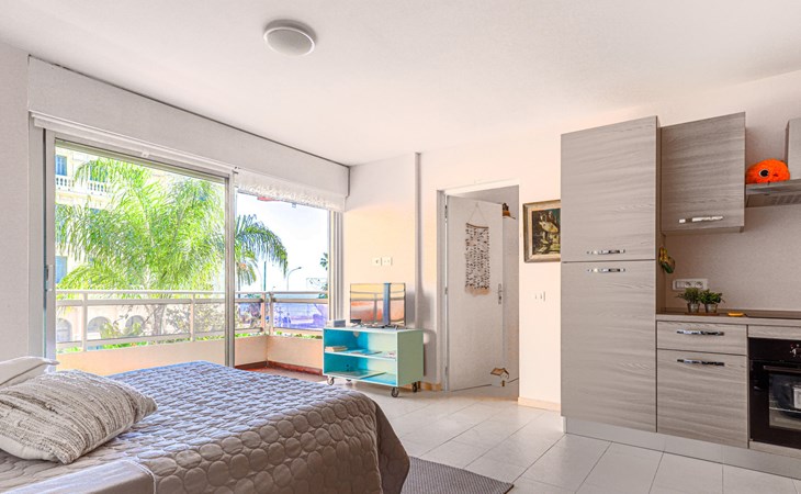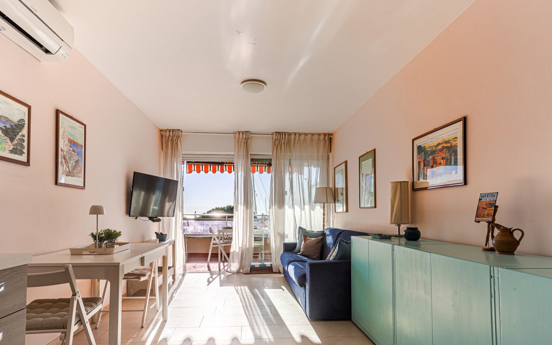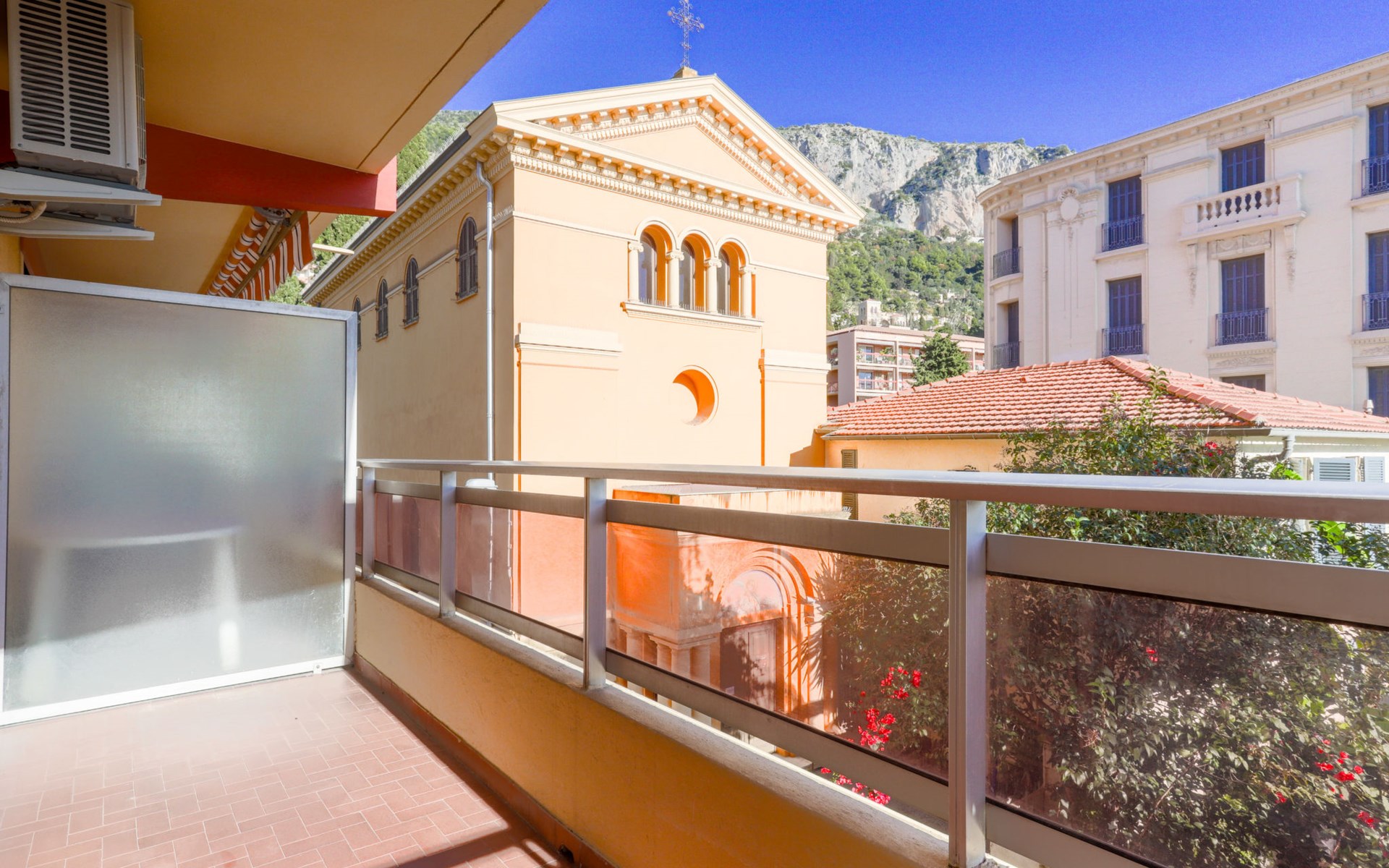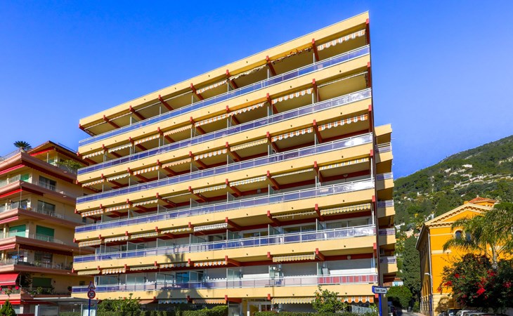 Residentie "Le Diplomate", van 6 verdiepingen. In de wijk Garavan, centrale, zonnige ligging in een woonwijk, 50 m van zee, 600 m van het strand, op het zuiden. In het huis: lift, centrale verwarming. Eigen garage. Winkel 1 km, levensmiddelenwinkel, supermarkt 800 m, restaurant 100 m, bakkerij 500 m, café 800 m, centrum te voet bereikbaar in 20 minuten, bushalte "Garavan 1 8 18" 100 m, treinstation "Menton Garavan" 300 m, stenenstrand "Hawai" 350 m. Jachthaven 50 m, golfterrein (18 holes) 23 km, tennis 3 km. Attracties in de buurt: Jardin botanique exotique du Val Rahmeh 800 m, Musée Jean Cocteau 2 km, Monaco 14 km, St Agnès 14 km, Ventimiglia (Italie) 10 km, Nice 32 km. Wandelgebied Parc National du Mercantour 30 km. Auto noodzakelijk.