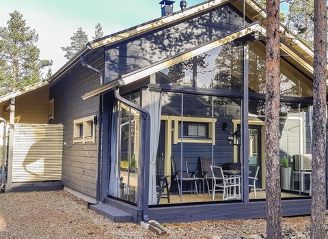 Located in the Levi tourist center in Tieva district. Living room/kitchen, two beds in the bedroom (width 90 cm), beds can be joined or separated, in the another bedroom double bed (width 140 cm), sliding doors in both bedrooms, the smaller room has no window, sauna, washroom/WC, also separate WC and balcony.