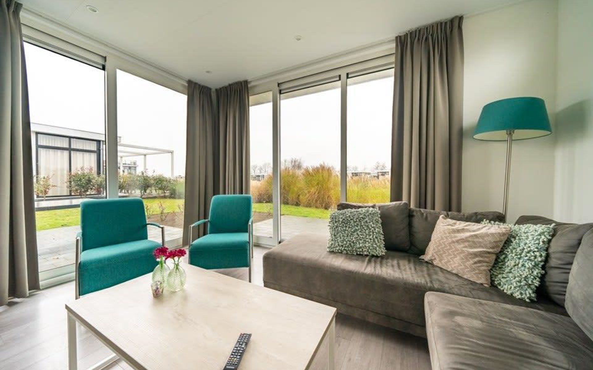 Deze vakantiewoning is perfect voor een gezin met kinderen en direct aan het water gelegen. In de Waterfront Pavilion 4+2 is namelijk plaats voor 6 personen in totaal. In het woongedeelte vind je een zithoek met televisie en een eethoek. De open keuken is onder andere uitgerust met een vaatwasser, waterkoker en een koffiezetapparaat. In totaal zijn er 2 slaapkamers, 1 slaapkamer met een tweepersoonsbed en 1 slaapkamer met 4 slaapplaatsen, waaronder een hoogslaper. Er is een aparte badkamer met douche en toilet. Buiten is er een terras met tuinmeubilair. Je kunt 1 auto bij de woning parkeren en er is gratis wifi.