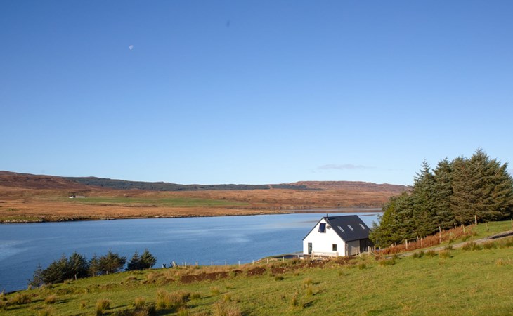 Zeer moderne, mooi cottage "Daisy Cottage", vrijstaand. In het district Edinbane, geïsoleerde, rustige ligging, 100 m van het meer. Voor alleengebruik: tuin (omheind). In het huis: Internet (WiFi), centrale verwarming, wasserette, wasmachine, droger. Parkeerplaats (voor 3 auto's). Supermarkt 13 km, restaurant 1 km, bar 23 km, bushalte "Upper Edinbane Road end" 2 km, treinstation "Kyle of Lochalsh" 76 km. Attracties in de buurt: Dunvegan Castle and Garden 16 km, Edinbane Lodge 2 km, Neist Point 29 km, Loch Greshornish 1 km. Auto noodzakelijk.