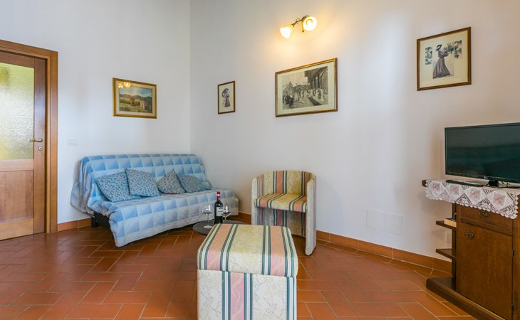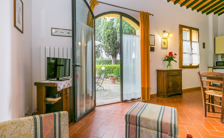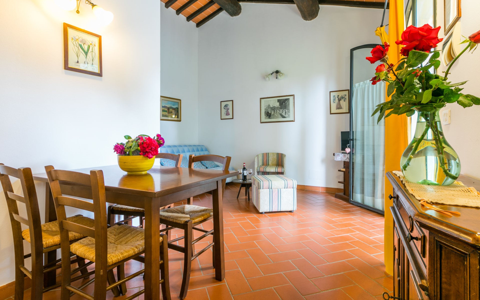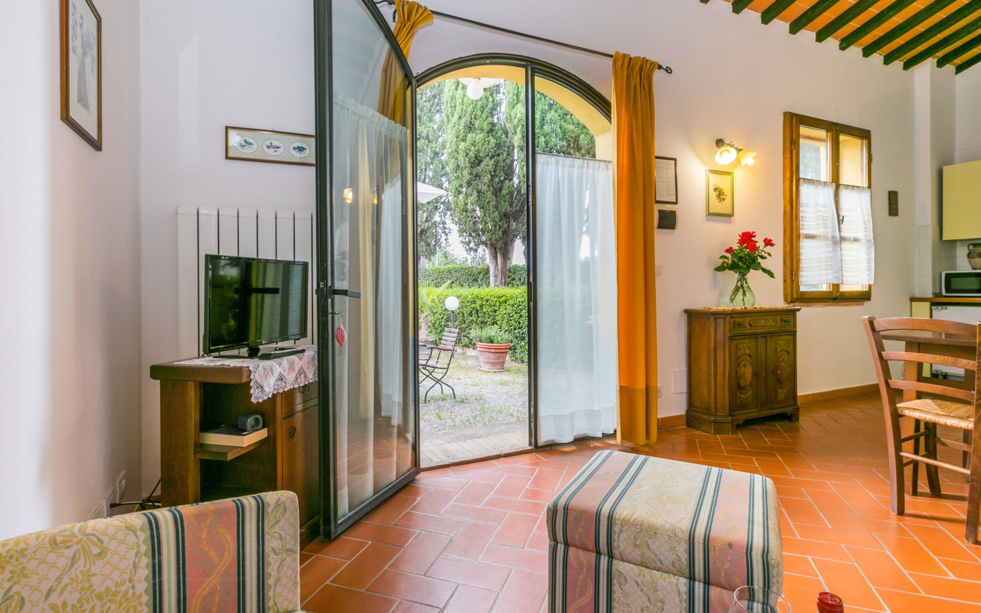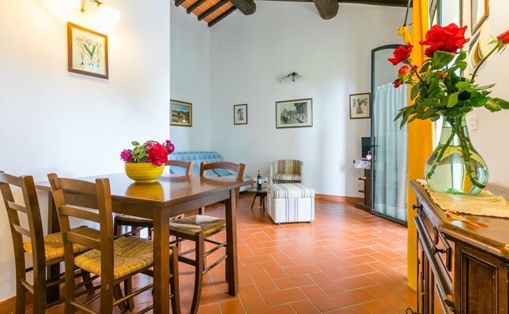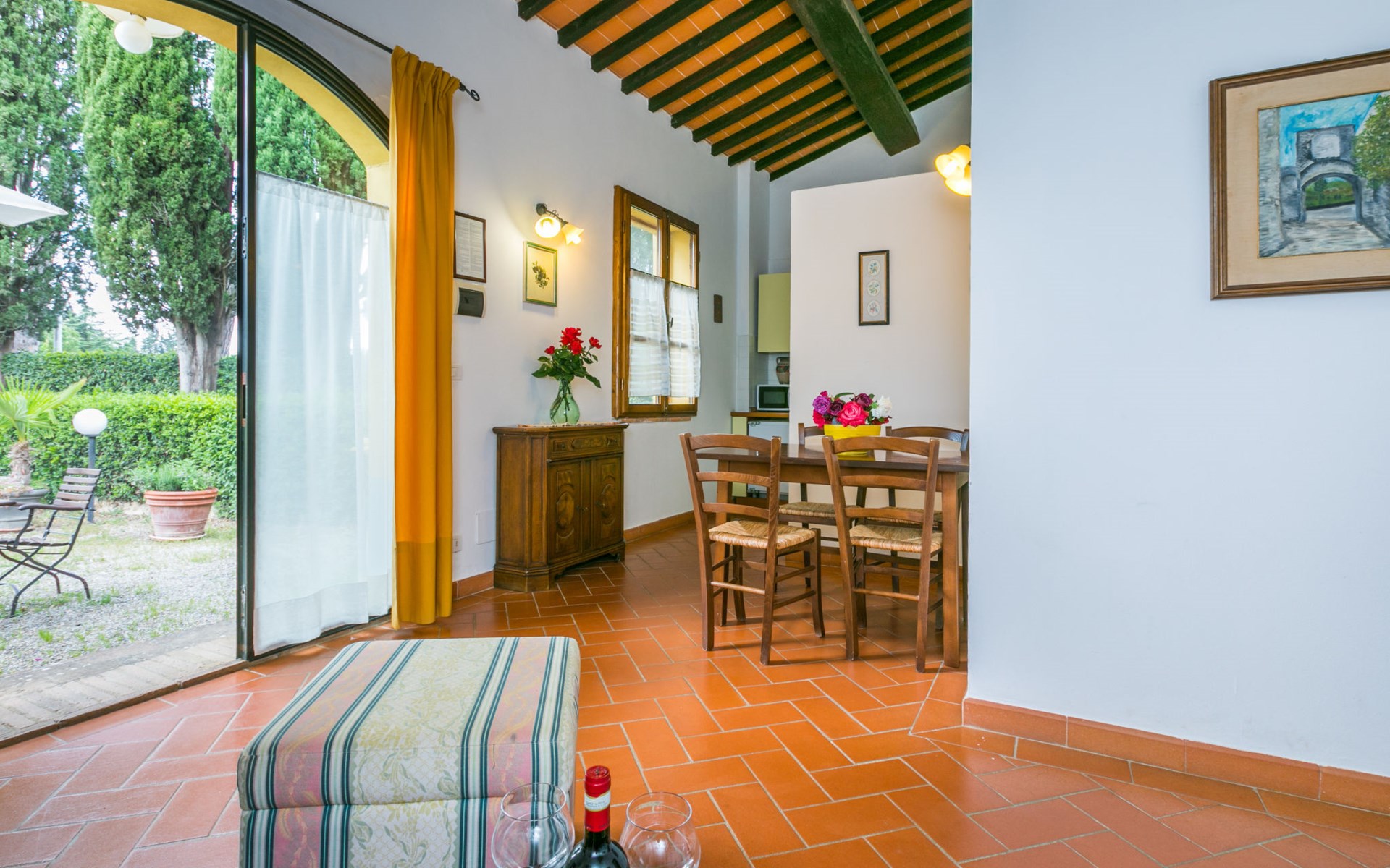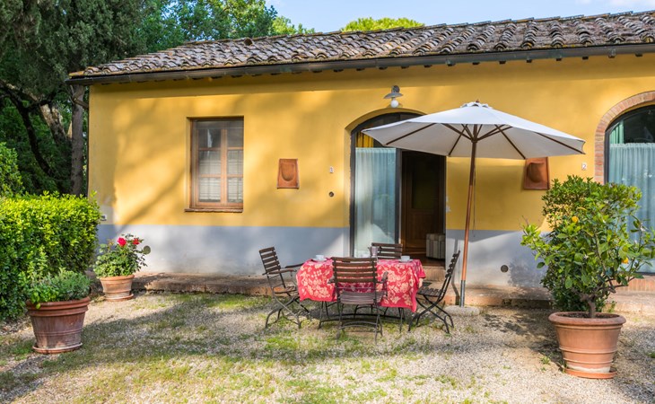 Gezellig landhuis "Giuggiolo", omgeven door bomen en wijngaarden. 3 huizen in de woning. 4 appartementen in de woning. In het gehucht Casaglia, 4 km van het centrum van Poggibonsi, 11 km van het centrum van San Gimignano, 30 km van het centrum van Siena, zonnige ligging, te midden van groen. Voor medegebruik: groot, mooie tuin 5.000 m2 (omheind) met planten en bomen, weide, openluchtzwembad (14 x 7 m, 120 - 160 cm diepte, seizoensgebonden beschikbaarheid: 02.Mei. - 03.Okt.). Terras, onderhoud zwembad door de eigenaar/tuinman. Verwarming ter plaatse te betalen (01.Nov. - 31.Mrt.). 800 m lange toegangsweg tot het terrein (onverharde weg). Parkeerplaats op het terrein. Supermarkt 2 km, treinstation "Poggibonsi" 4 km. Gesloten residentie met een elektrische deur. De eigenaar woont in hetzelfde huis. Wijnproeverij in een wijnkelder in de buurt van San Gimignano op 17 km afstand 1x per verblijf inbegrepen (op aanvraag).