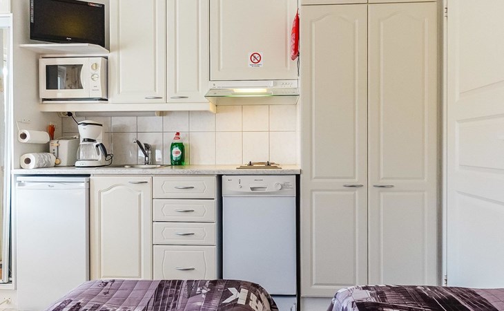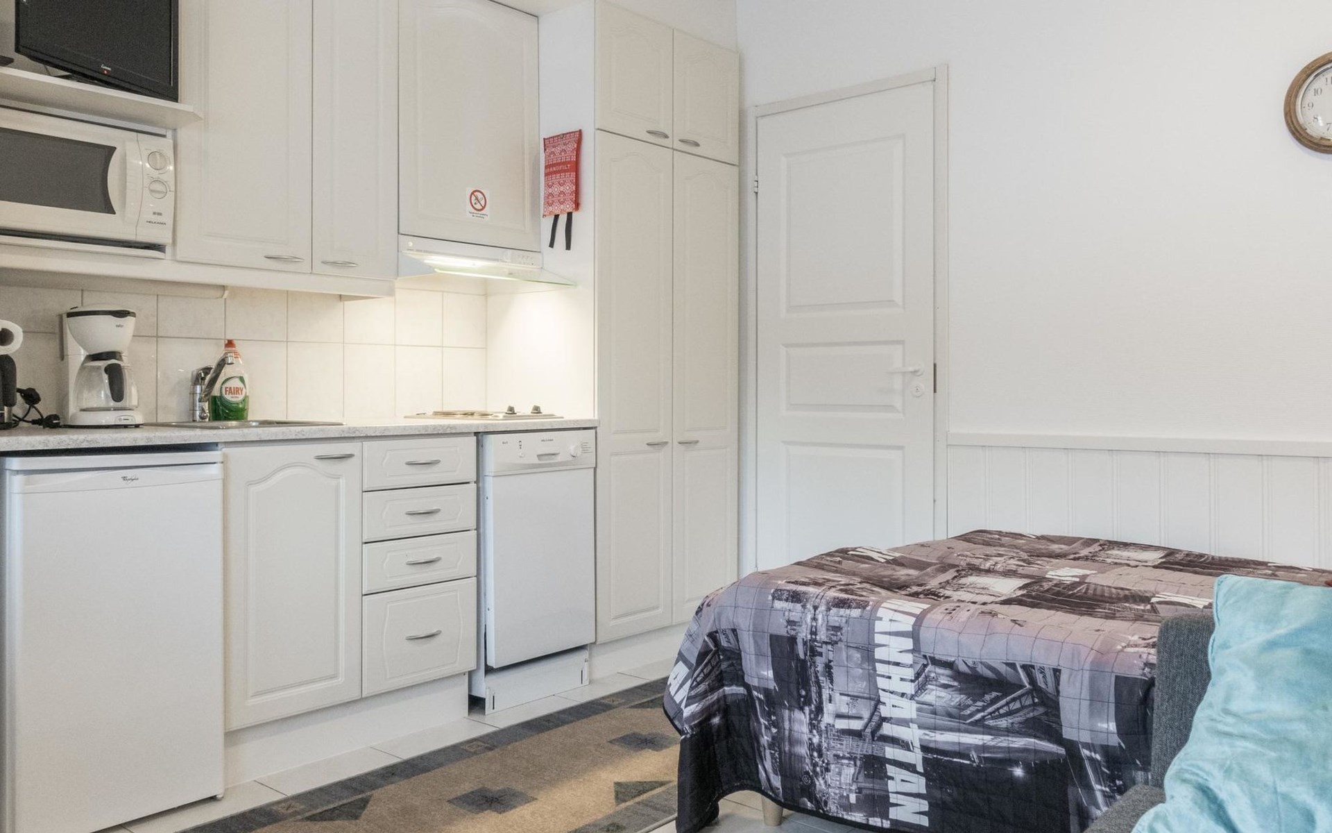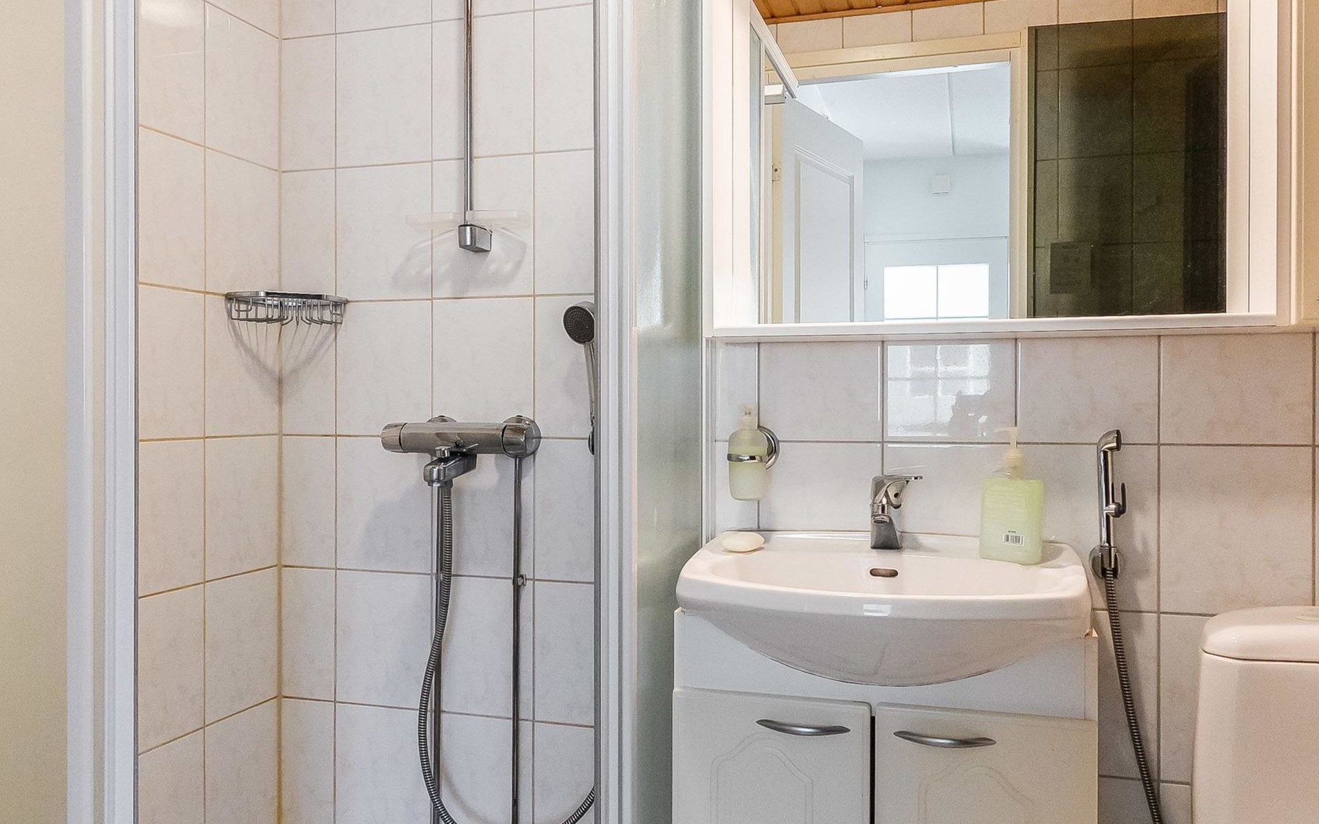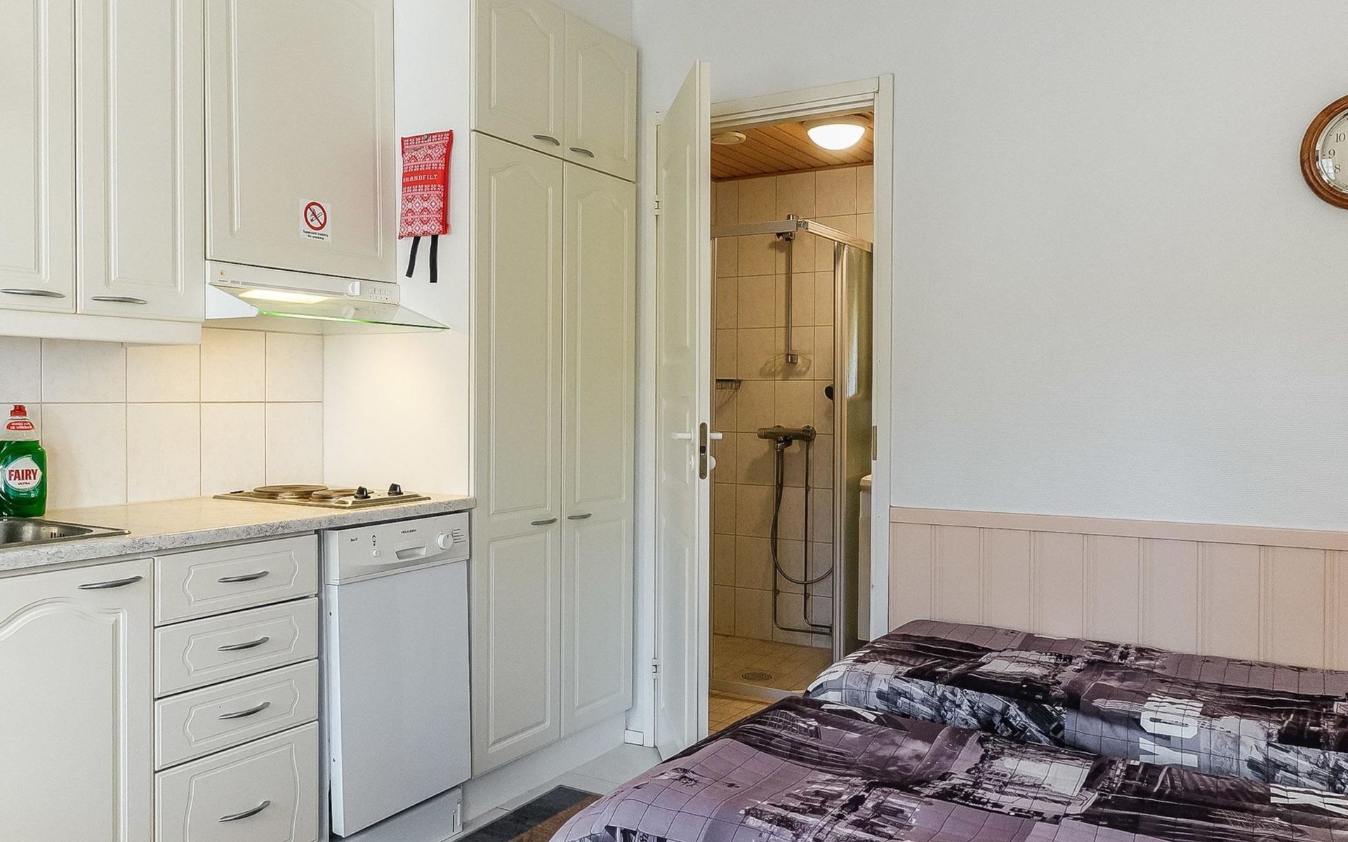 Wood and stone-built holiday apartment, built 2005. Living room/kitchen with two beds and a sofabed. Sauna (electric stove) and bathroom/toilet.