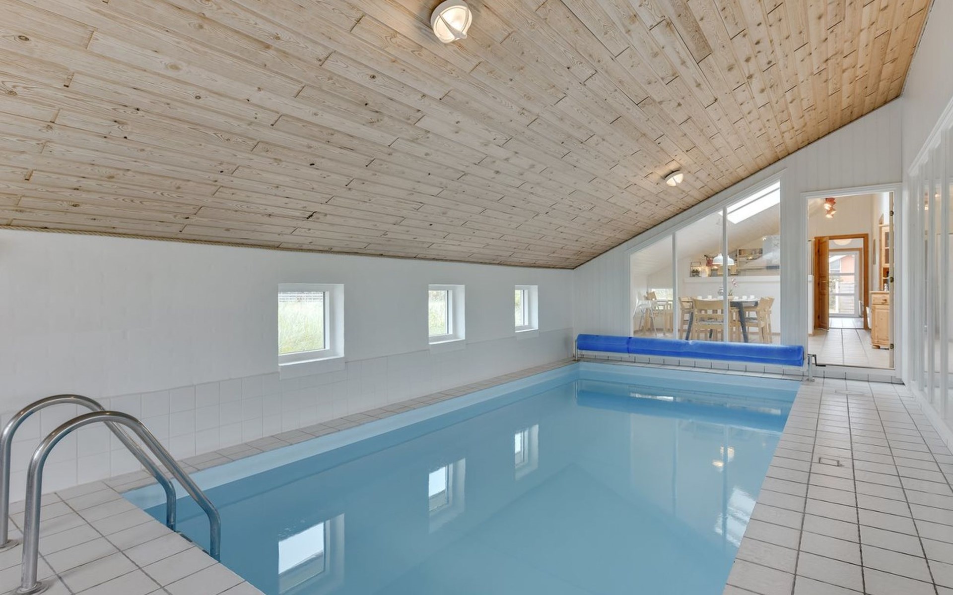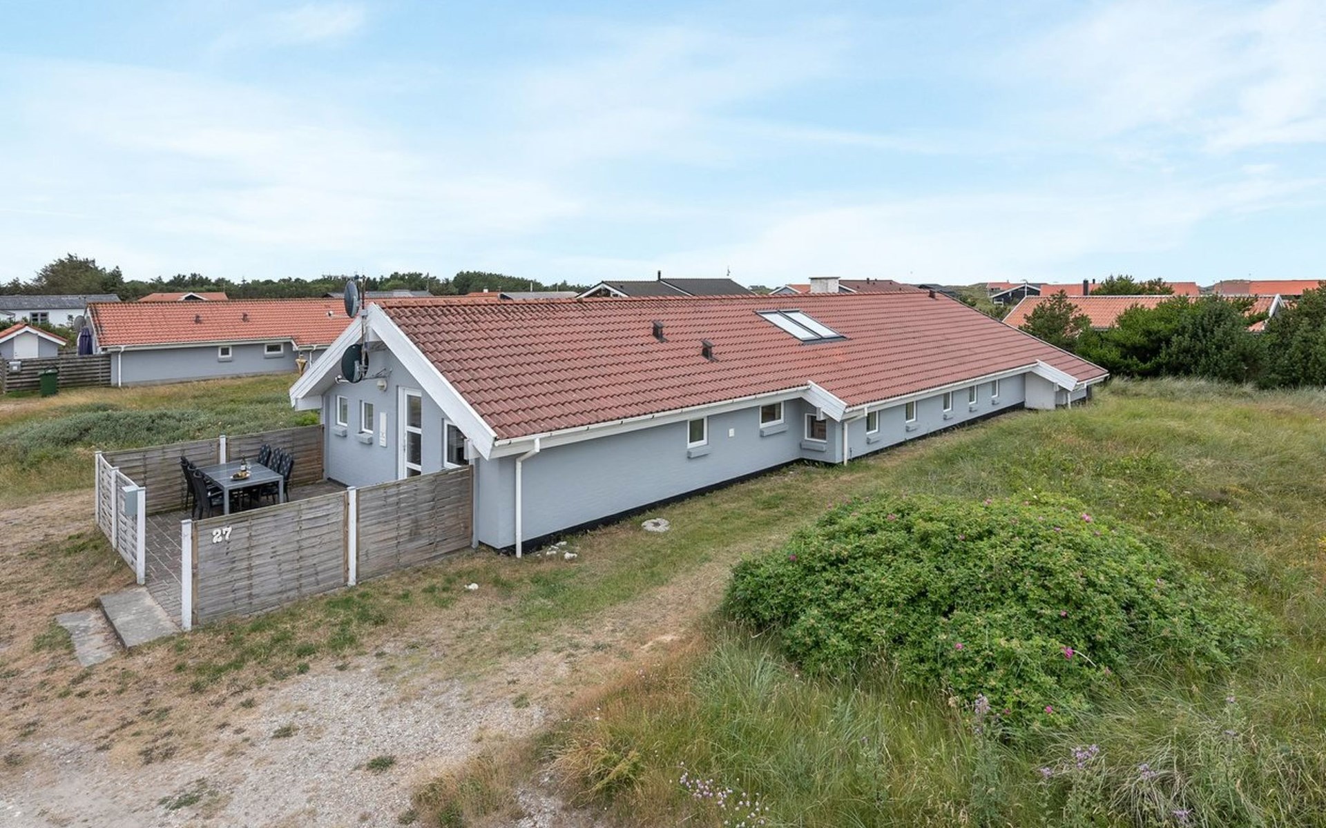 Eengezinswoning, bouwjaar 1991. 600 m van zee. Voor alleengebruik: terrein 1.000 m2, overdekt zwembad (3 x 6 m, 18 m2, 130 - 130 cm diepte). Terras (30 m2), kinderspeelplaats (schommel). In het huis: sauna, wasmachine, droger. Parkeerplaats bij het huis. Levensmiddelenwinkel 500 m. De eigenaar accepteert geen jeugdgroepen.