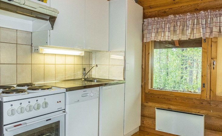 A Cozy cabin in Ylläsjärvi village, Ahvenkangas area(Karpalotie 2). The apartment is located in a quiet cabin area, berry-picking grounds nearby. Pets are allowed for extra price. Final cleaning is included in the price, bed linen can be leased.