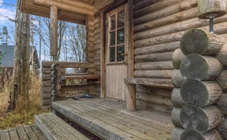 There is direct access from the sauna to the porch for cooling, the porch has a round log-made table group. The cabin does not have sun loungers.