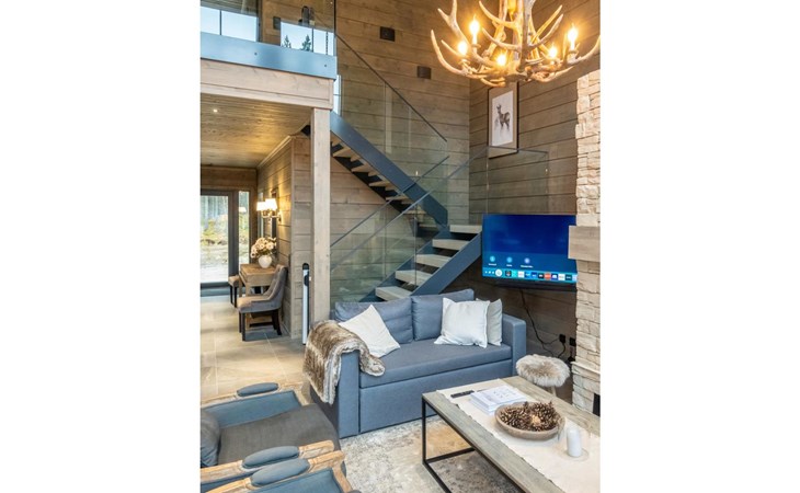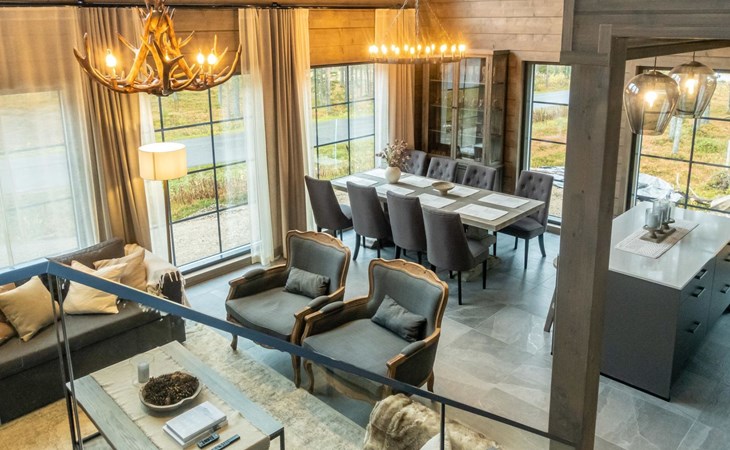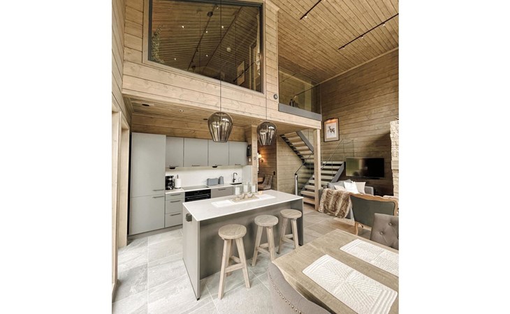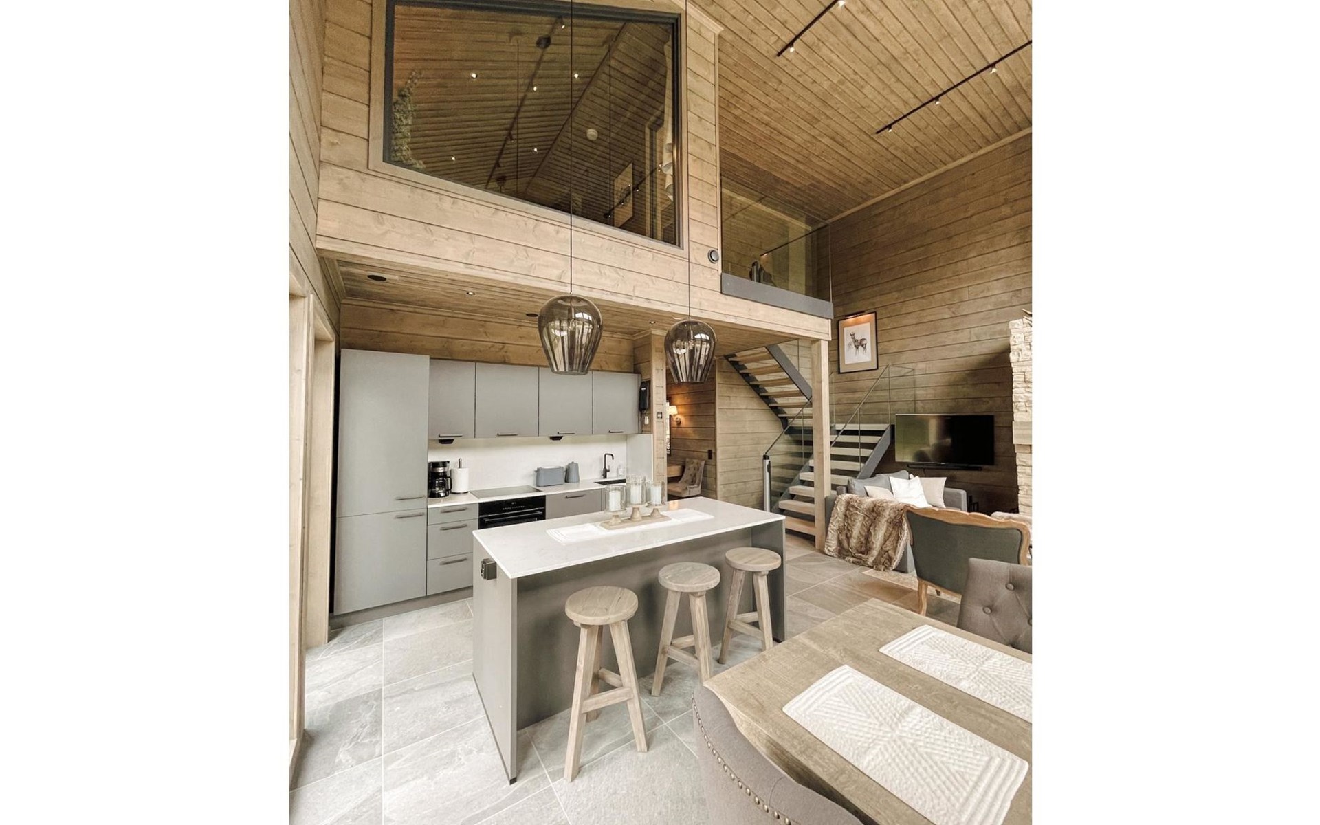 Facilities on two floors. On the first floor, spacious hall with plenty of space for cross-country skiing and downhill skiing equipment. Living room, dining room and kitchen are the heart of this villa. The kitchen is very well equipped, so you can cook and even bake for a larger group.