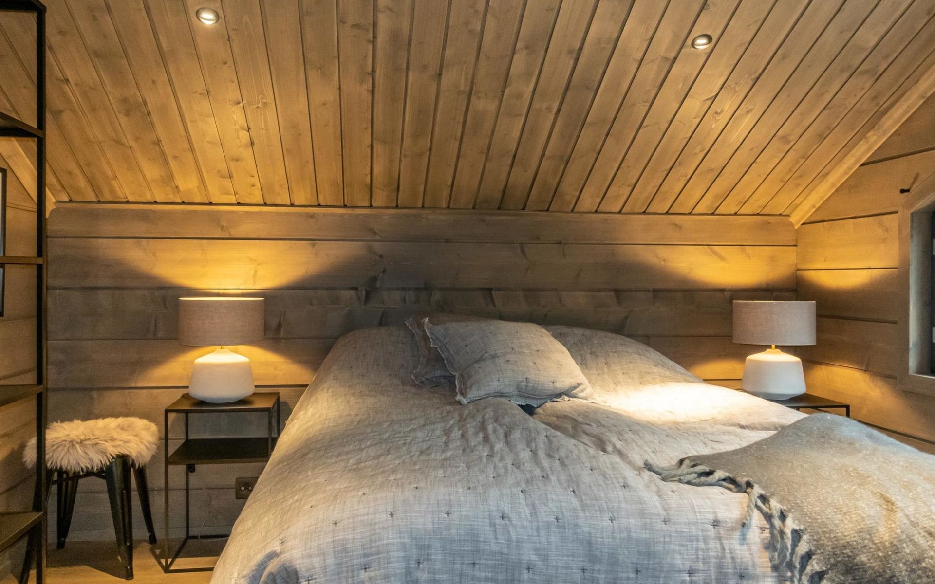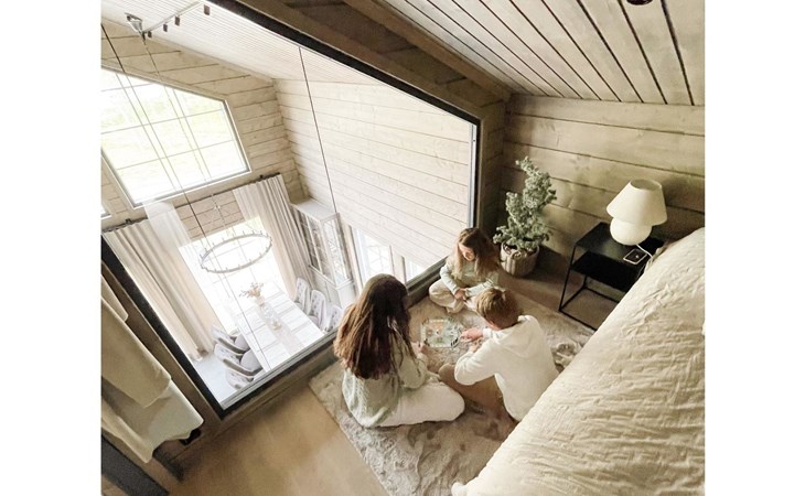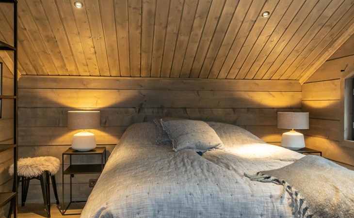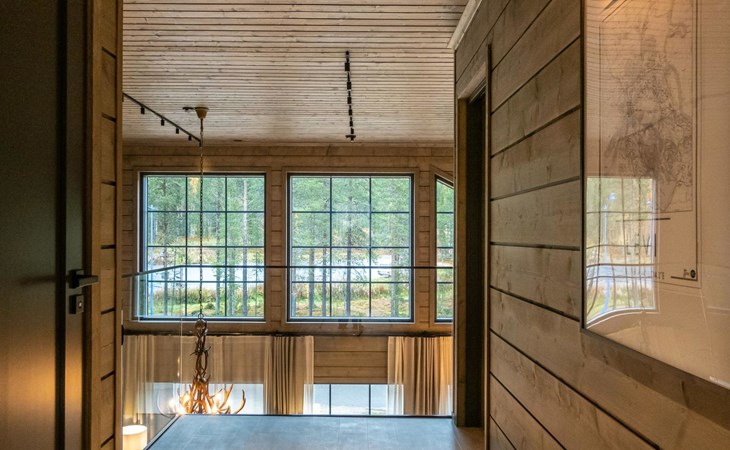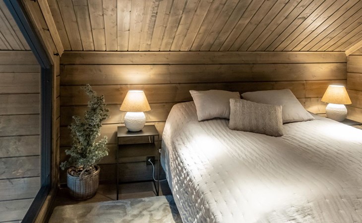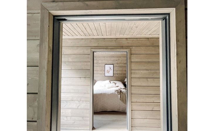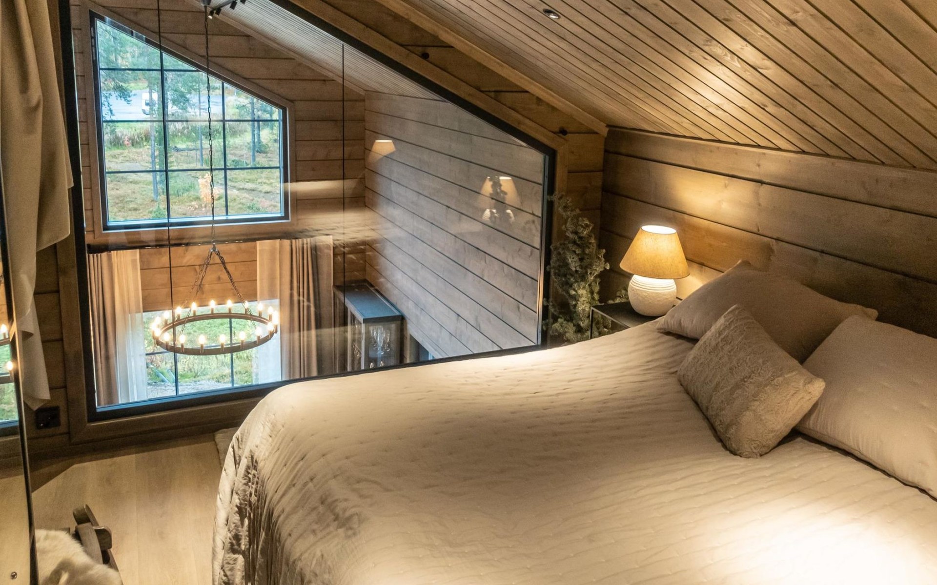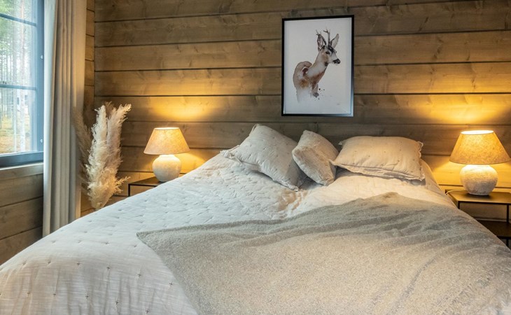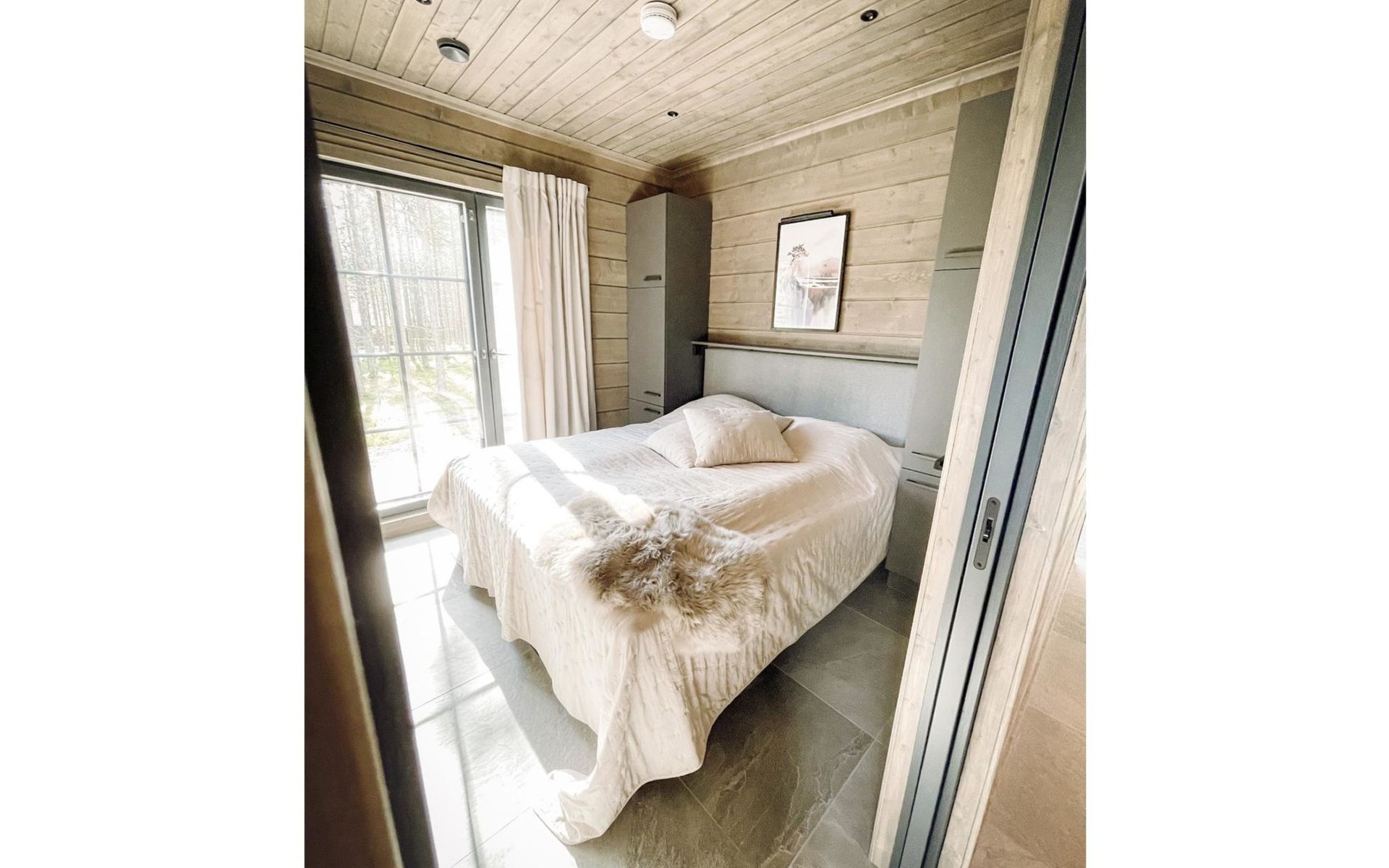 On the ground floor, there is one of Willa's four bedrooms. The bedroom has high-quality 180 cm wide bed and very high-quality pillows and blankets. The room is wonderfully bright thanks to the floor-to-ceiling window, but at night the bedroom can be darkened with a blackout curtain.