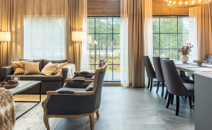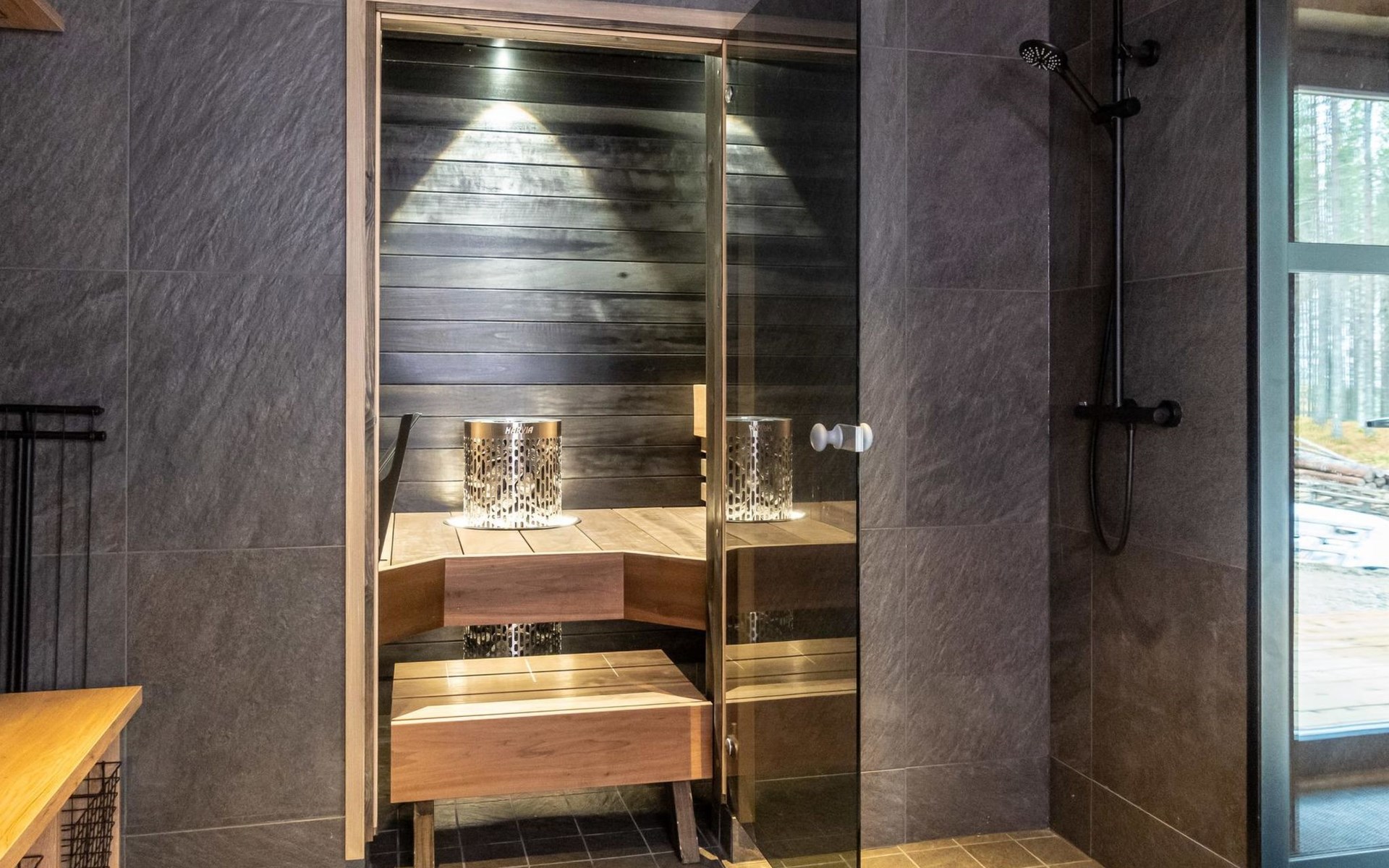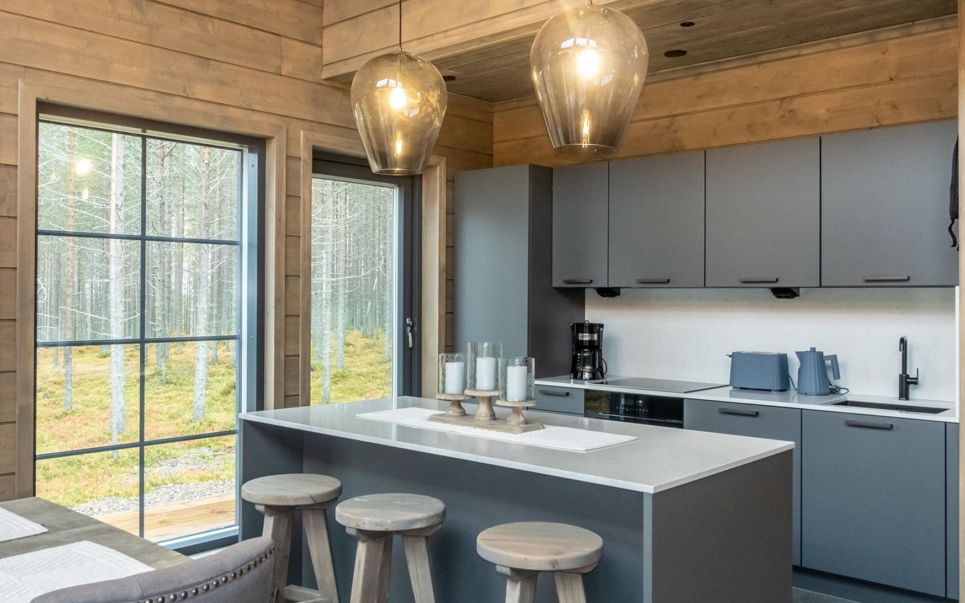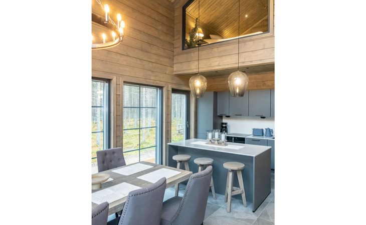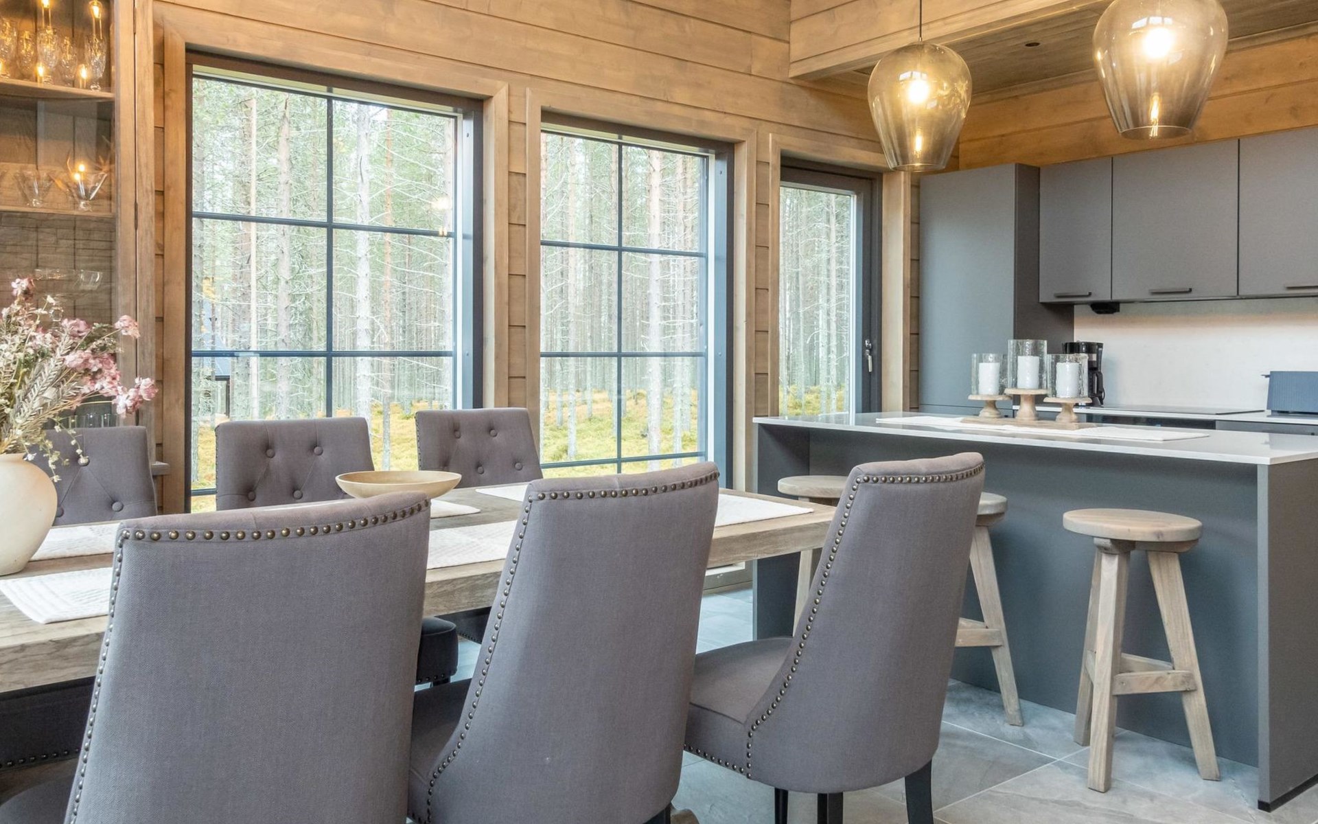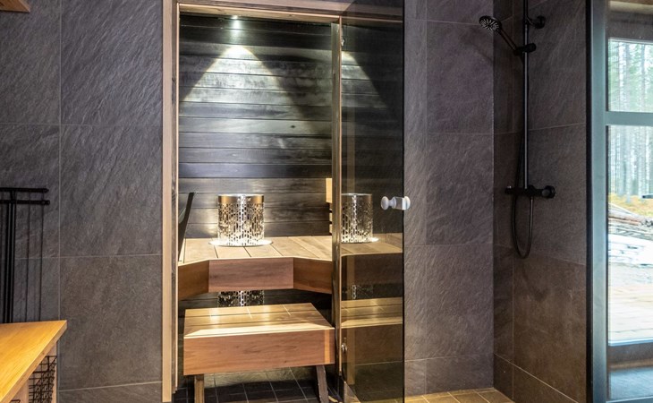 You can enjoy of Levi's fell view from the dining area, as well as from the living room thanks to large windows. From the windows, you can see the gondola and West Point ski lifts and Santa's cabin while you are enjoying of your morning coffee, for example. The bus stop is right near the cabin and the Levi Skibus operates every half hour between the ski slopes and the center of Levi.