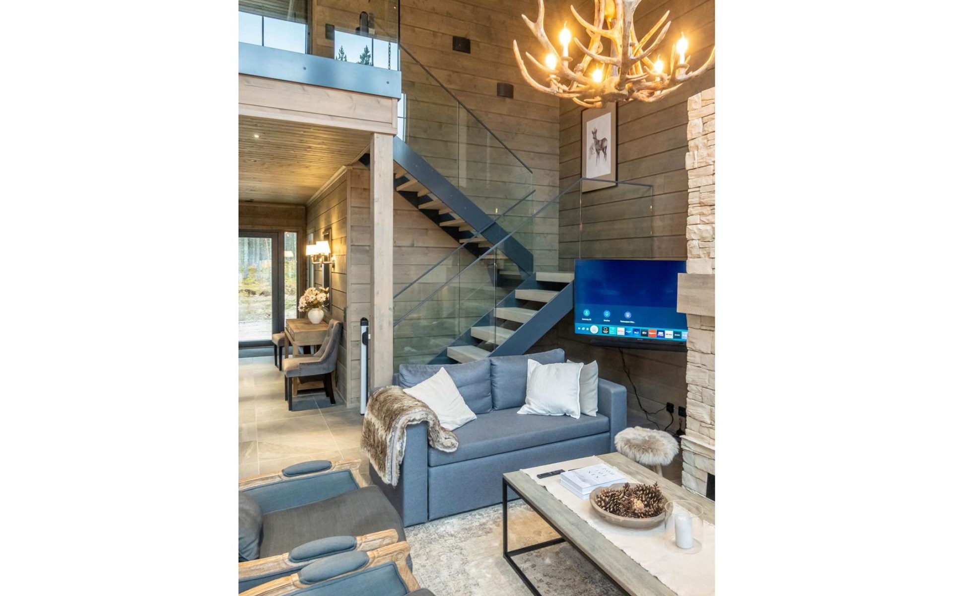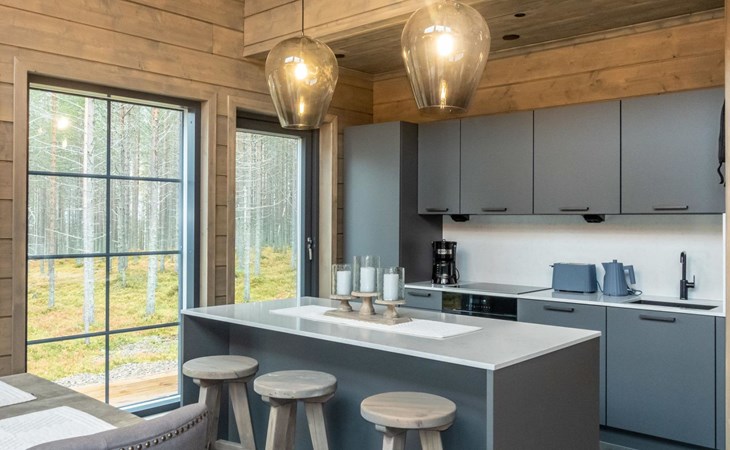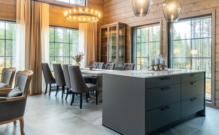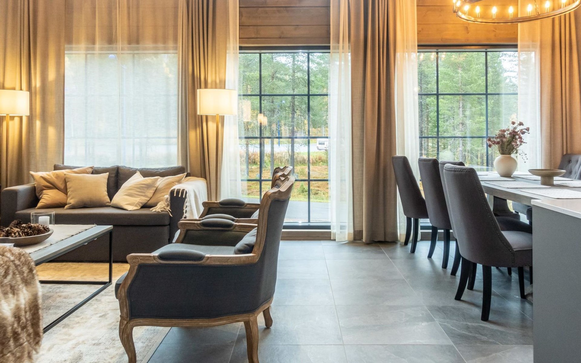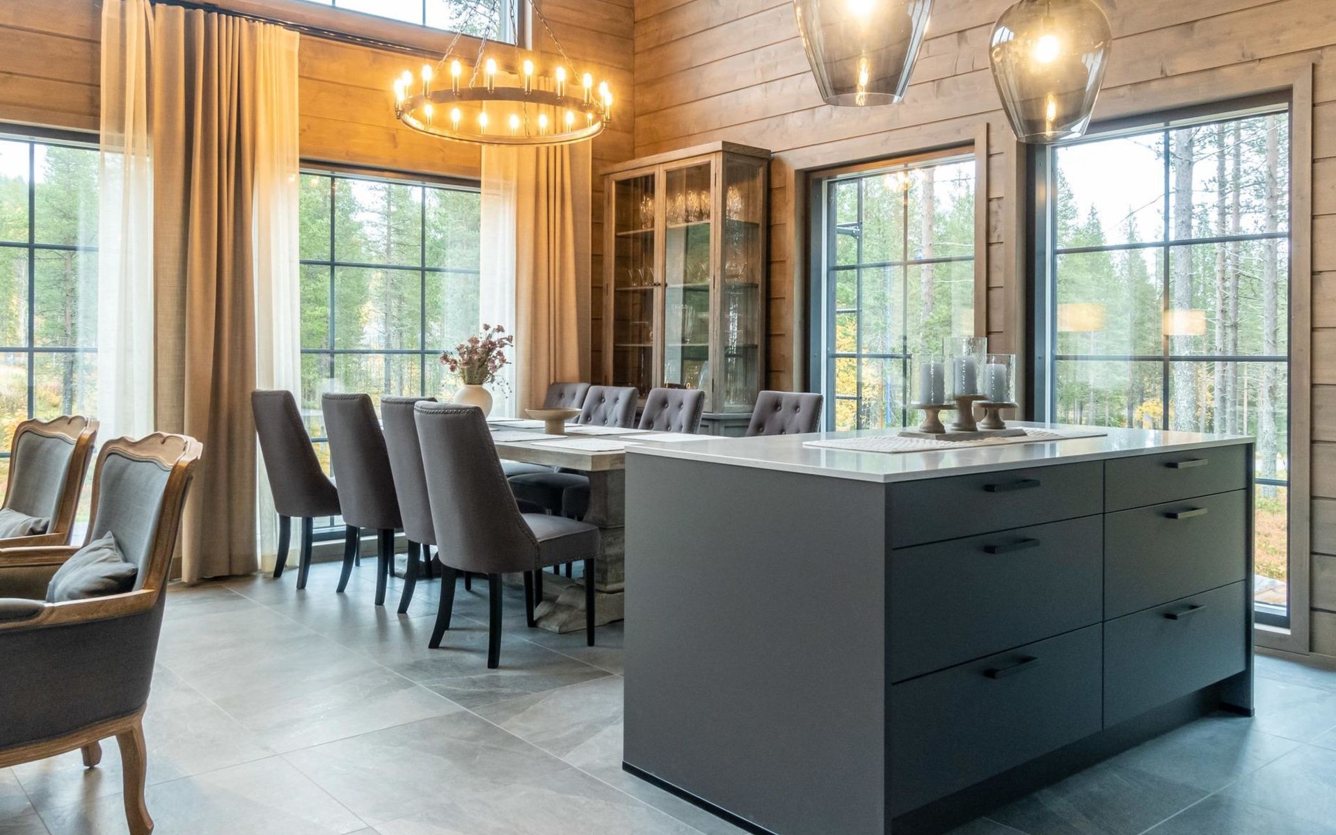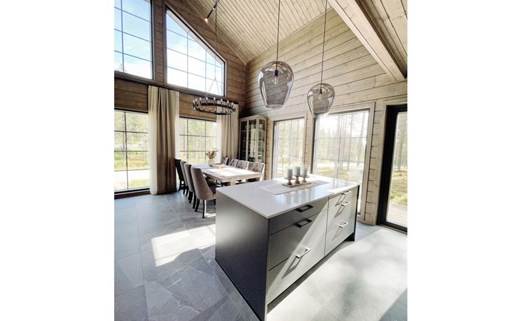 You can enjoy of Levi's fell view from the dining area, as well as from the living room thanks to large windows. From the windows, you can see the gondola and West Point ski lifts and Santa's cabin while you are enjoying of your morning coffee, for example. The bus stop is right near the cabin and the Levi Skibus operates every half hour between the ski slopes and the center of Levi.