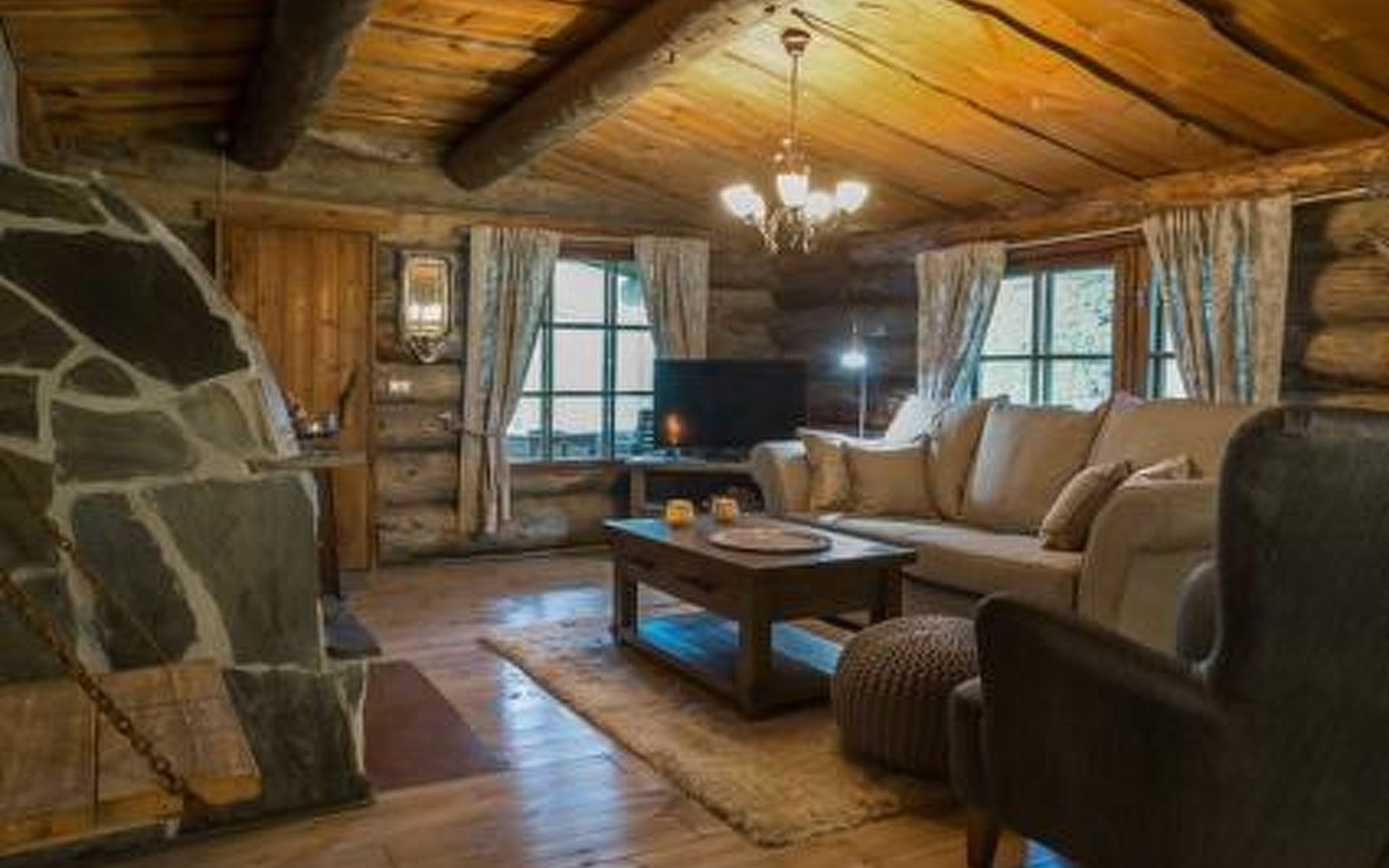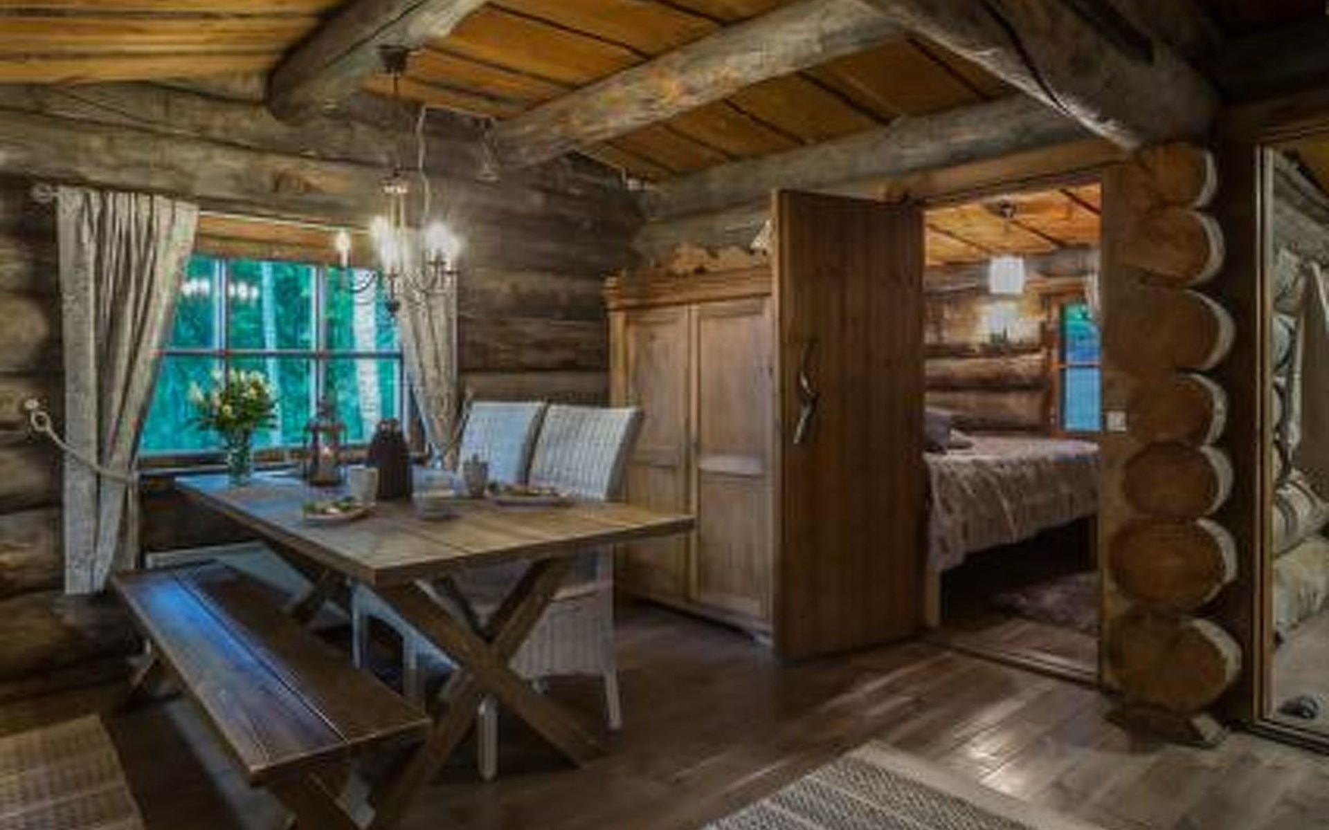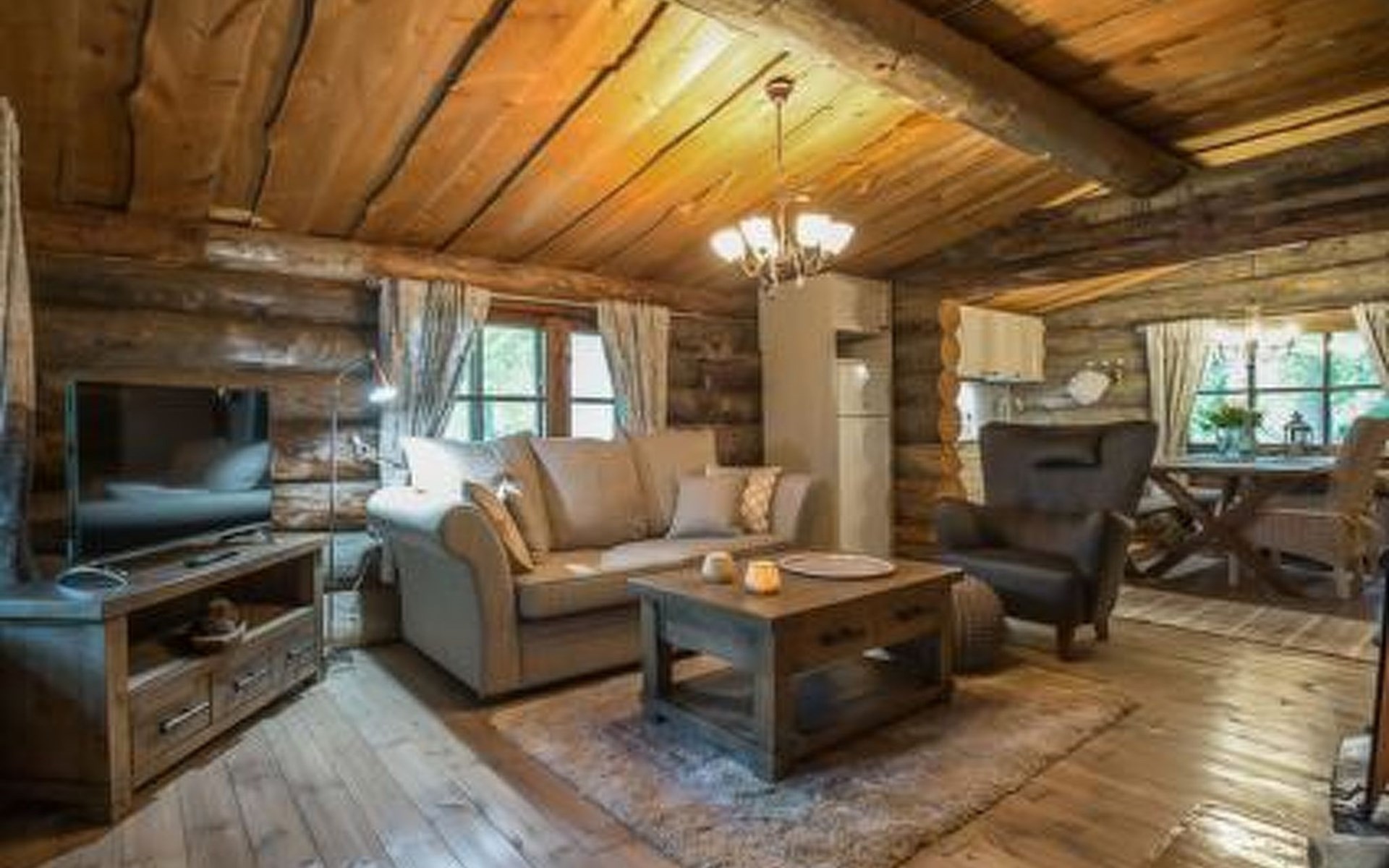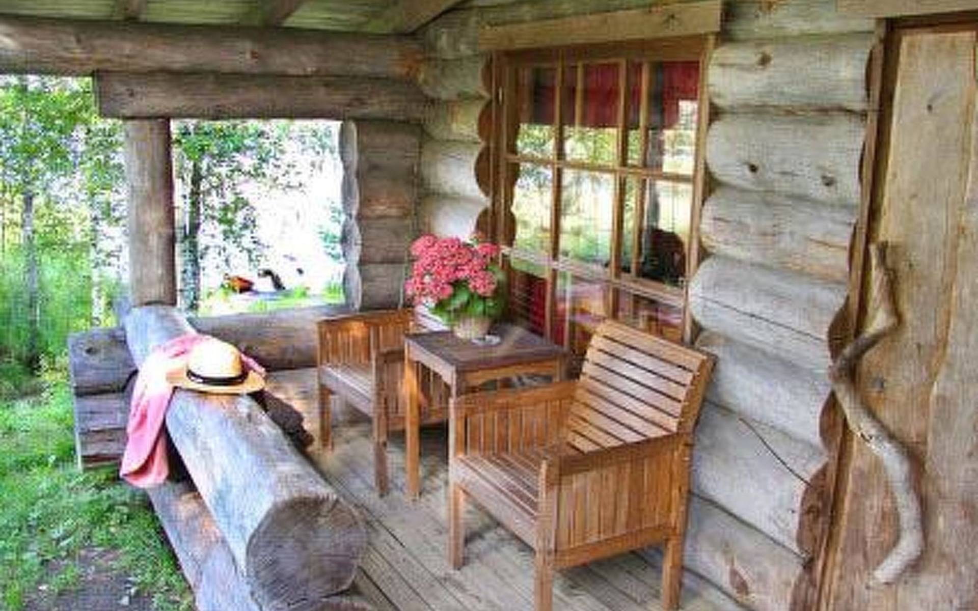 Log cabin 1983, renovated 2017, living room/kitchen, bedroom with double bed, sauna, toilet, shower, open veranda.