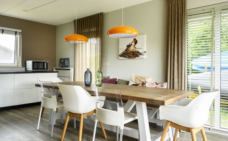 Eernewoude 19 km van Leeuwarden: Groot vakantiepark "Bungalowpark It Wiid". Buiten de plaats, 3.7 km van het centrum van Eernewoude, rustige ligging, direct aan het meer, te midden van groen. Voor medegebruik: natuurlijke zwemvijver, kinderspeelplaats. In het complex: receptie, Internet (WiFi), wasserette, fietsverhuur. Beschikbaar: boot (extra). Parkeerplaats bij het huis. Supermarkt 3.6 km. Jachthaven 2.7 km, golfterrein (18 holes) 25 km. Attracties in de buurt: Rondvaart 500 m, Nationaalpark De Alde Feanen 500 m, Drachten 27 km, Heerenveen 41 km, Het Friese Museumdorp 49 km. Wandelgebied Wikelslan 4 km, Jan Durkspolder 6 km. Groepen jongeren uitsluitend op aanvraag. Vissen toegestaan (visvergunning noodzakelijk), privé aanlegsteiger voor een boot. De afgebeelde foto is slechts een voorbeeld. Vergelijkbare accommodaties kunnen worden geboekt. De omgeving is gevoelig voor geluidsoverlast. Gelieve geen lawaai te maken en de rust te bewaren. Voorkeurskosten 20,25 Euro.
