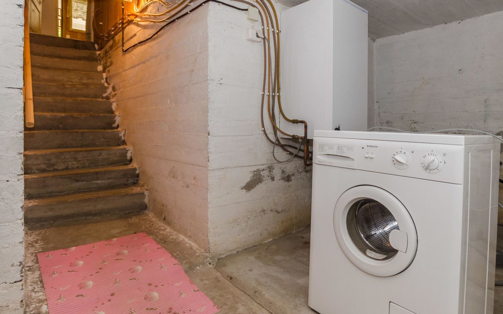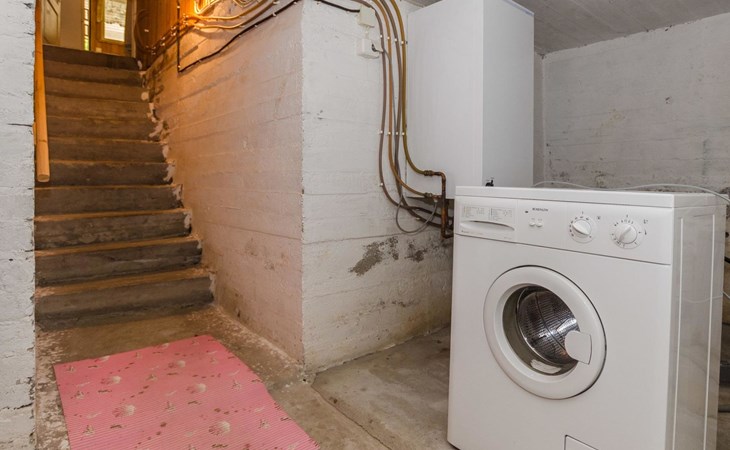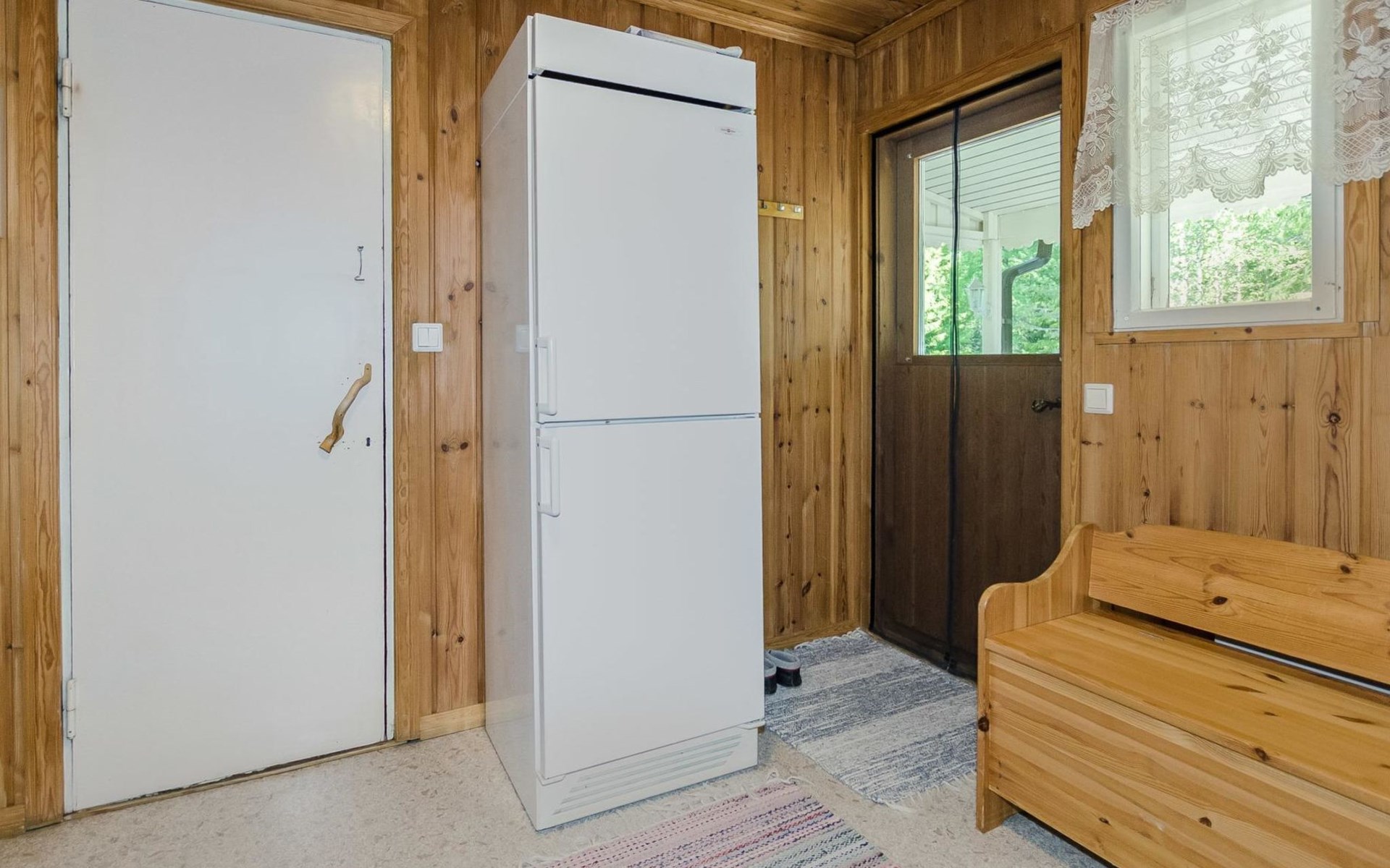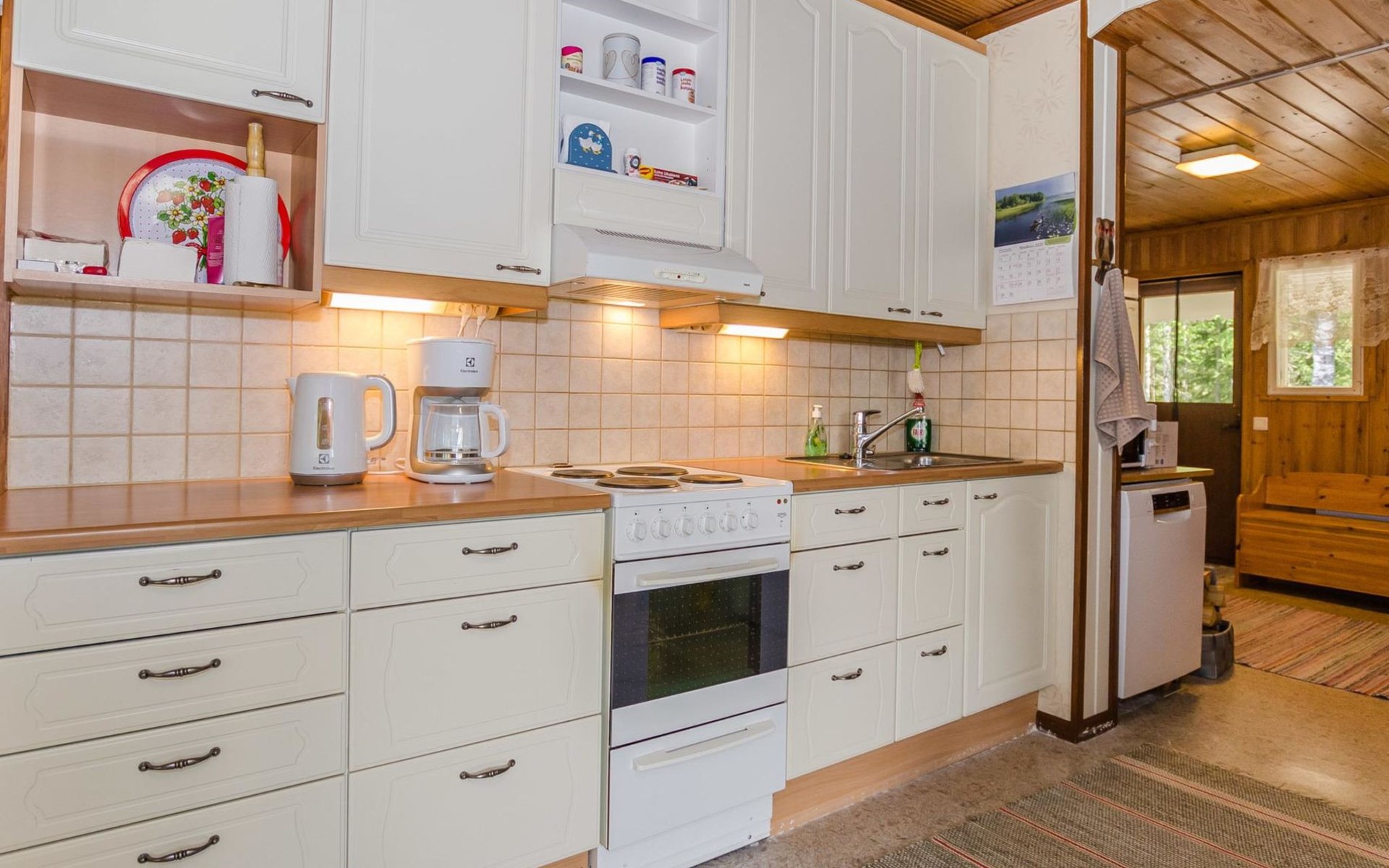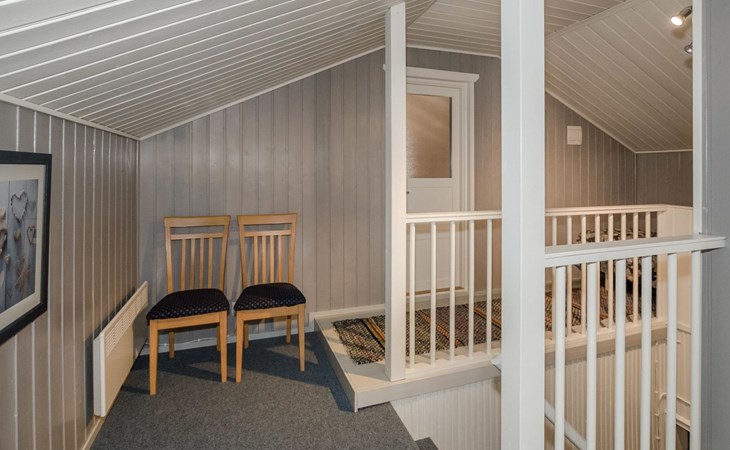 Living room/kitchen, bedroom with double bed, room with spreadable sofa bed, access to the bedroom with 2 double bed from this room. Bedroom with bed, double bed and balcony on the upper floor. There is also a bed on the staircase on the upper floor. WC on both floors. On the upper floor wood-heated sauna, shower in steam room and dressing room. Washing machine in the basement. There are also entrance hall, porch and terrace.