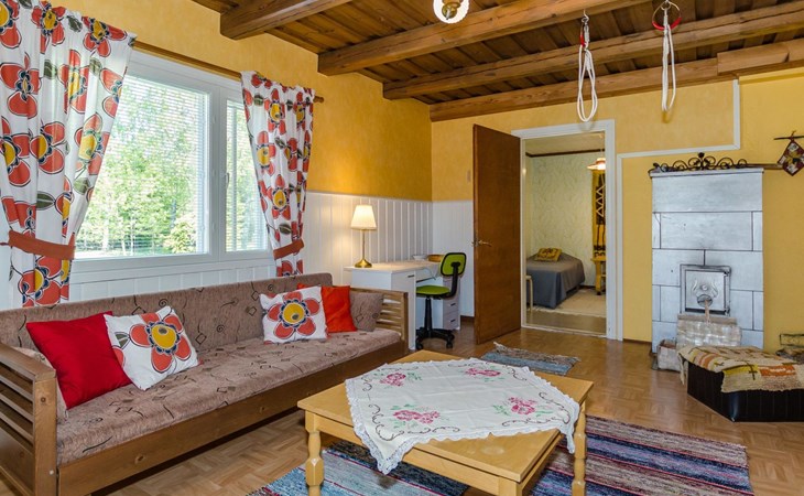 Nice farm-like yard in the middle of the peaceful environment. There is a cooking hut in the yard and a campfire site by the artificial pond. There is also a playhouse in the yard and two rooms (can be used in summer) in the outbuilding. Wireless 4G internet.