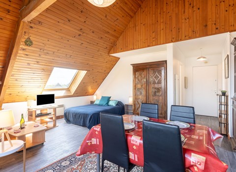 Residentie "Les Horizons", van 8 verdiepingen. Aan de rand van de plaats Lavandou, centrale ligging, gebied met weinig verkeer, 50 m van zee, de straat oversteken, directe toegang tot het strand. Voor medegebruik: verzorgde tuin planten en bloemen. Tennisbaan (extra), jeu de boules. In het huis: lift, bergruimte voor fietsen. Parkeerplaats (beperkt aantal), openbare parkeerplaatsen 50 m. Winkel, levensmiddelenwinkel 100 m, supermarkt 250 m, restaurant, bar 50 m, bakkerij 150 m, café 50 m, fietsverhuur 450 m, centrum te voet bereikbaar in 10 minuten, bushalte "Lavandou Gare routière" 500 m, zandstrand "L'Anglade" 50 m. Jachthaven 1 km, golfterrein (18 holes) 16 km, zeilschool 900 m, tennis 100 m, midgetgolf 700 m, kinderspeelplaats 700 m. Attracties in de buurt: Magic World 26 km, Parc Olbius Riquier 22 km, Saint Tropez 40 km, Le Jardin des Méditerranées 15 km. Wandelgebied Sentier du littoral 3 km. Gesloten residentie met een elektrische deur. De sleuteloverdracht vindt plaats bij het agentschap Interhome in Le Lavandou.