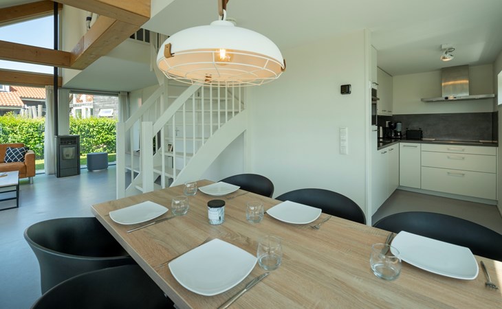 De moderne en luxe woning is van alle gemakken voorzien en heeft een lichte woonkamer met een gezellige zithoek en een sfeervolle openhaard. De open keuken grenst direct aan de woonkamer en de eethoek. In de woning zijn drie slaapkamers aanwezig waarvan één op de begane grond. Daarnaast zijn er twee badkamers met douche en aparte toiletten aanwezig.