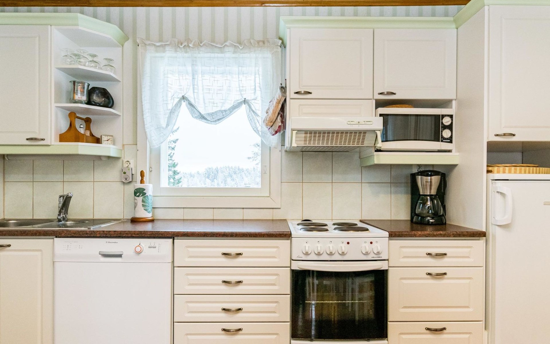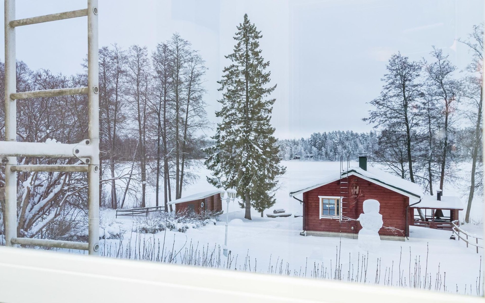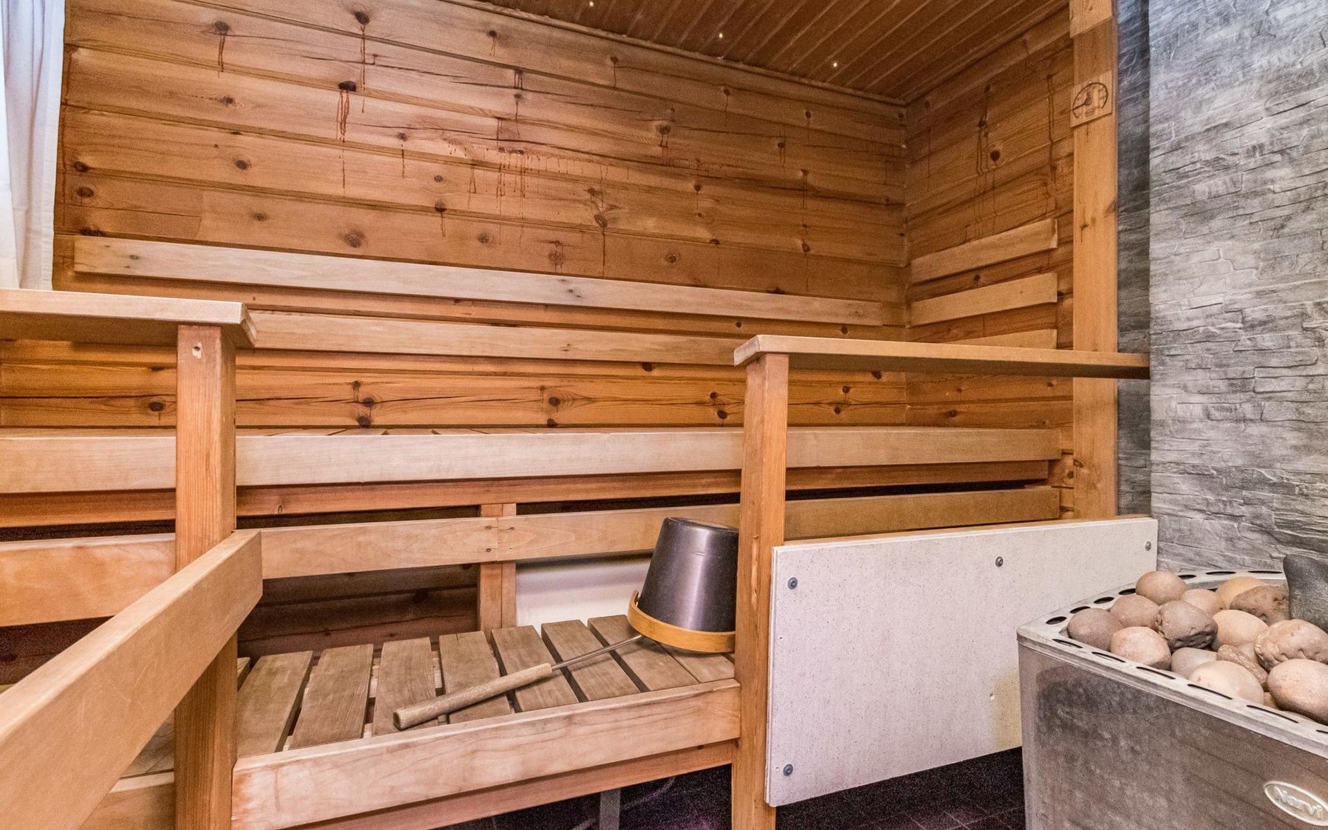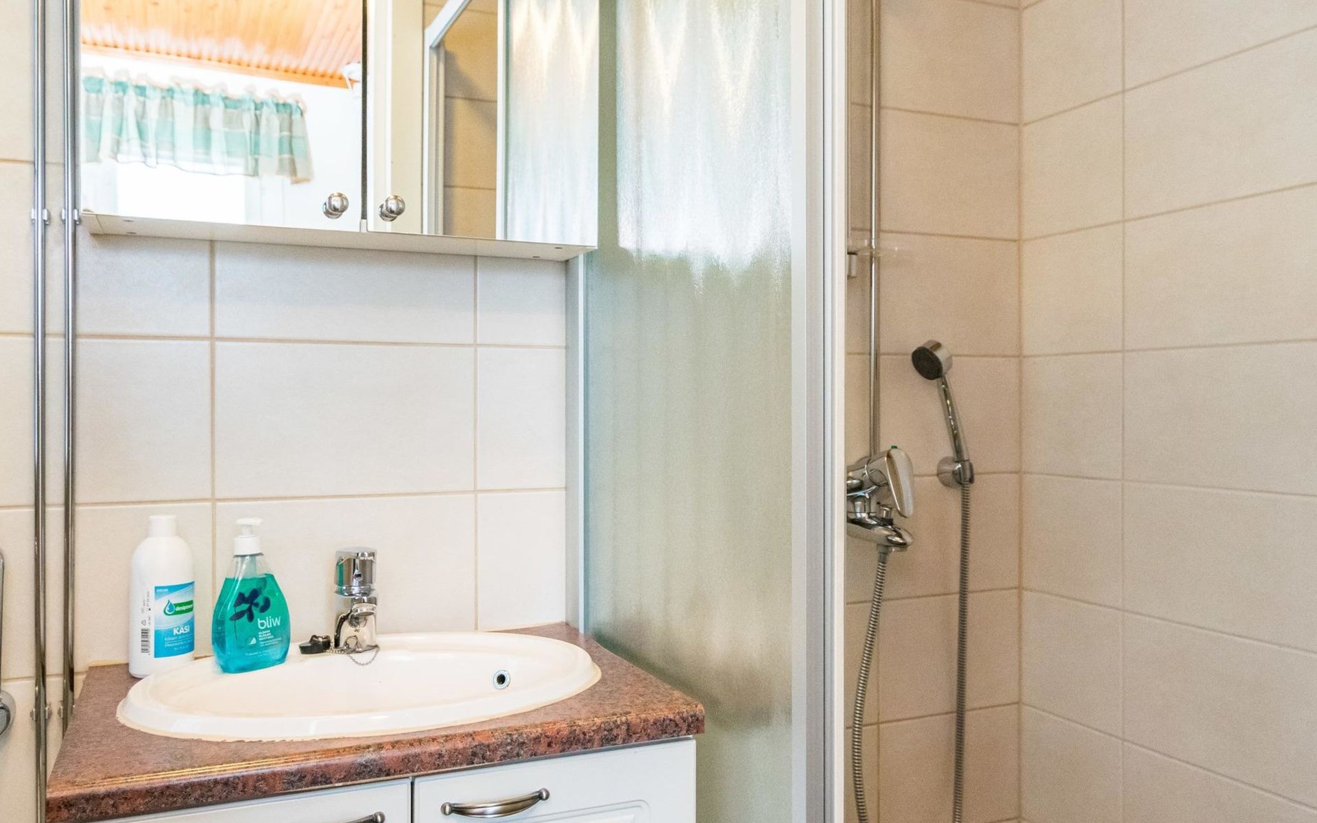 Lakeside sauna 2008 (21 m²), fireplace room with kitchenette, shower in washroom, wood-burning and electric sauna stove in sauna, covered terrace. Covered cooking area and terrace on the beach.