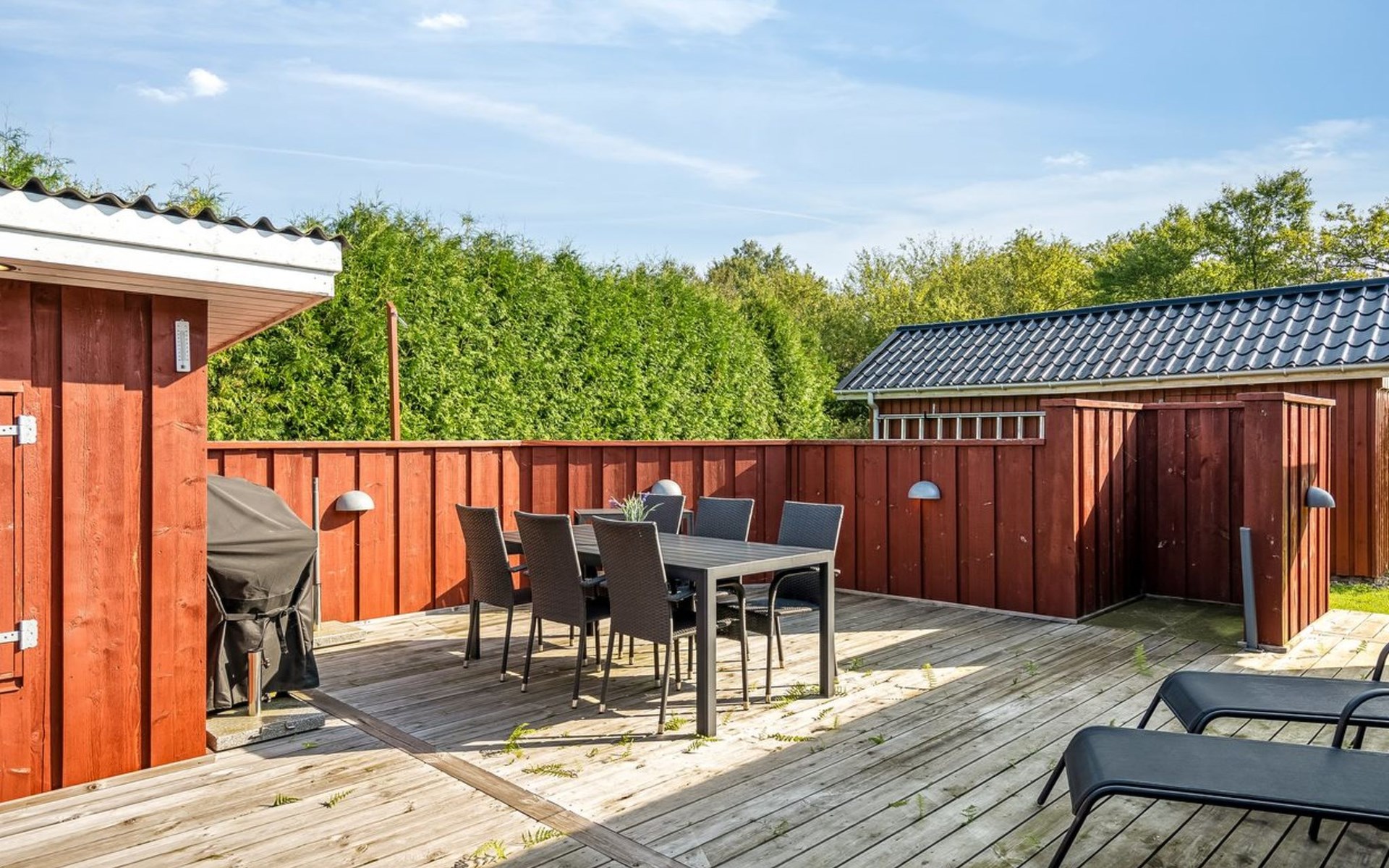 Eengezinswoning, bouwjaar 1974. 1 km van zee. Voor alleengebruik: terrein 1.556 m2, verzorgde tuin. Barbecue. In het huis: wasmachine, droger. Parkeerplaats bij het huis. Oplaadstation. Levensmiddelenwinkel 4.4 km. Golfterrein 4.3 km. De eigenaar accepteert geen jeugdgroepen.