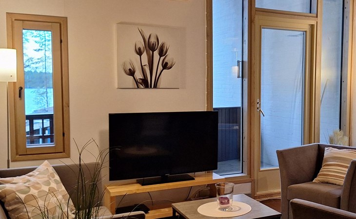 The flat is suitable for down hill and cross-country skiers; to Ukko-Koli slopes 9 km. Final cleaning fee include to the price.
