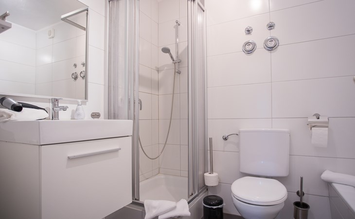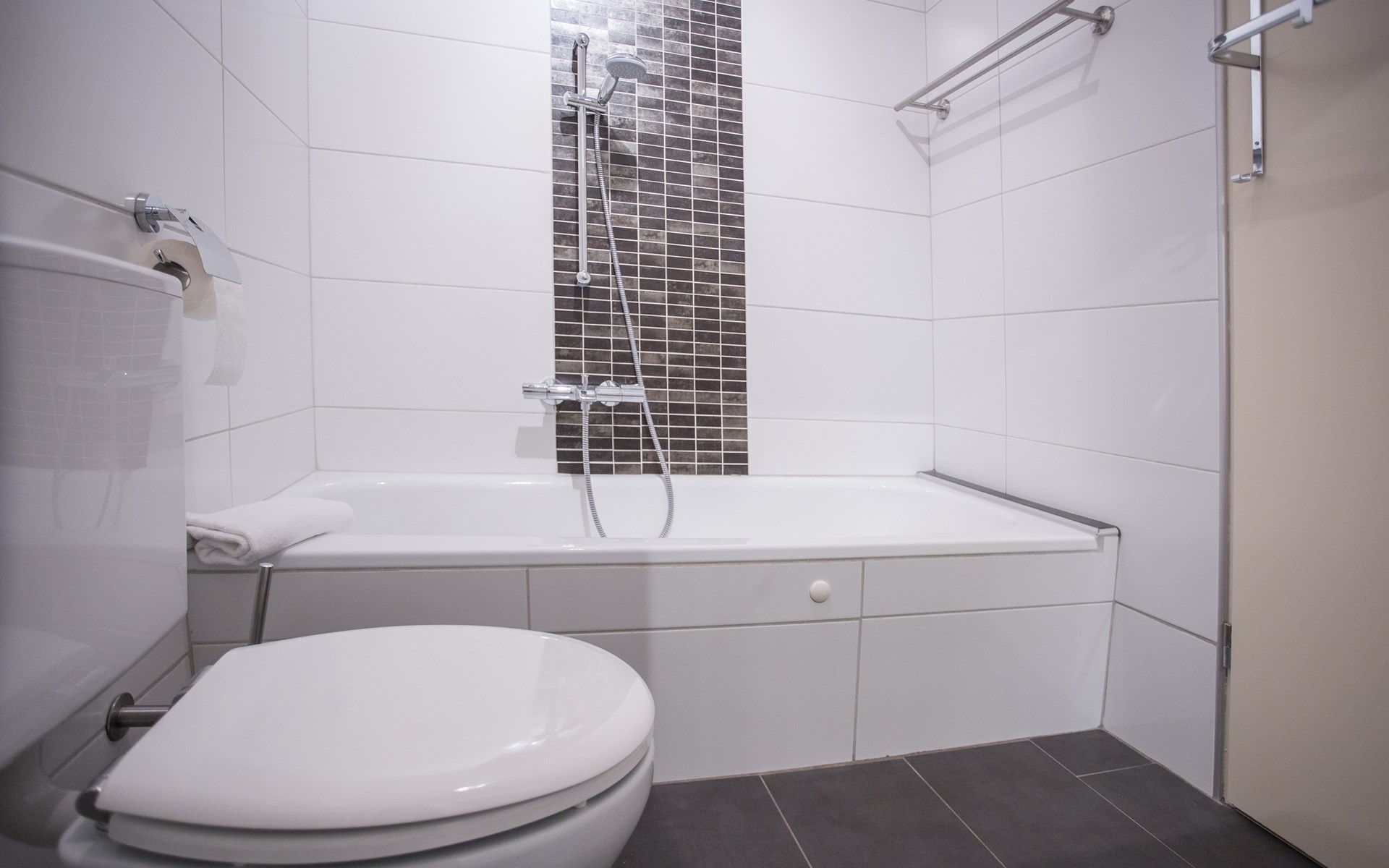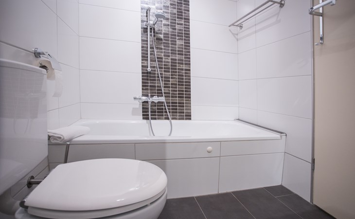 De badkamer is voorzien van zowel een bad als een douche, wastafel en toilet. Alles wat je nodig hebt voor een ontspannen verblijf!