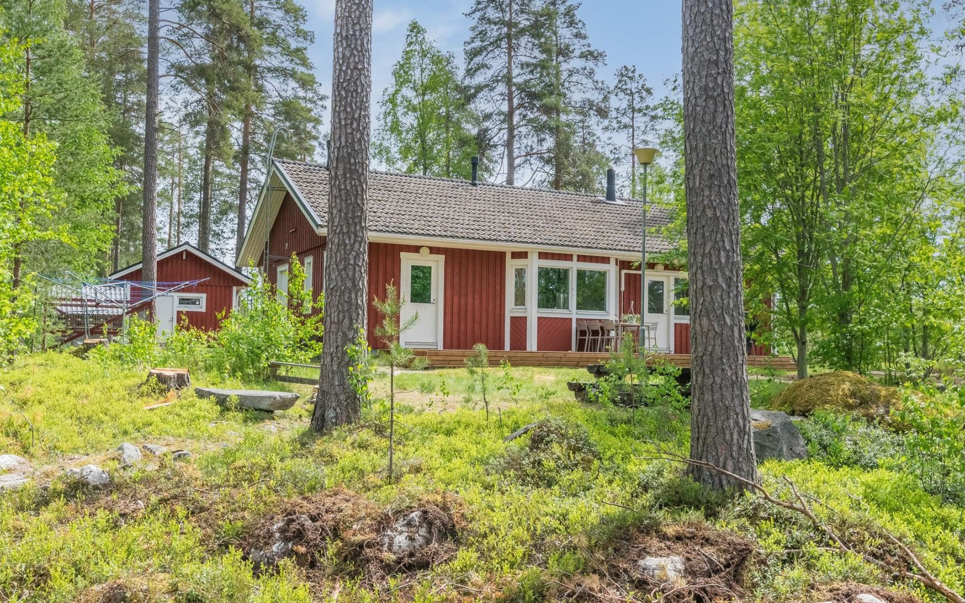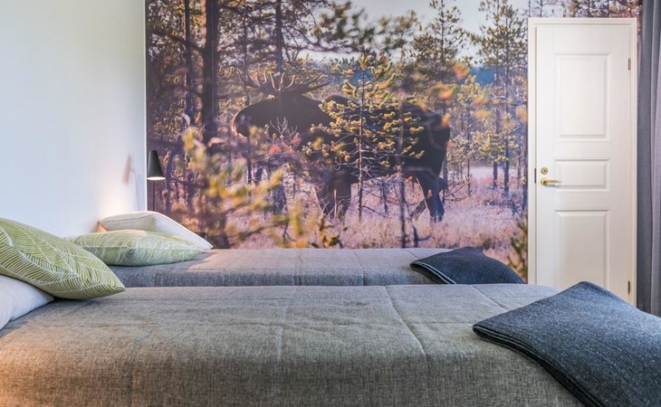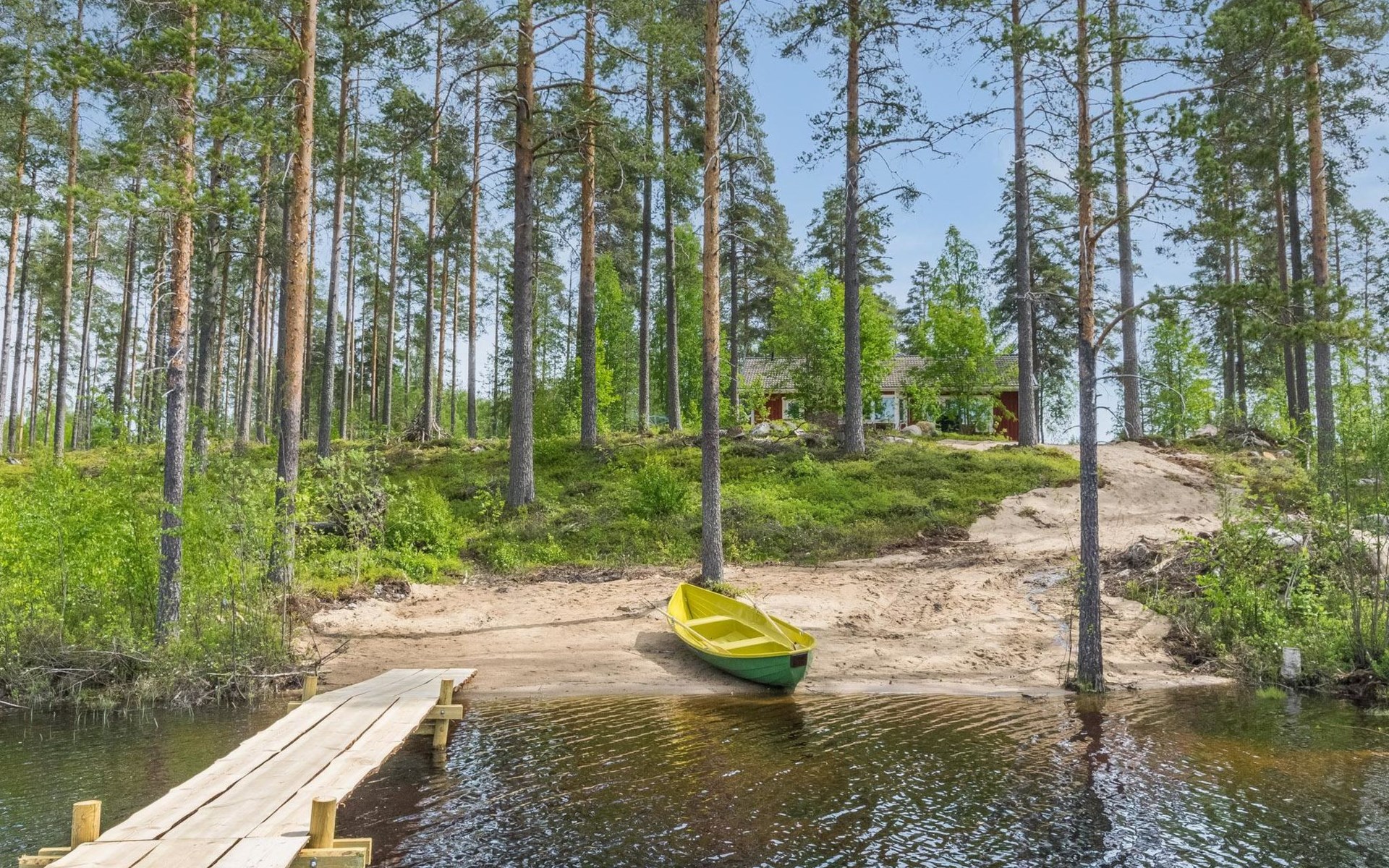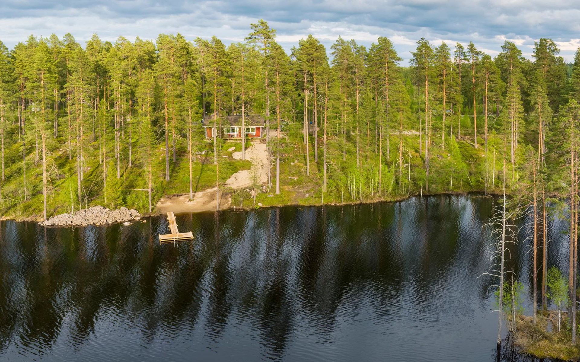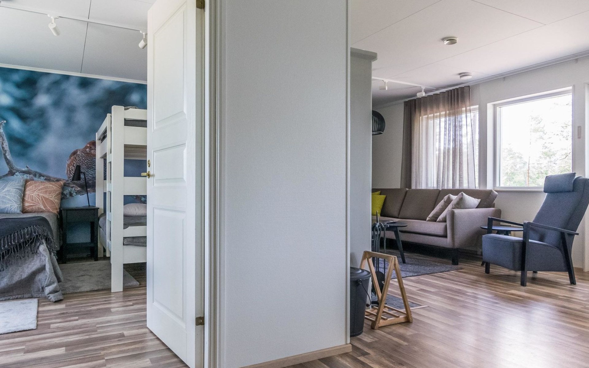 Wooden cabin 1991, bedroom 1: 2 beds and bunk bed 80x200 cm, bedroom 2: 2 beds, living room with fireplace in the TV corner, dining group for eight people, well-equipped kitchenette, sauna (electric sauna stove), washroom with shower and washing machine, terrace with a gas grill and garden furniture.
