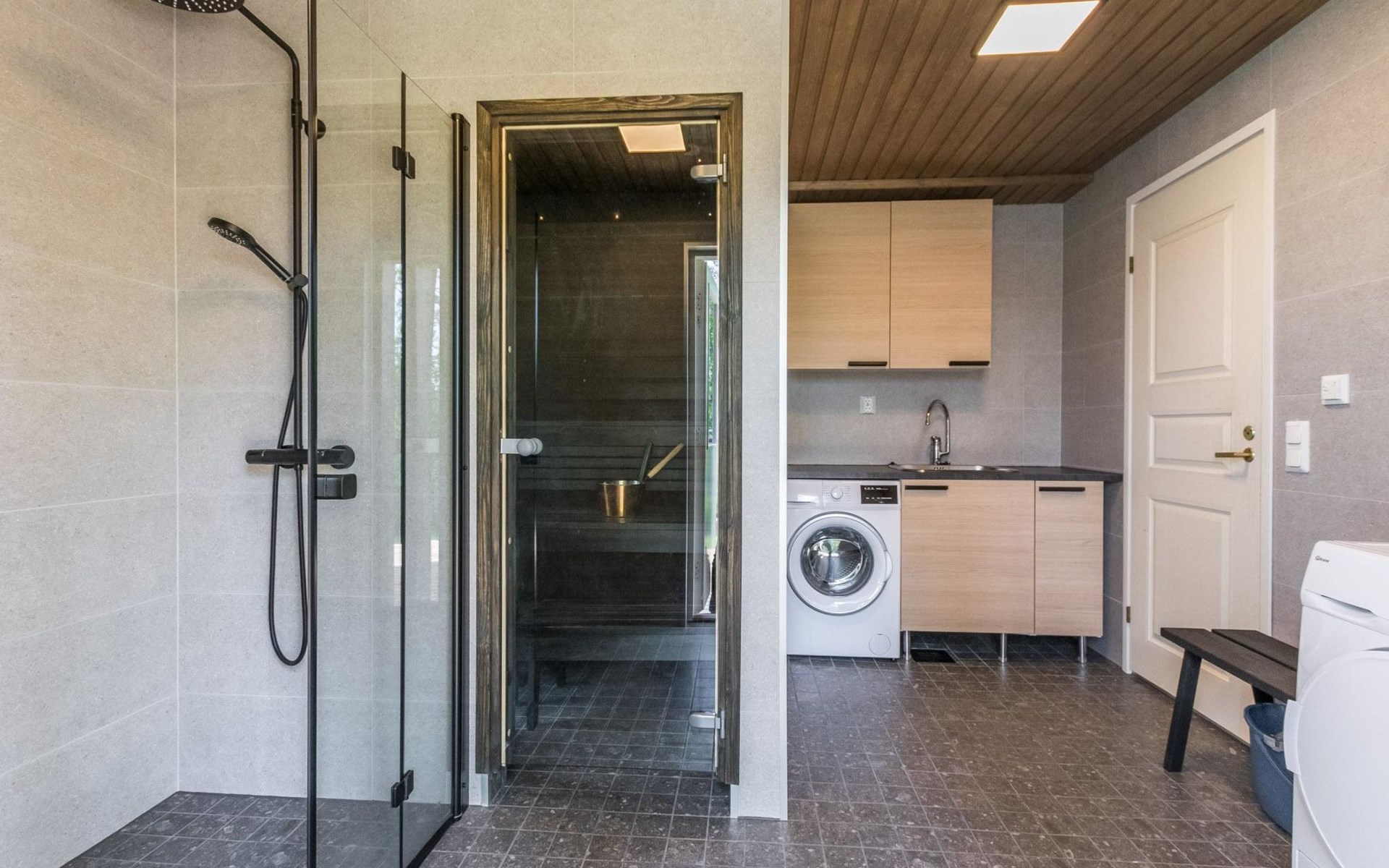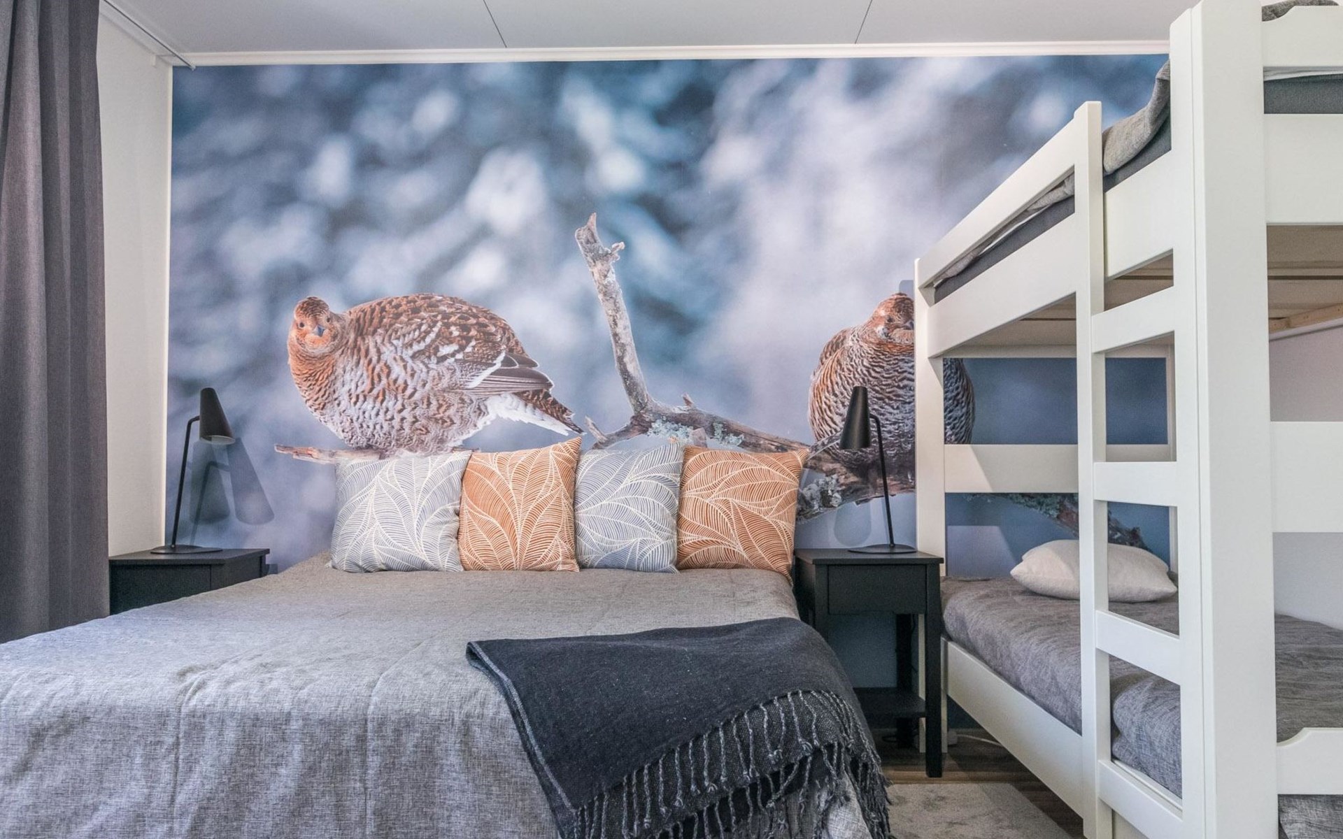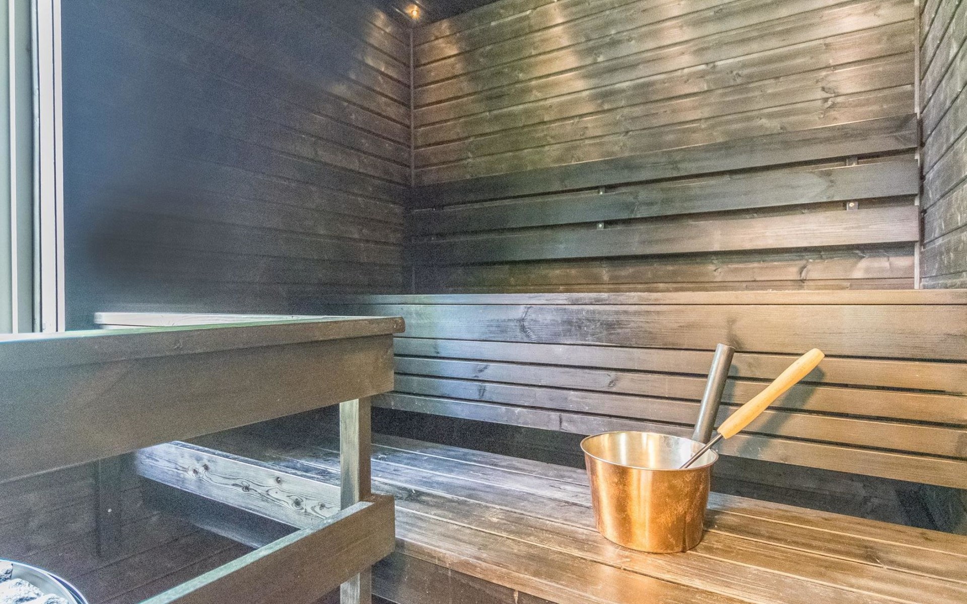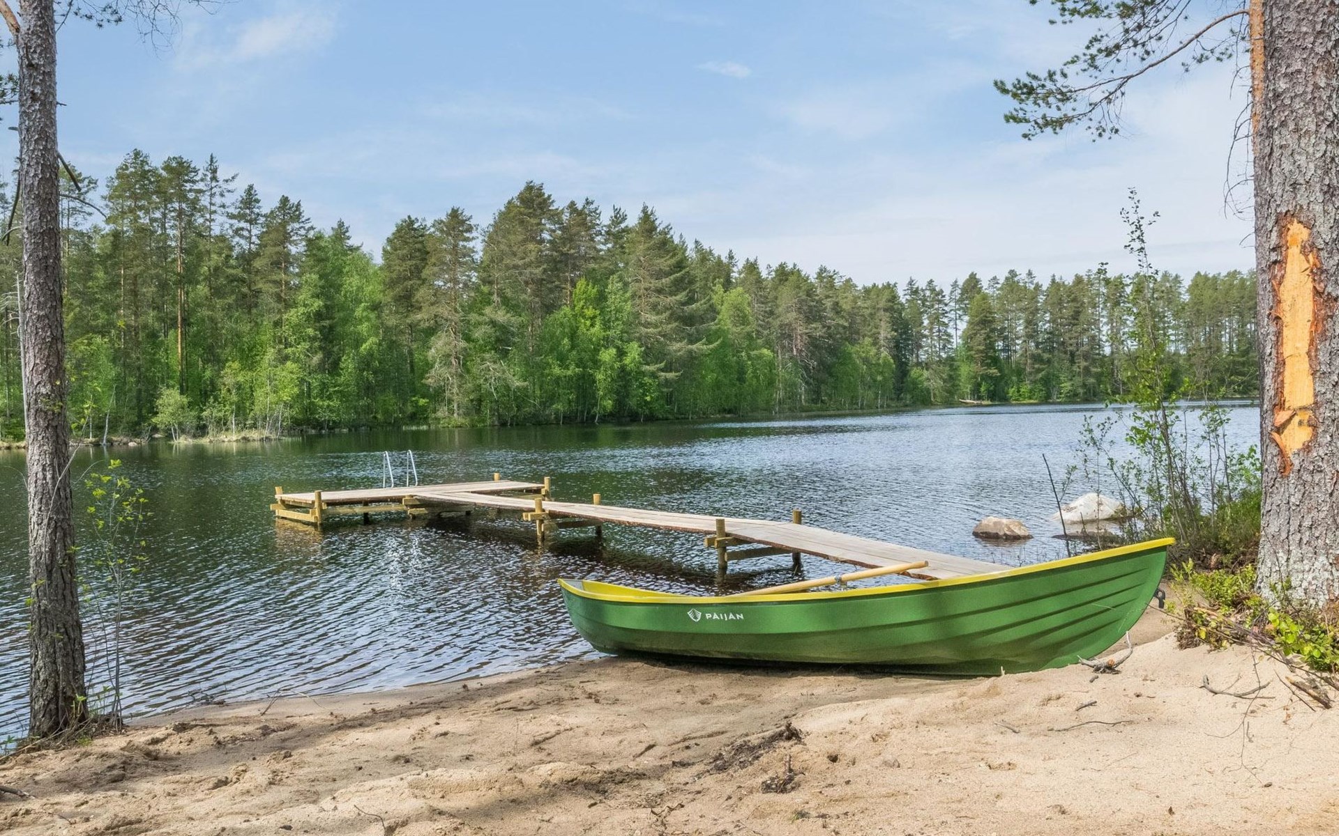 Wooden cabin 1991, bedroom 1: 2 beds and bunk bed 80x200 cm, bedroom 2: 2 beds, living room with fireplace in the TV corner, dining group for eight people, well-equipped kitchenette, sauna (electric sauna stove), washroom with shower and washing machine, terrace with a gas grill and garden furniture.