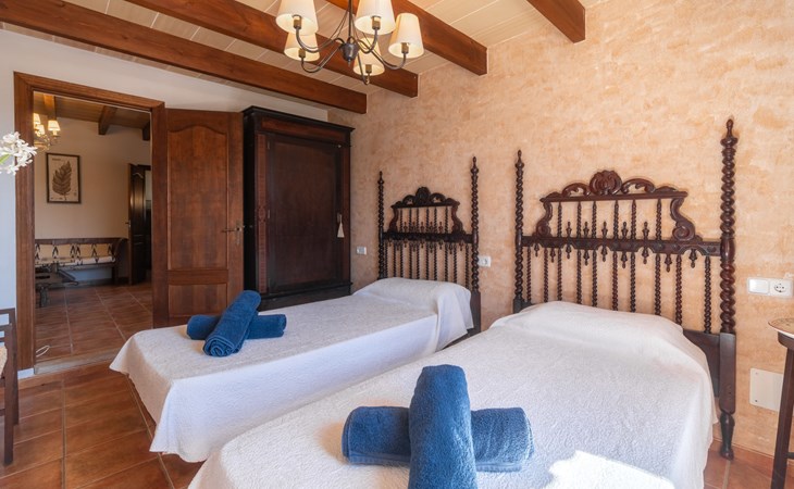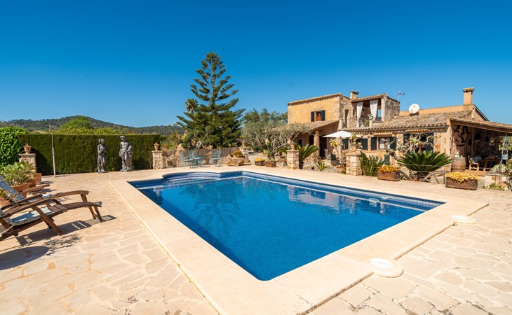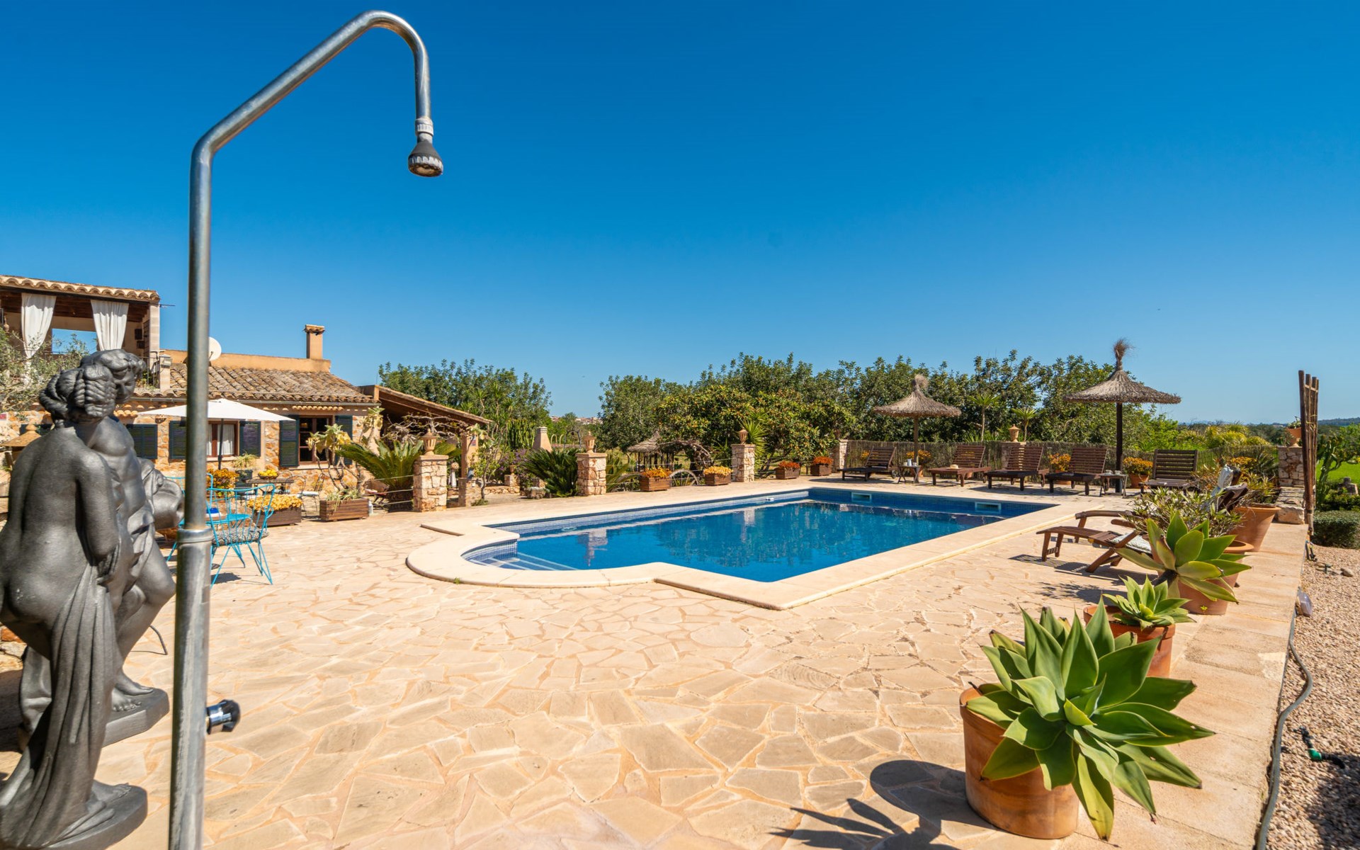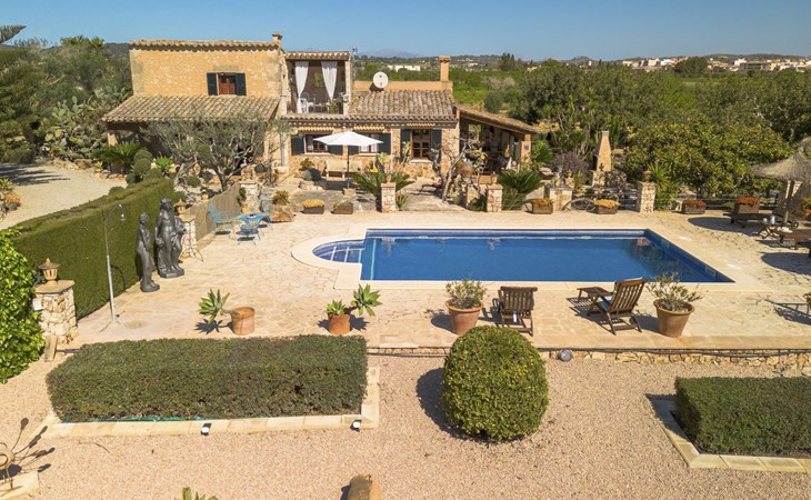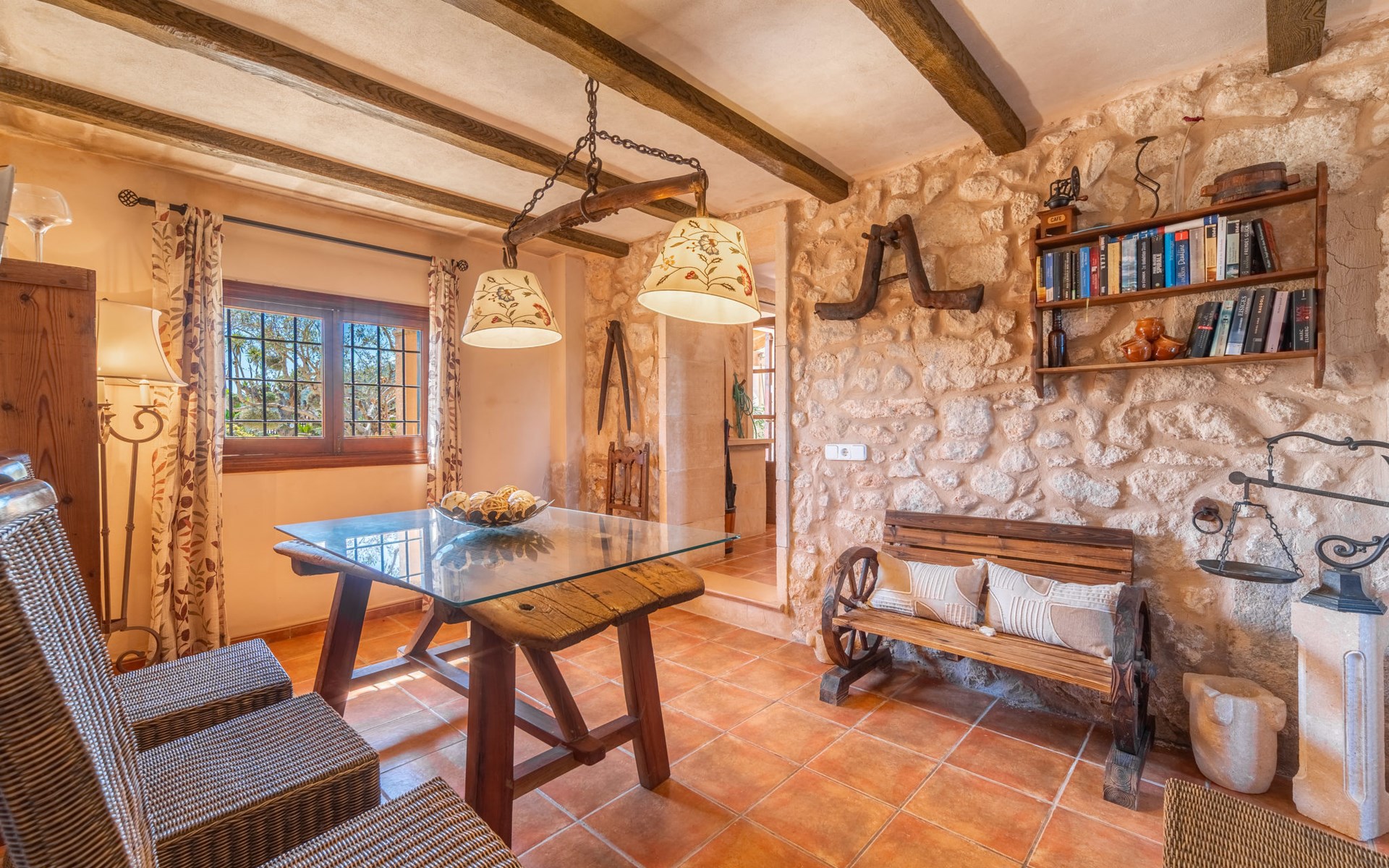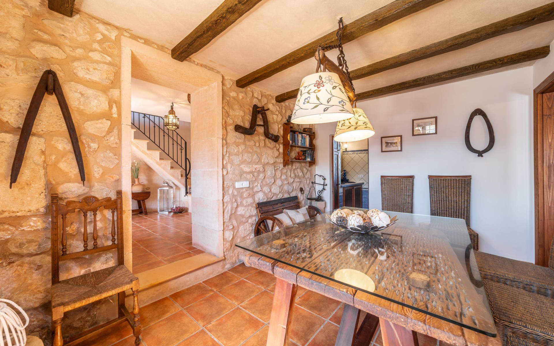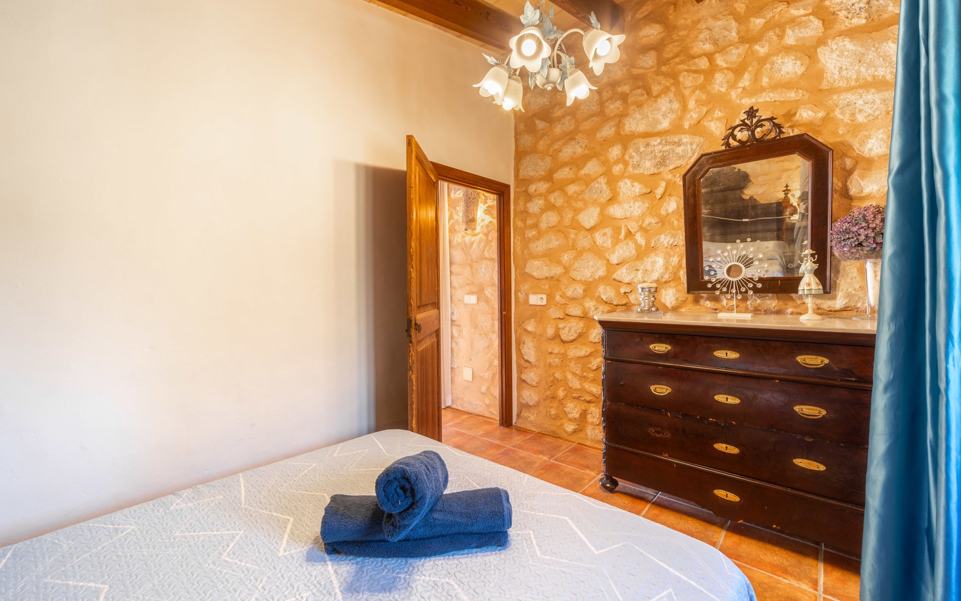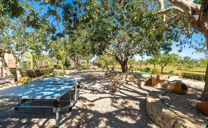 Groot, mooi, comfortabel landgoed "Ses Terrasses", van 2 verdiepingen, gerenoveerd, omgeven door velden. Buiten de plaats, 1.5 km van het centrum van Porreres, rustige, zonnige ligging, 19 m van zee, te midden van groen. Voor alleengebruik: wild terrein (omheind), tuin met planten en bomen, openluchtzwembad hoekig (9 x 5 m, 30 - 200 cm diepte, seizoensgebonden beschikbaarheid: 01.Jan. - 31.Dec.). Buitendouche, tafeltennis, jeu de boules, patio, prieel, prieel, tuinmeubelen, barbecue, kinderspeelplaats (glijbaan, schommel), minidierentuin onderhoud zwembad door de eigenaar/tuinman. In het huis: internetaansluiting, Internet (WiFi). Parkeerplaats bij het huis op het terrein. Supermarkt 3.4 km, restaurant 3.3 km, bar 3.3 km, bakkerij 3.4 km, centrum te voet bereikbaar in 25 minuten, bushalte "Ronda de l'Estació 1 (43006)" 1.5 km, zandstrand "Arenal de Sa Ràpita - Es Trenc" 20 km. Jachthaven 18.6 km, golfterrein (18 holes) 27 km, fietspad 500 m. Attracties in de buurt: Palma City 43 km, Pueblos de Porreres-Campos-Felanitx, Colonia Sant Jordi 23 km, Portopetro 32 km, Santuario de Lluc 52 km, Santuario de Montision 1.9 km. Wandelgebied Serra de Tramuntana. Auto noodzakelijk, geen lift. Geschikt voor families. Het objekt is geschikt voor 6 volwassenen. De eigenaar accepteert geen jeugdgroepen. Op het grondstuk dierhouderij. Dieren in de buurt. Vliegveld 38 km van het huis.