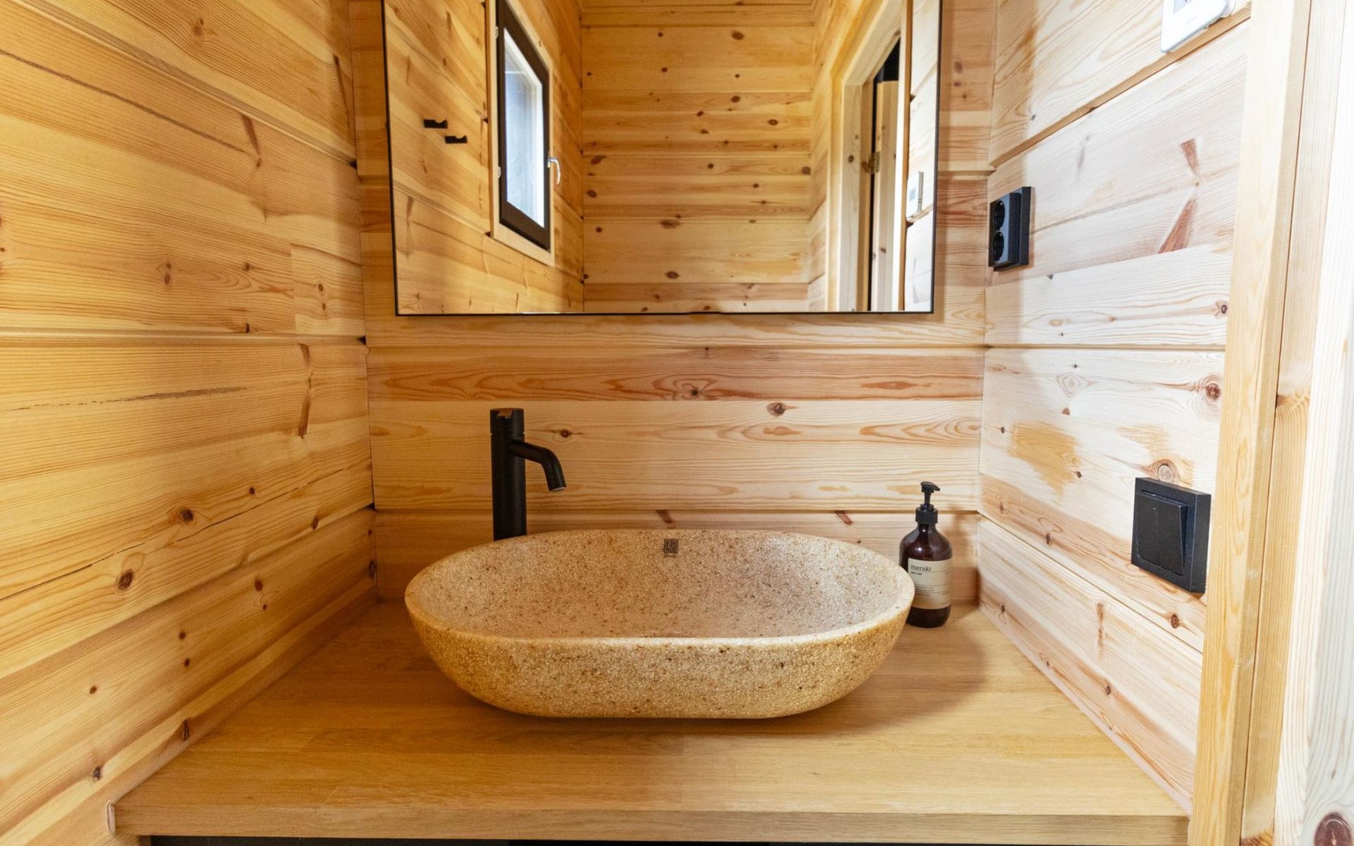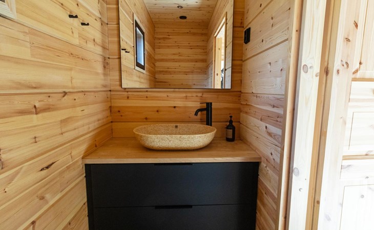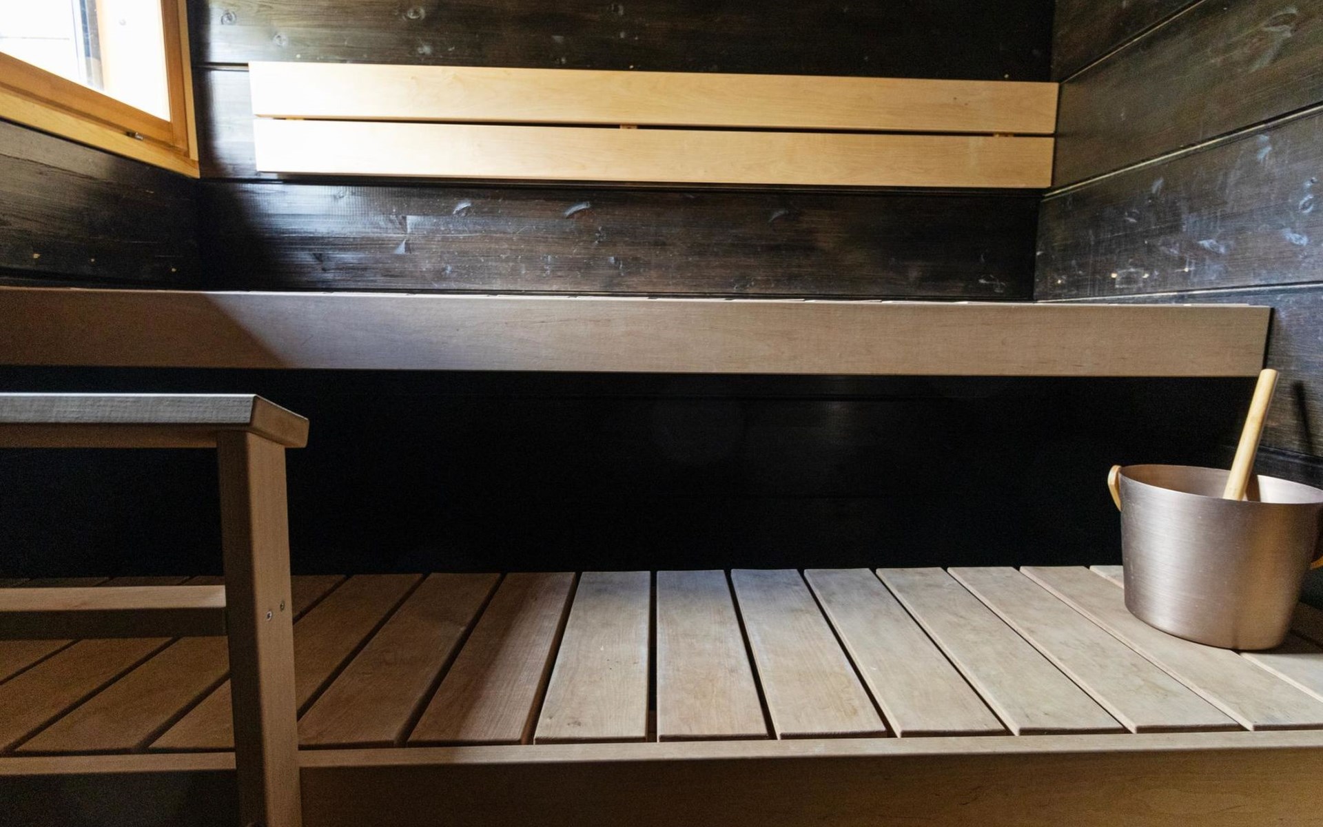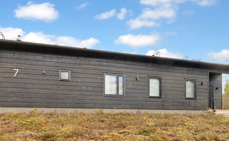 The cabin has three bedrooms with beds for seven. Blackout curtains in the bedrooms. One bedroom has a double bed, the second bedroom has 2 separate beds, and the third bedroom has a bunk bed and 1 separate bed. Large living room/kitchen, two WCs, spacious hall, dressing and housekeeping room, shower and sauna.