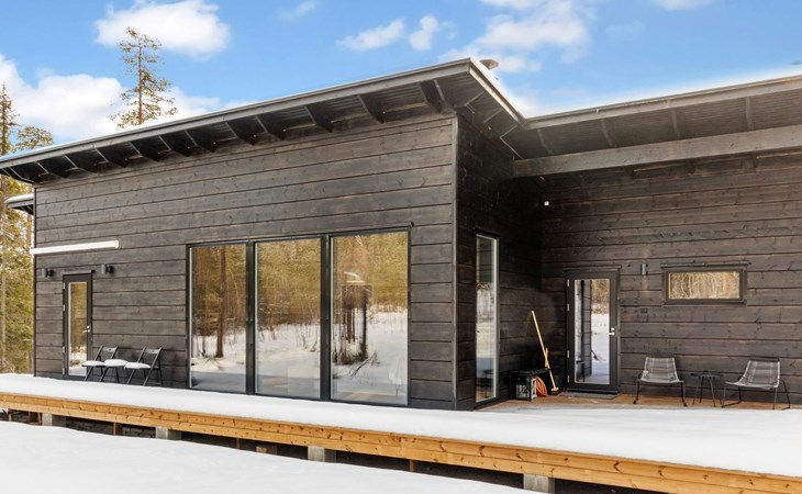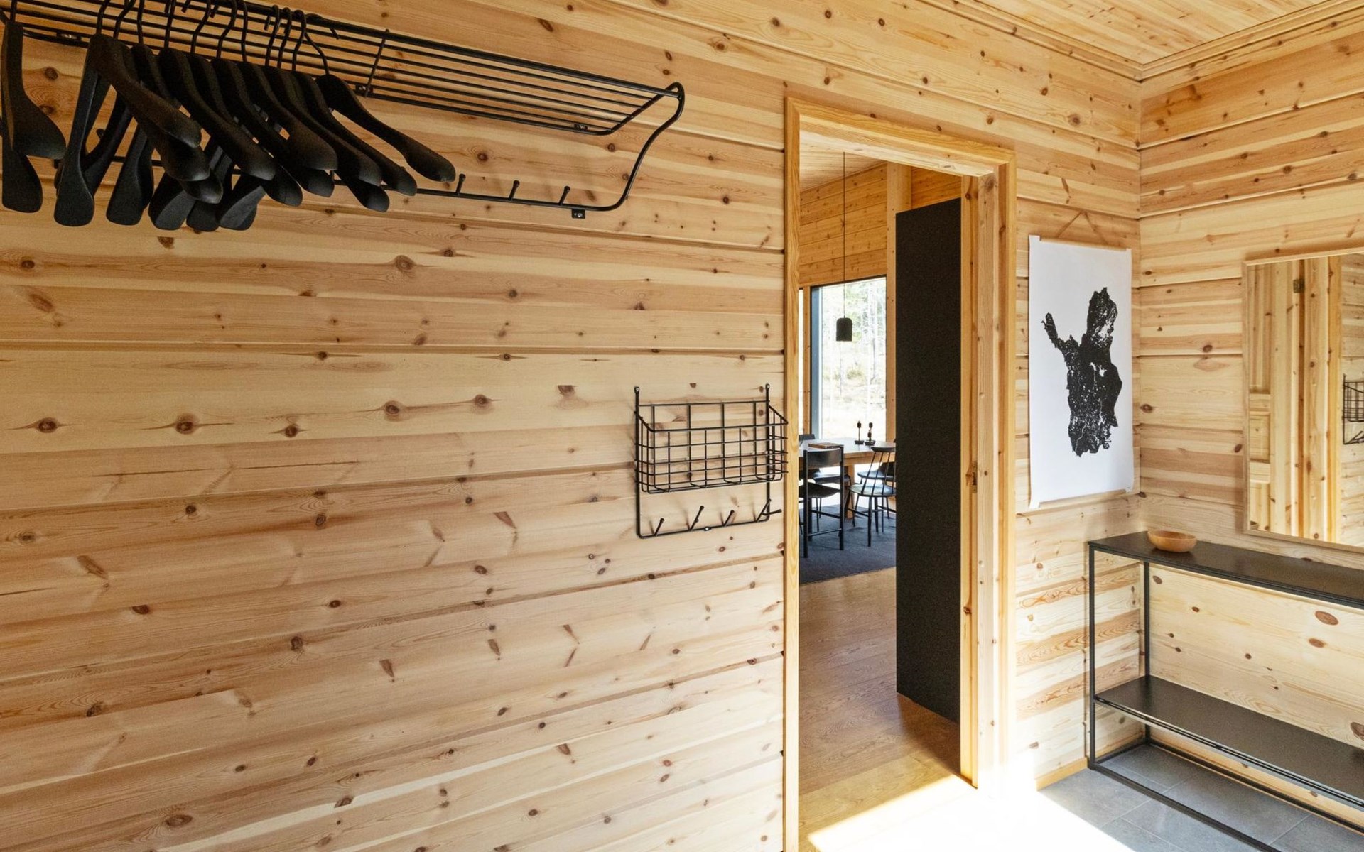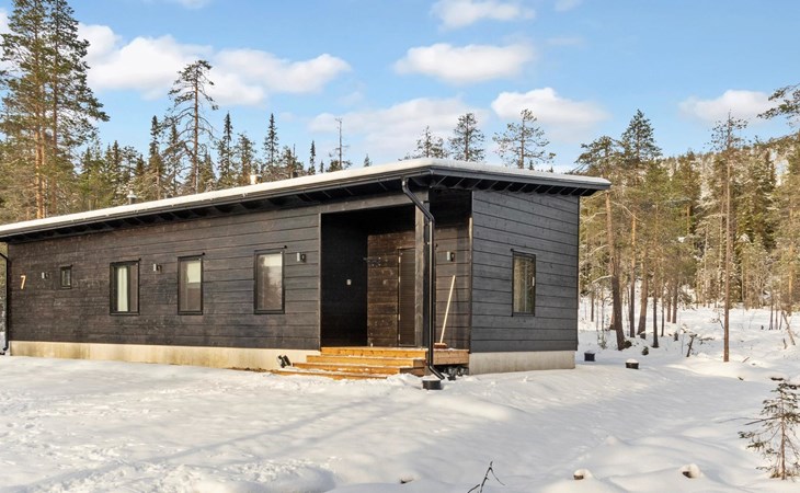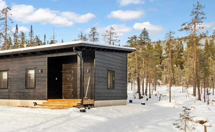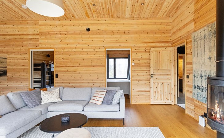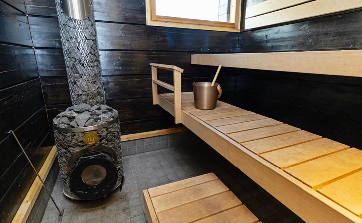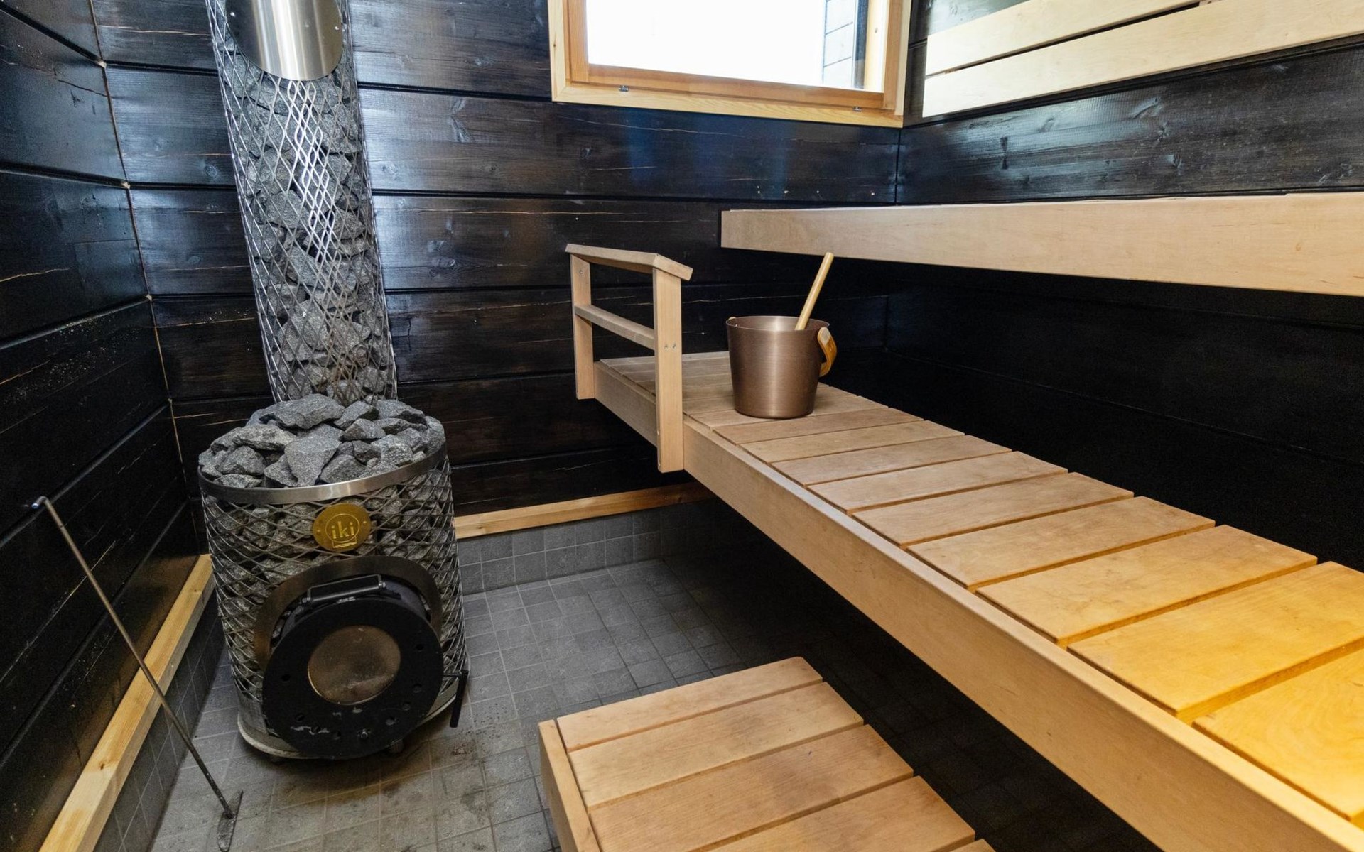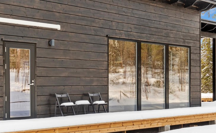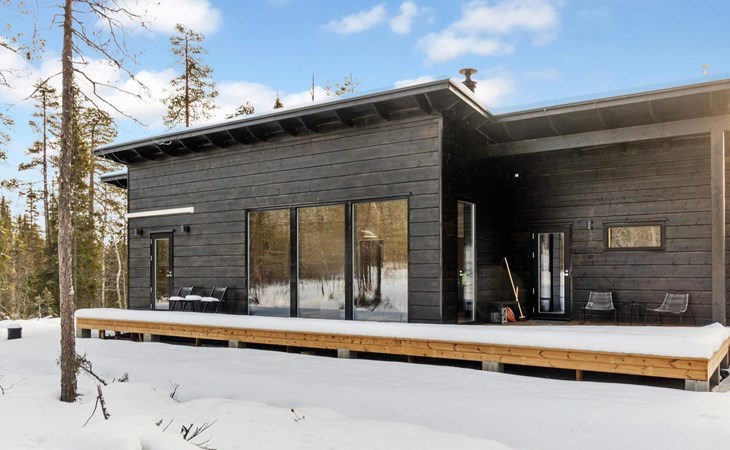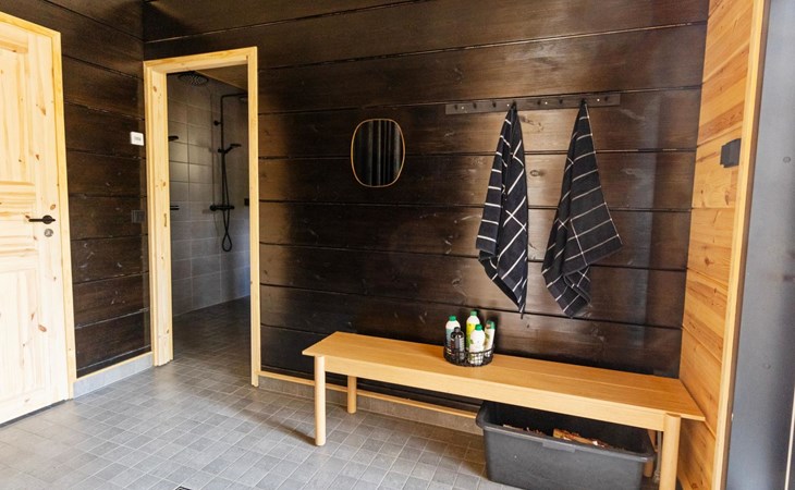 The facilities are designed to enable active holidays as well as complete relaxation: the hall has enough space for ski shoes and outerwear, as well as a drying cabinet for wet hats and gloves; the living room has a large sofa for enjoying the view and the fireplace. Even large group can enjoy dinner at the dining table; the sauna warms up slowly and is wood-heated. From the sauna, there is direct access to the terrace. The bedrooms can be conveniently combined or separated from the common spaces by using sliding doors.