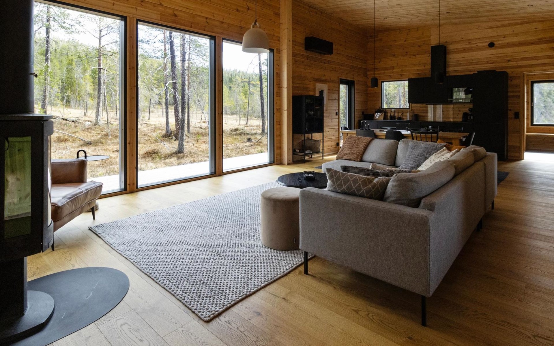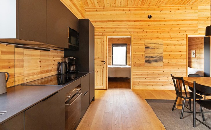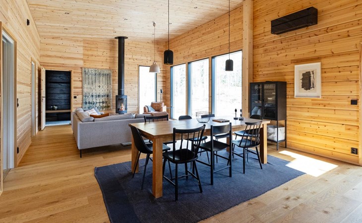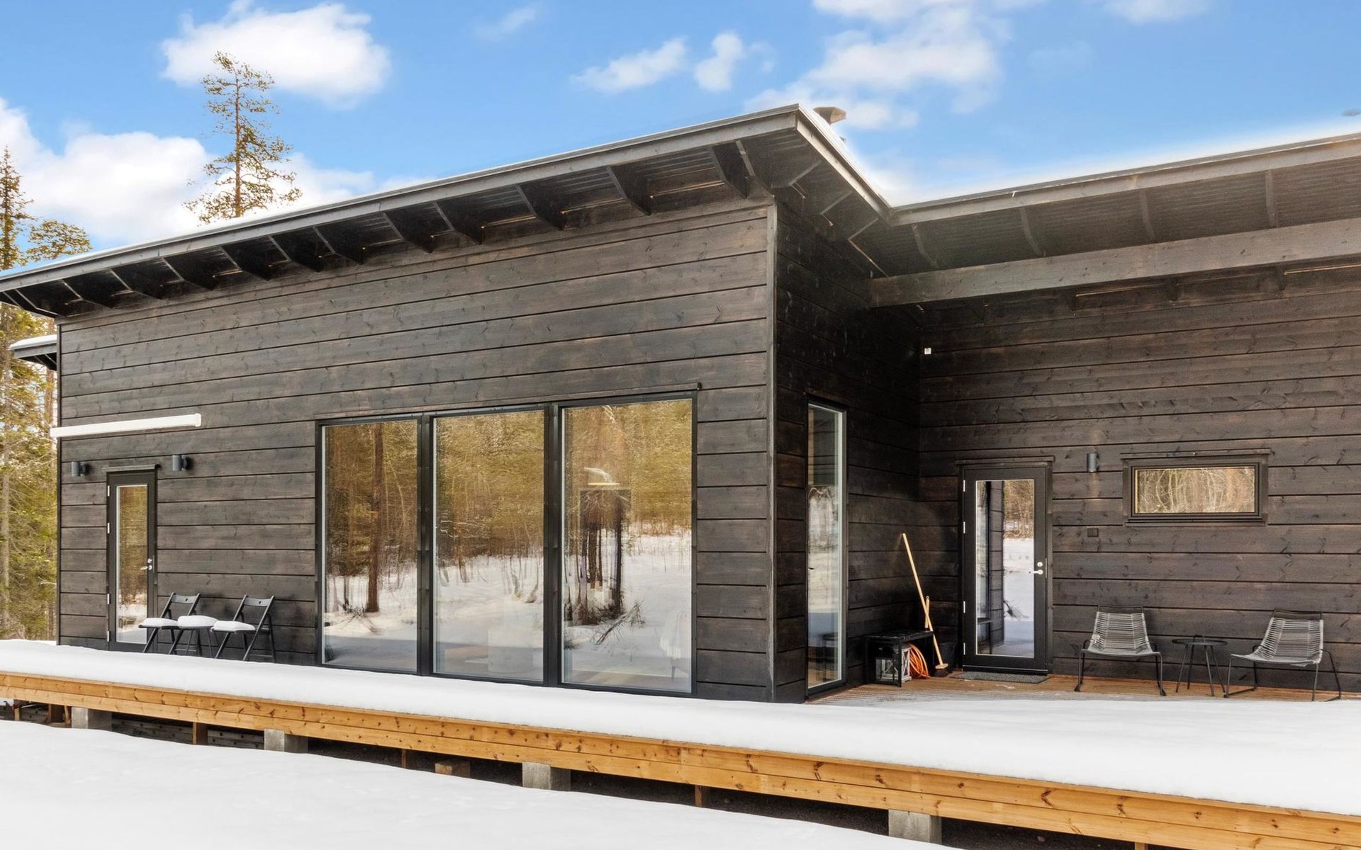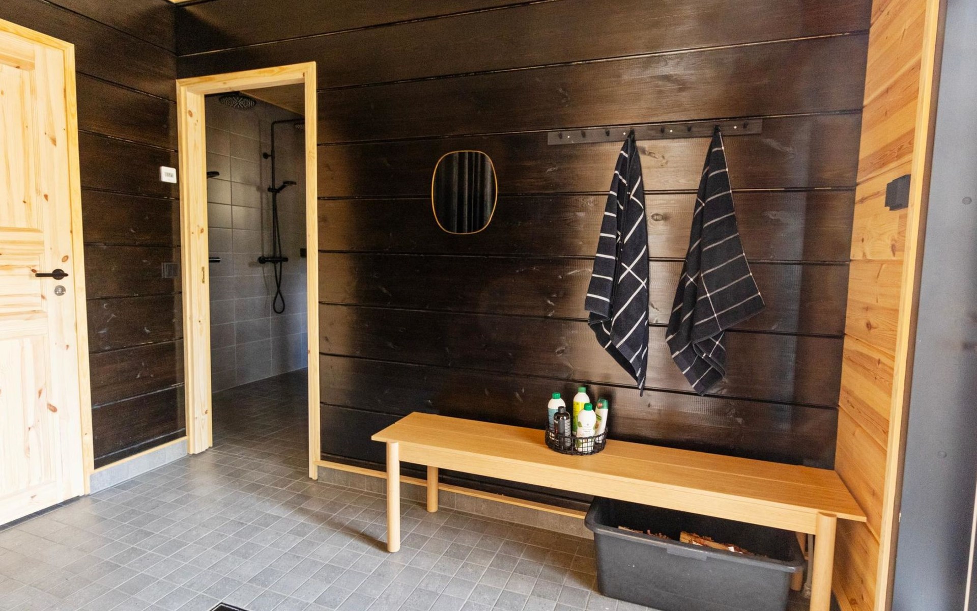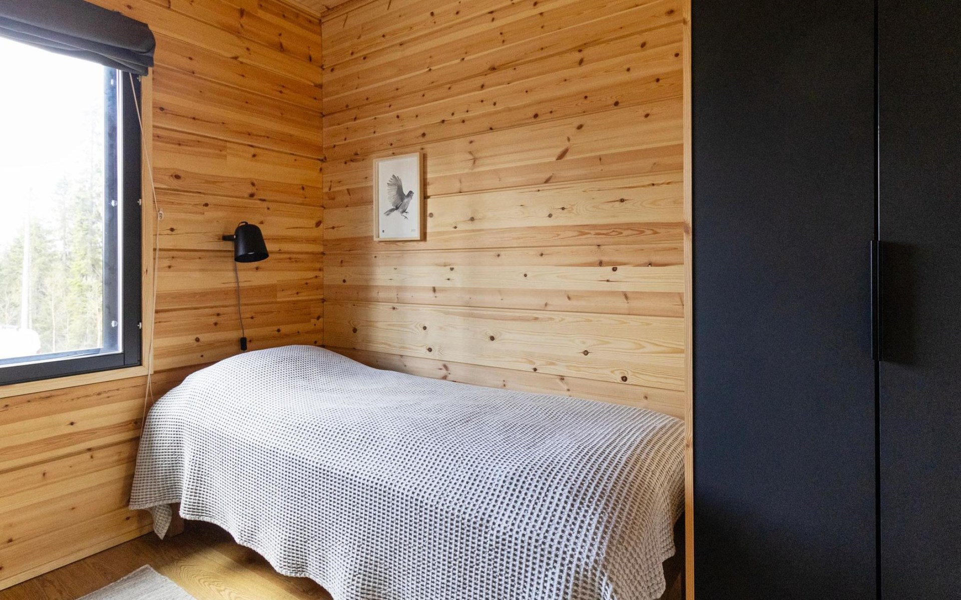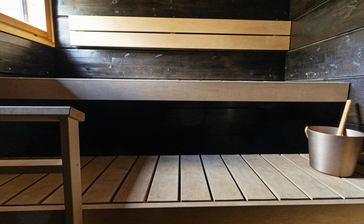 The facilities are designed to enable active holidays as well as complete relaxation: the hall has enough space for ski shoes and outerwear, as well as a drying cabinet for wet hats and gloves; the living room has a large sofa for enjoying the view and the fireplace. Even large group can enjoy dinner at the dining table; the sauna warms up slowly and is wood-heated. From the sauna, there is direct access to the terrace. The bedrooms can be conveniently combined or separated from the common spaces by using sliding doors.