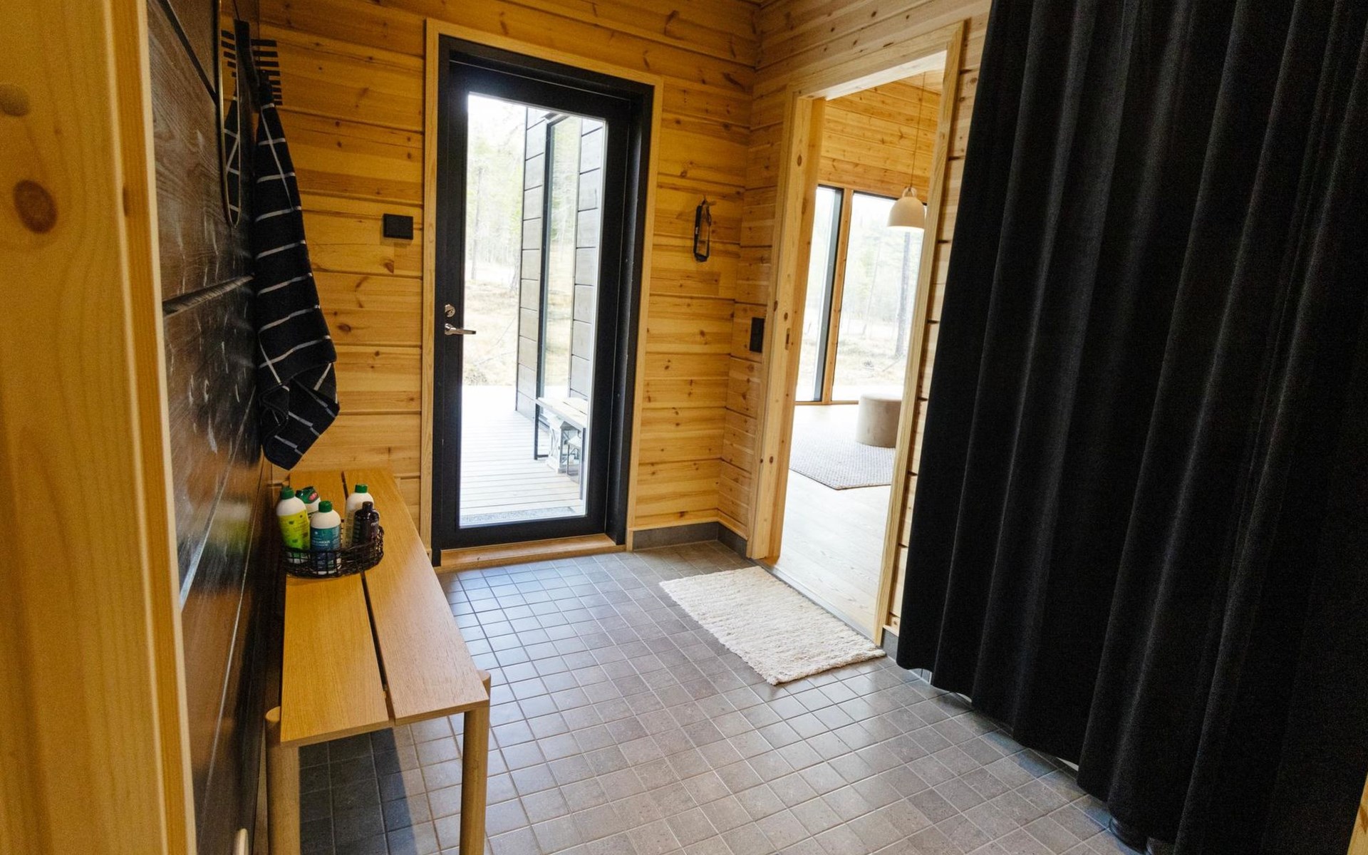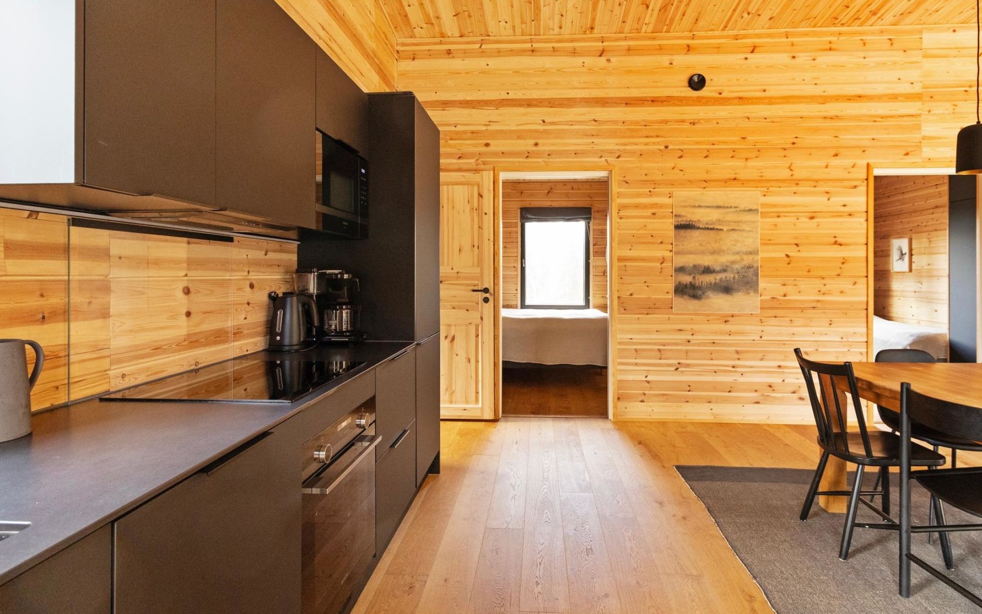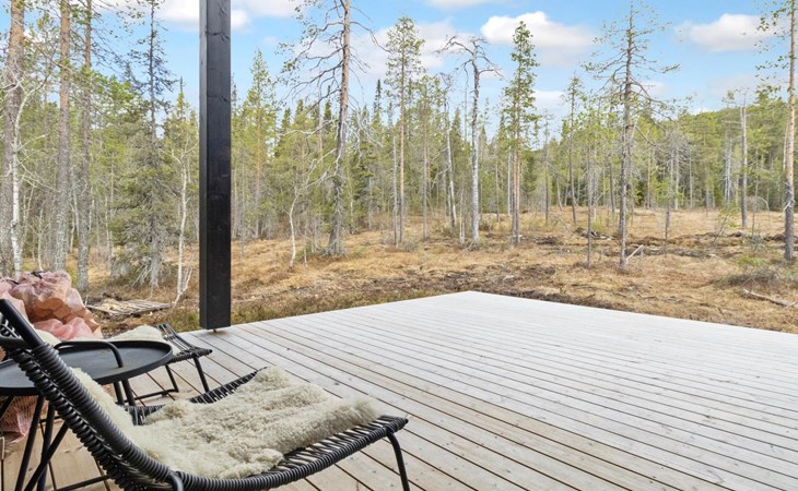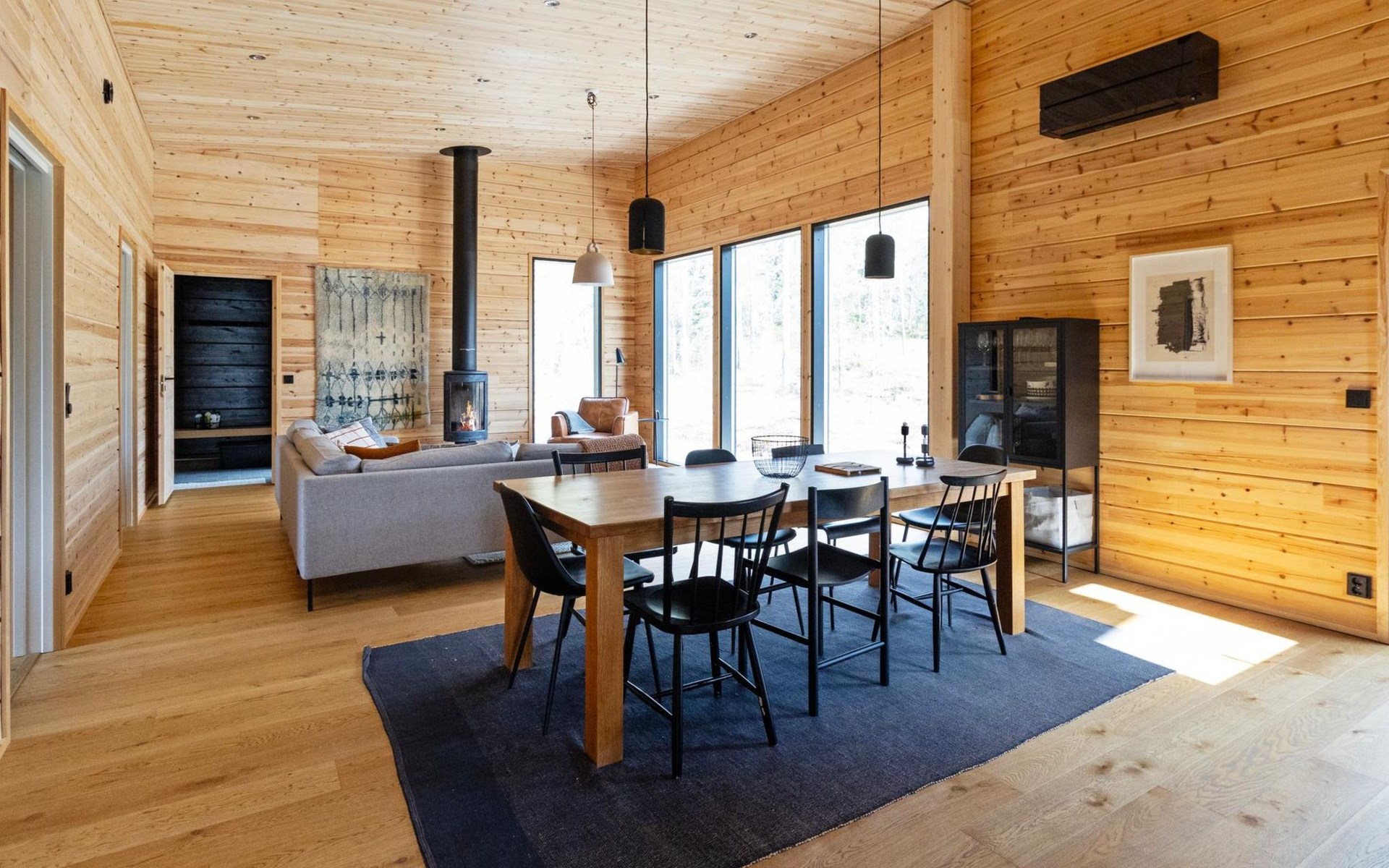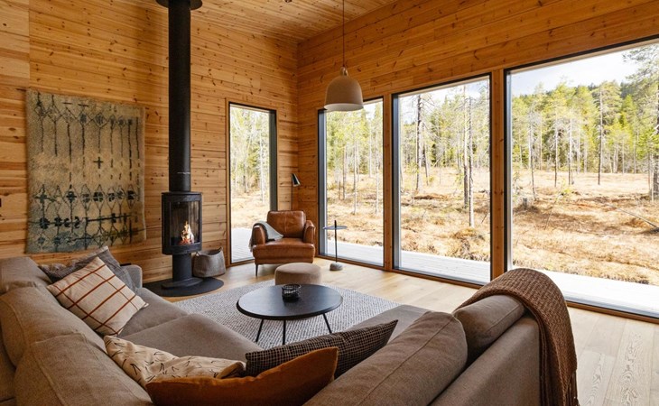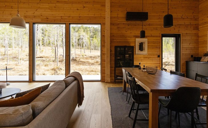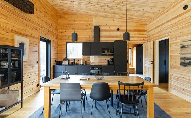 The facilities are designed to enable active holidays as well as complete relaxation: the hall has enough space for ski shoes and outerwear, as well as a drying cabinet for wet hats and gloves; the living room has a large sofa for enjoying the view and the fireplace. Even large group can enjoy dinner at the dining table; the sauna warms up slowly and is wood-heated. From the sauna, there is direct access to the terrace. The bedrooms can be conveniently combined or separated from the common spaces by using sliding doors.