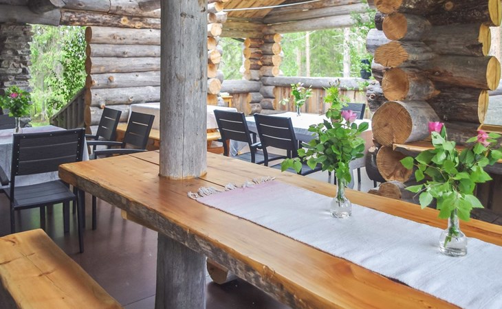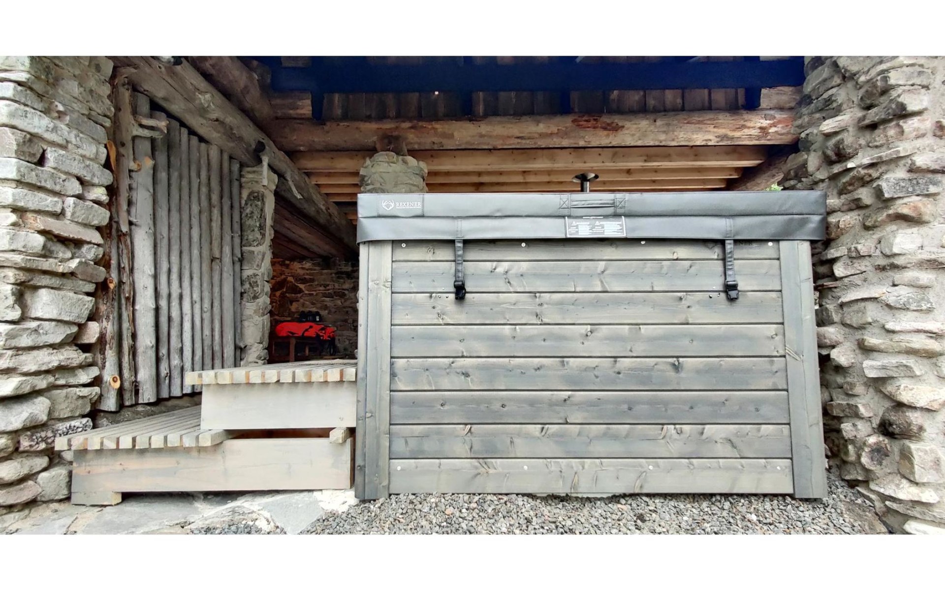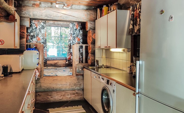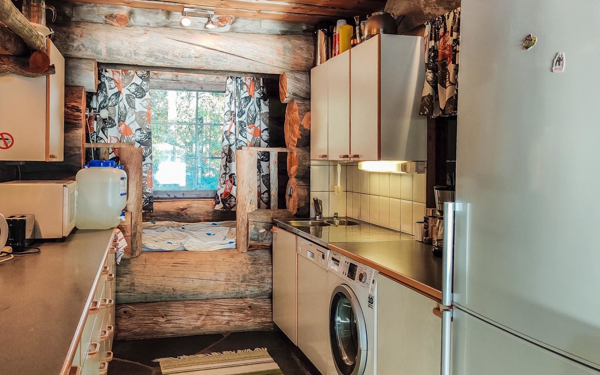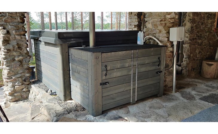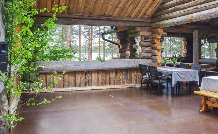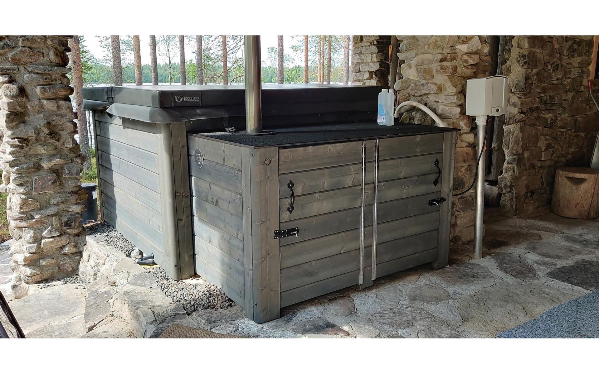 Lakeshore sauna (15 m²) with dressing room and open porch, sauna has cauldron, electric light and heating. Lakeshore sauna can be used year around. Possibility to rent hot tubas pre-heated for extra fee from owner. Please order the hot tub from the owner latest 3 days before arrival. The owner will guide you in using the hot tub and will charge a usage fee on site (1-3 days € 150 and 4-7 days € 200 in 2025). The hot tub is oil heated and automated. The thermostat keeps the water evenly warm.
