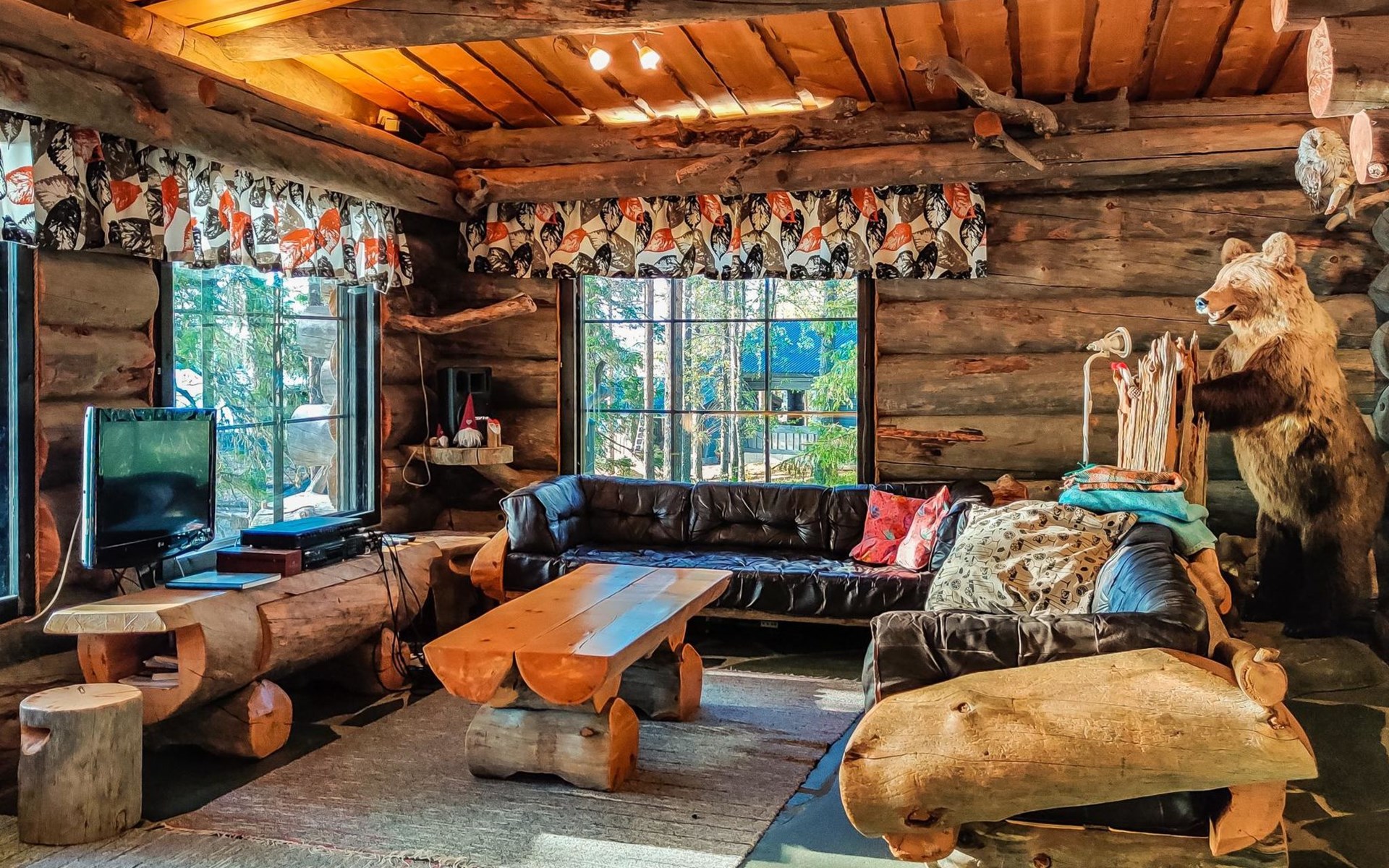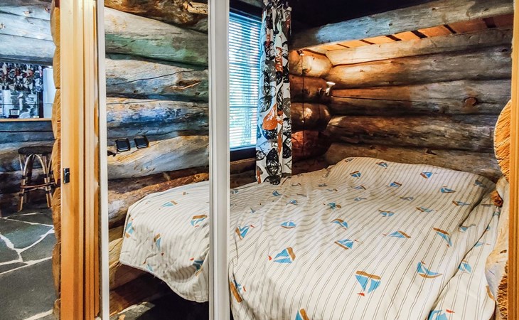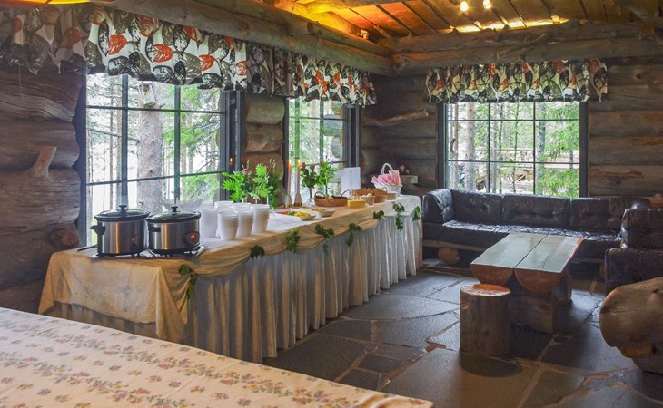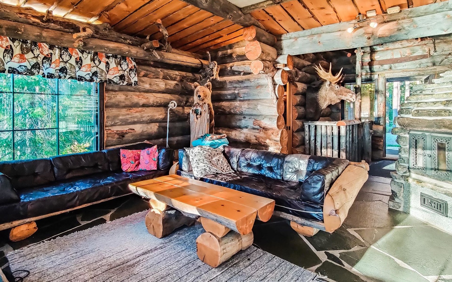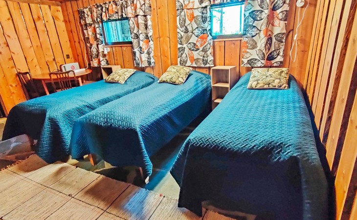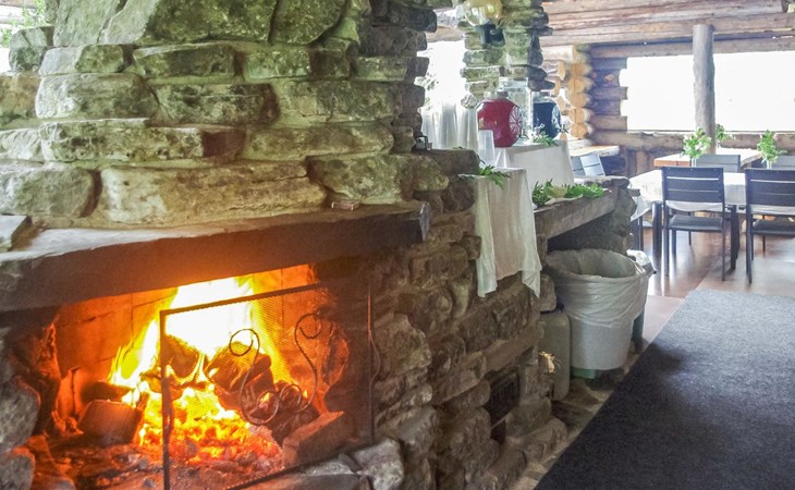 2-storey silverlog cottage 1993, kitchen, living room, bedroom double bed (width 160 cm), sleeping alcove 1 bed (120 cm wide), open porch, downstairs: bedroom 2 beds (width á 100 cm) + 1 bed (width á 80 cm), bedroom 2 beds (width á 100 cm), room with fireplace sofabed (width 160 cm), washroom, sauna ('ever-ready' elec. stove). There are 5 fireplaces in the cottage! Snowmobile port.