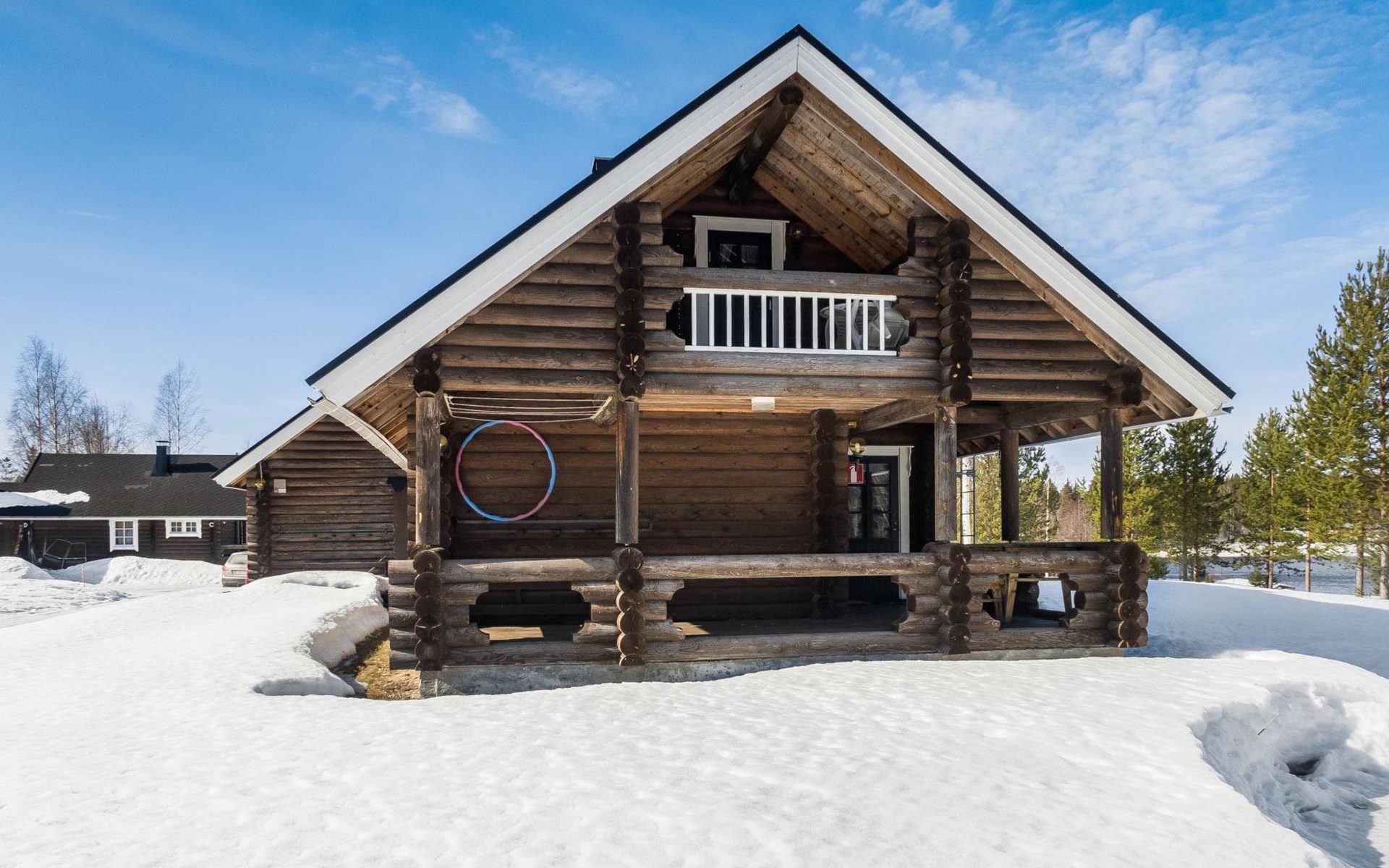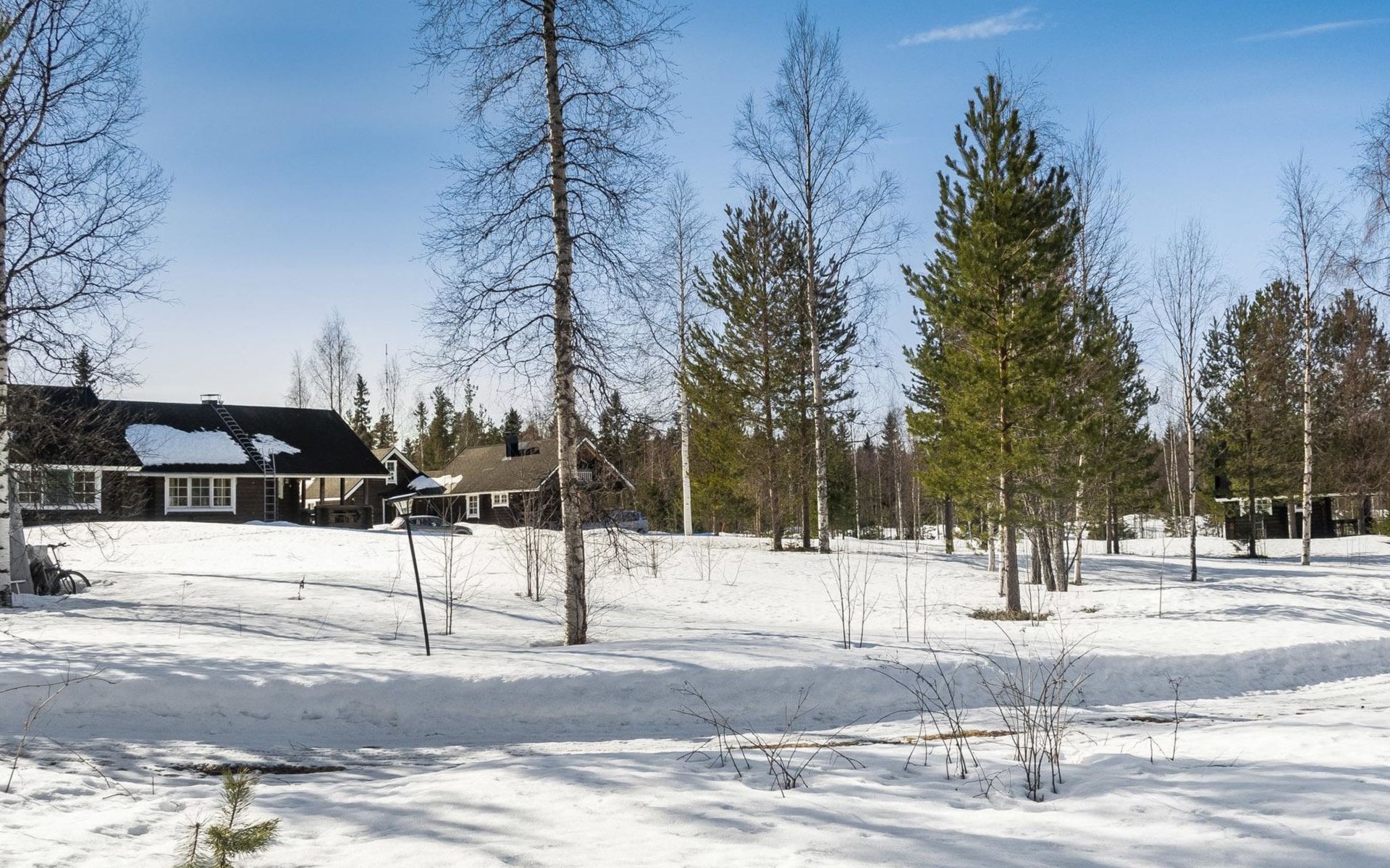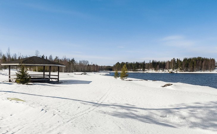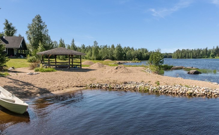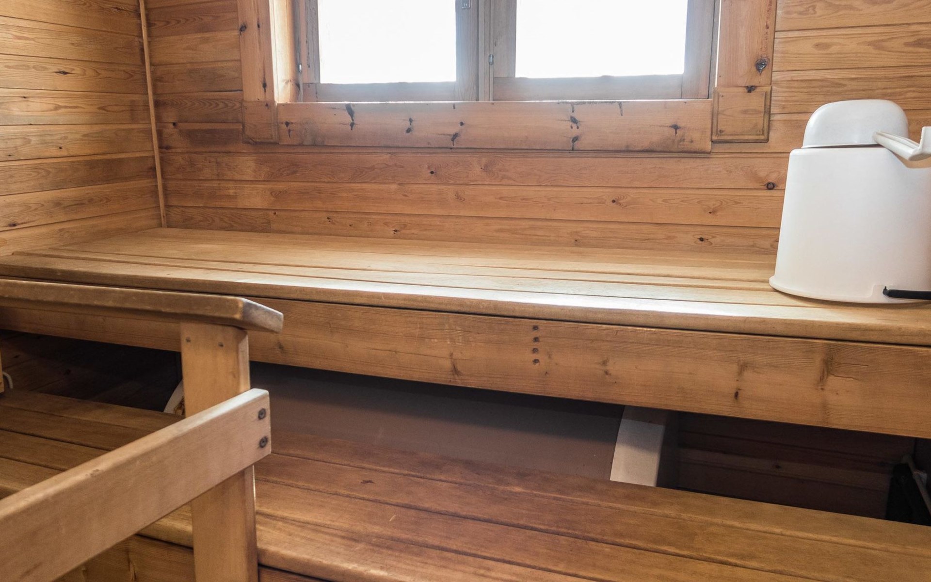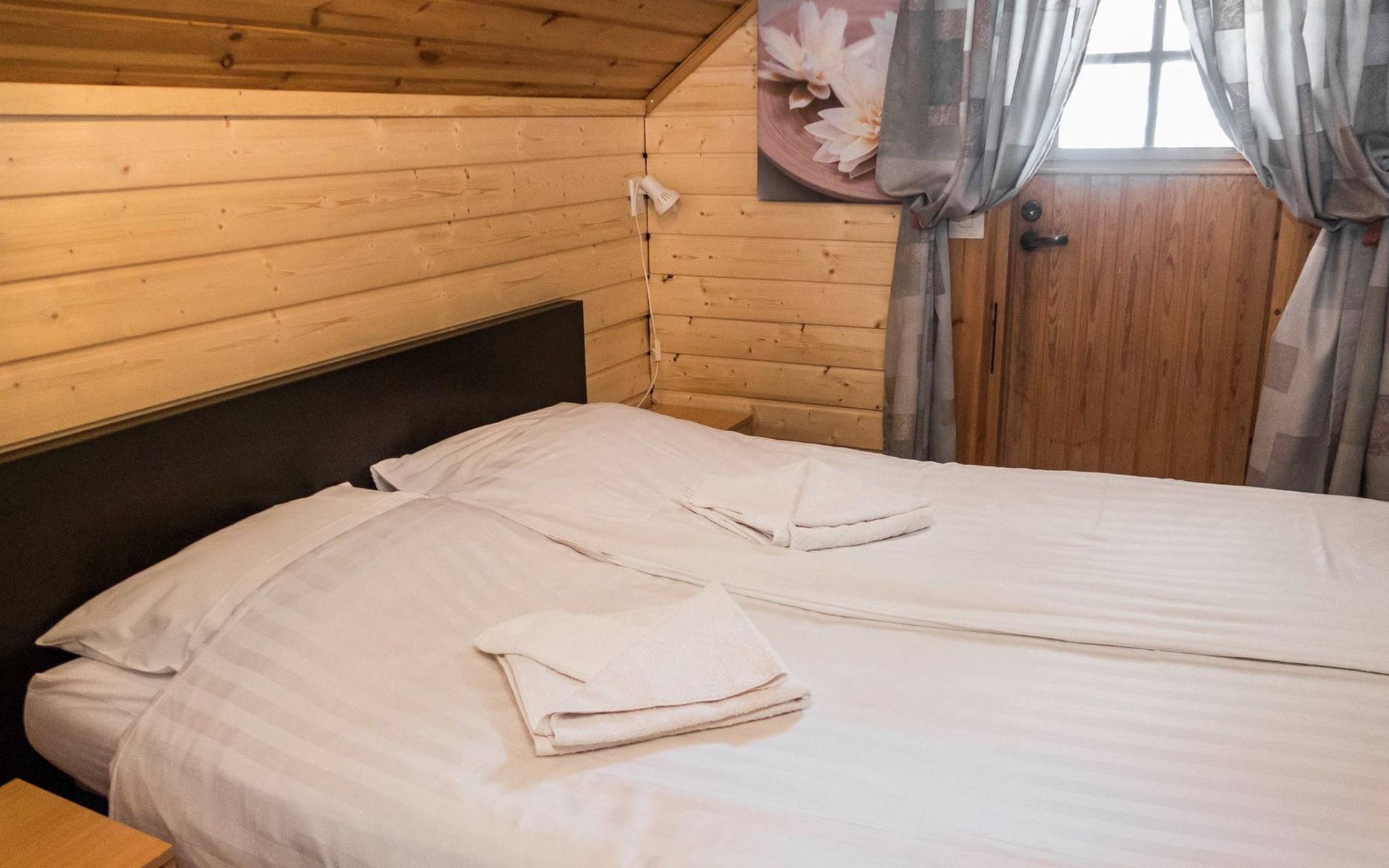 Vuokatticottage F living area 57 m², on two floors. Kitchenette, bright living room with dining table, sofa, TV 42 ", fireplace. Shower/toilet, sauna with electric stove. Loft with steep stairs, small lobby with access to both bedrooms, one with double bed (access to balcony), one with twin beds for 2. Small terrace.