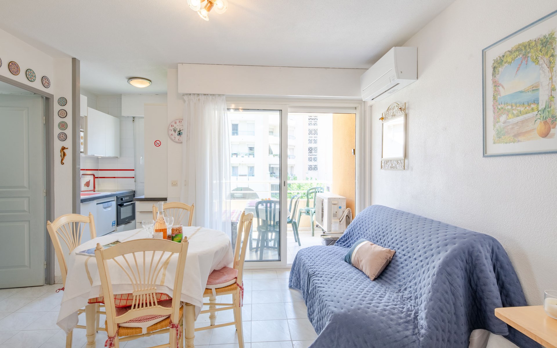 Port Fréjus: Residentie "Les Rives Latines", van 4 verdiepingen. 100 m van zee, 250 m van het strand. Levensmiddelenwinkel 150 m, winkelcentrum 1.6 km, restaurant, café 150 m, bushalte 80 m, station "saint-Raphaël Valescure" 2 km, zandstrand "Fréjus" 250 m, park "Base Nature" 100 m, duikschool, overdekt zwembad 200 m. Jachthaven 50 m, golfterrein (18 holes) 7 km. Attracties in de buurt: Saint-Raphaël 2 km, Cannes 40 km, Saint-Tropez 40 km, Nice 70 km, Gorges du Verdon 90 km. Bekende meren kunnen gemakkelijk worden bereikt: Sainte-Croix 90 km. Wandelgebied Estérel 8 km. De sleuteloverdracht vindt plaats bij het agentschap Interhome in Port Fréjus.