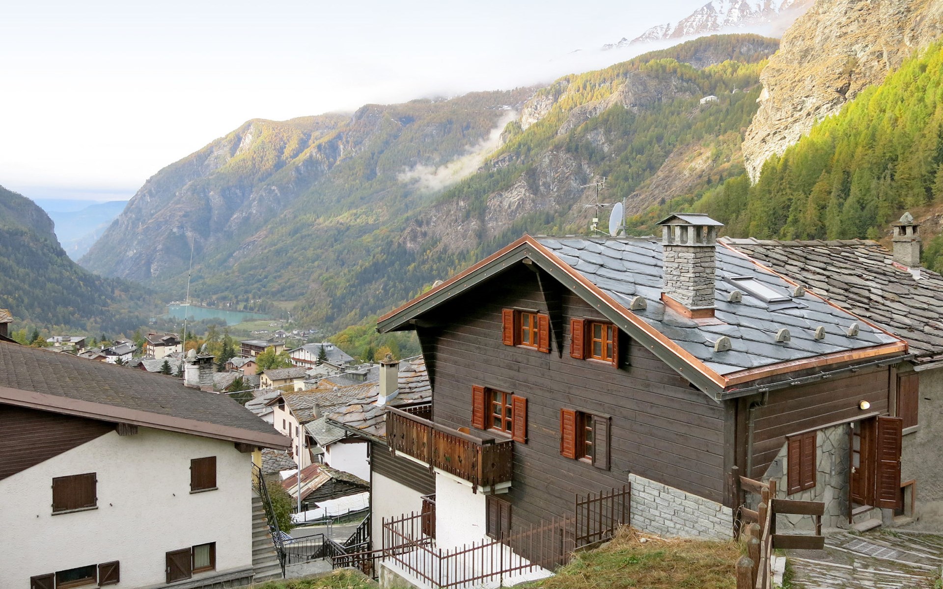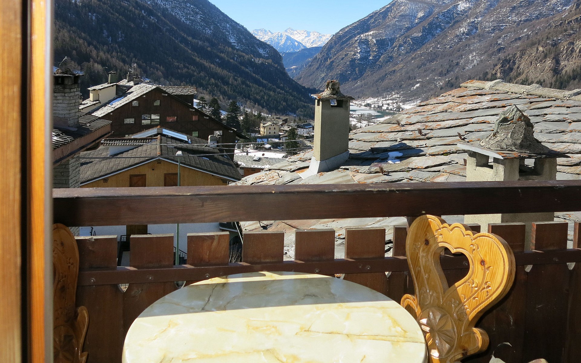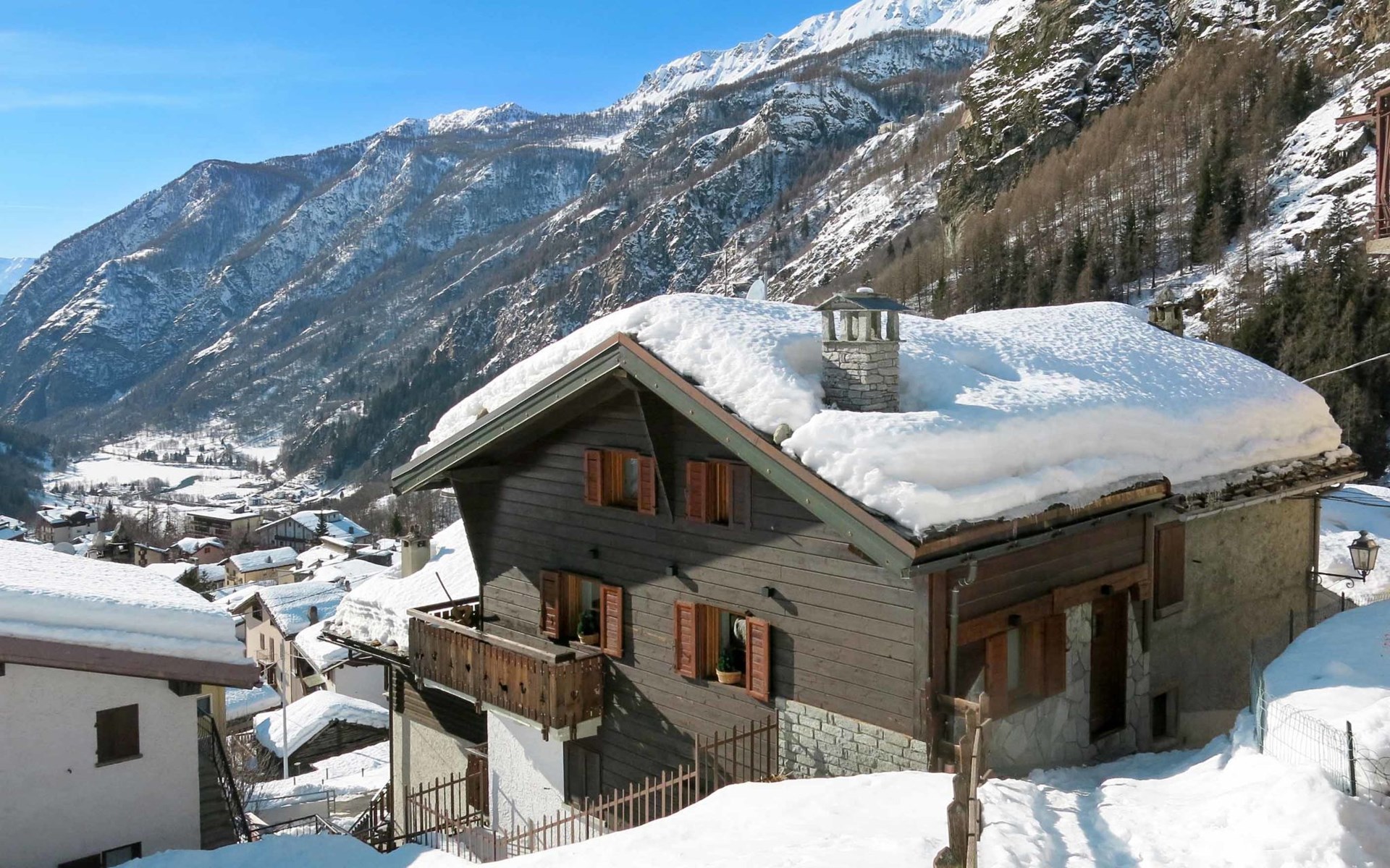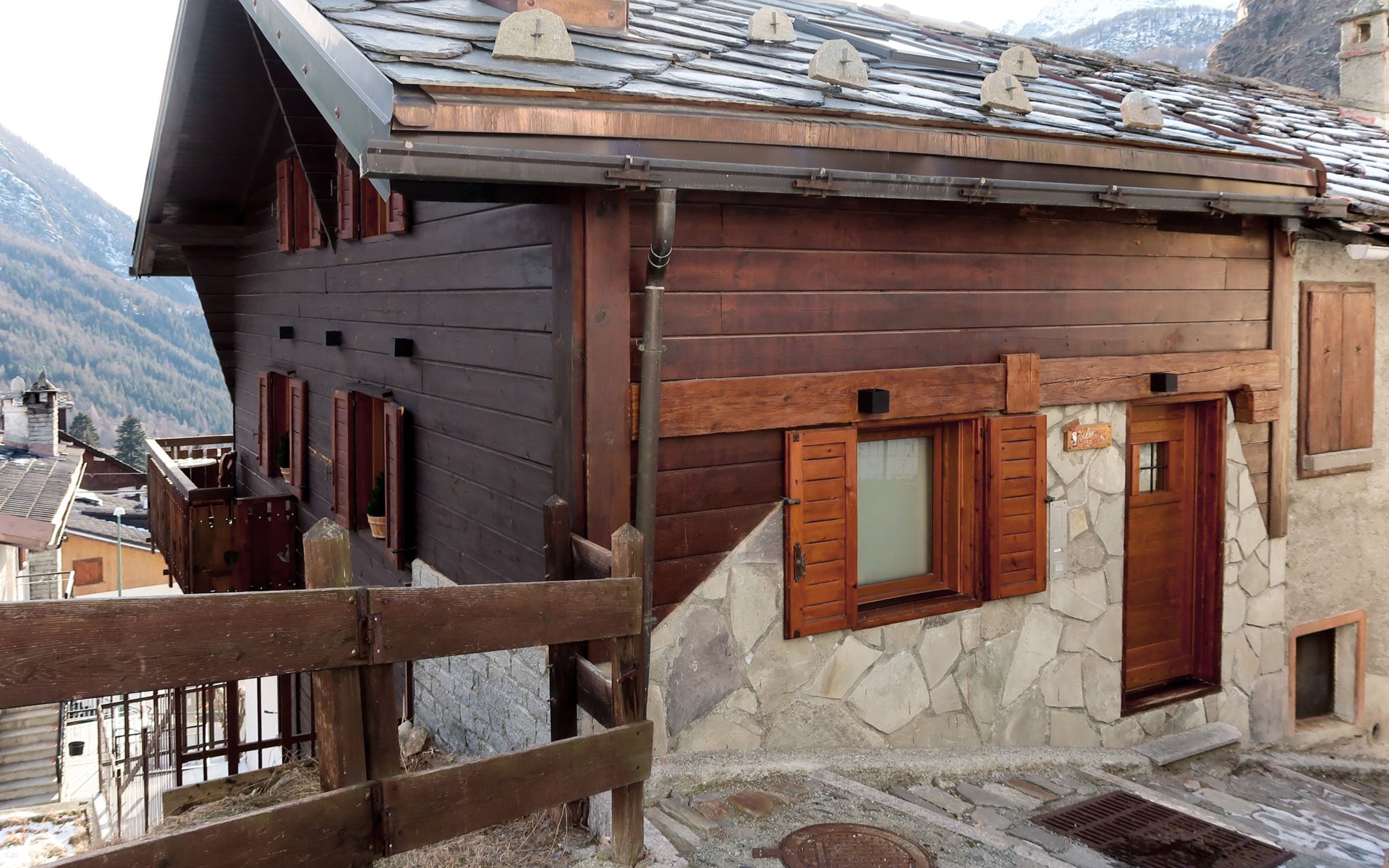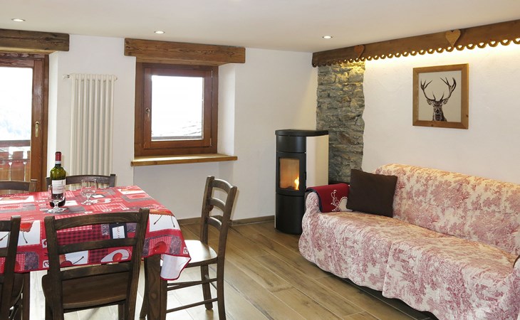 Rustieke chalet "Plen Solei", 1.600 m boven zeeniveau. 2 appartementen in de woning. Boven Valtournenche, 300 m van het centrum van Valtournenche, 8.5 km van het centrum van Breuil Cervinia, 18 km van het centrum van Chatillon/Saint Vincent, zonnige ligging tegen een helling, 700 m van het skigebied. In het huis: receptie, berging voor ski's, wasmachine (voor medegebruik), skischoendroger. Toegangsweg tot 100 m voor aan het huis. 100 m trappenweg naar het huis. Openbare parkeerplaatsen 100 m. Supermarkt, restaurant 300 m, bushalte "Valtournenche" 500 m, treinstation "Chatillon" 18 km, overdekt zwembad 800 m. Golfterrein (18 holes) 8.5 km, skilift, kabelbaan op, skipisten 700 m, skibushalte 300 m, skischool 700 m.