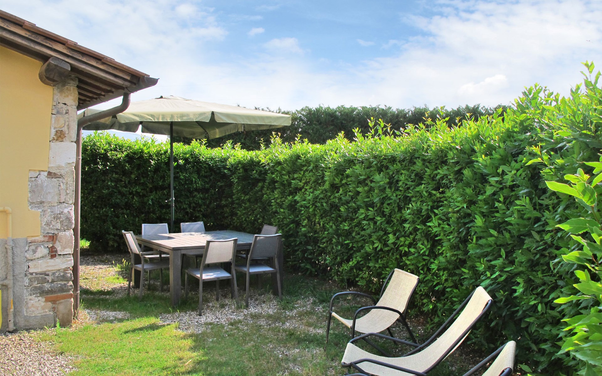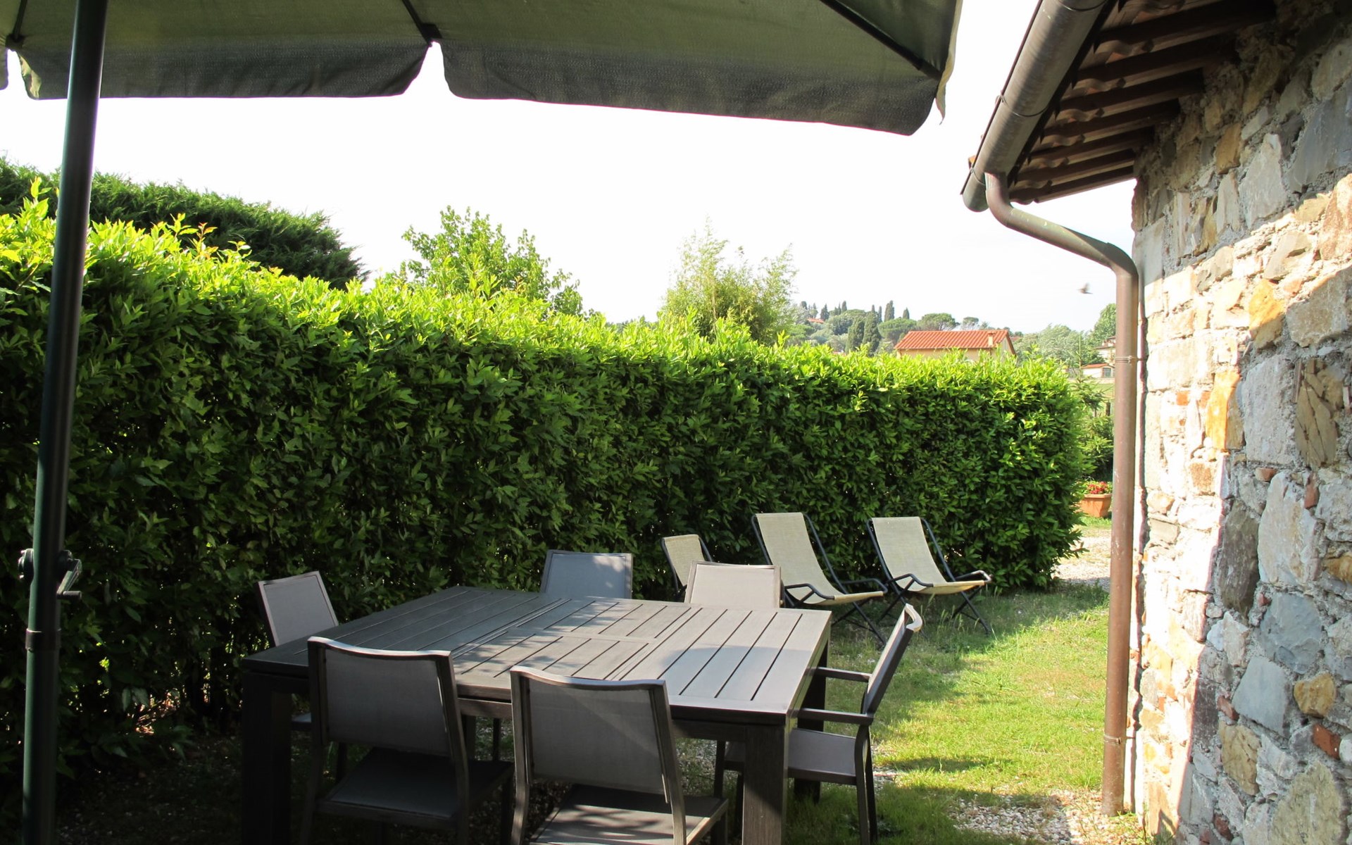 San Alessio: Mooi, rustieke agriturismo "Ai Linchi", omgeven door weiden en velden. Huurobject bestaande uit hoofd-/ bijgebouw, 600 m van het centrum van San Alessio, 5 km van het centrum van Lucca, zonnige ligging, 30 km van zee, 30 km van het strand, te midden van groen. Voor medegebruik: terrein 1.000 m2 met planten en bloemen, weide, openluchtzwembad (12 x 6 m, 150 cm diepte, seizoensgebonden beschikbaarheid: 13.Mei. - 07.Okt.). Tafeltennis, kinderspeelplaats, onderhoud zwembad door de eigenaar/tuinman. In het huis: fietsverhuur. Ontbijt en half pension op verzoek op aanvraag (extra). Parkeerplaats op het terrein. Supermarkt 700 m, bushalte 300 m, zandstrand "Viareggio" 30 km. Attracties in de buurt: Pisa 22 km, San Giuliano Terme 17 km, Collodi Pinocchio Park 20 km, Montecatini Terme 36 km, Monsummano Terme 38 km, Forte dei Marmi 41 km. Bekende meren kunnen gemakkelijk worden bereikt: Lago di Massaciuccoli 17 km, Torre del Lago 28 km. Auto noodzakelijk. Vergelijkbare accommodaties kunnen worden geboekt.
