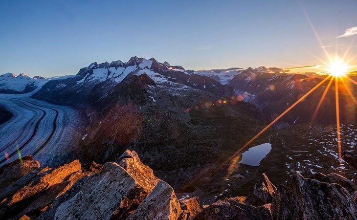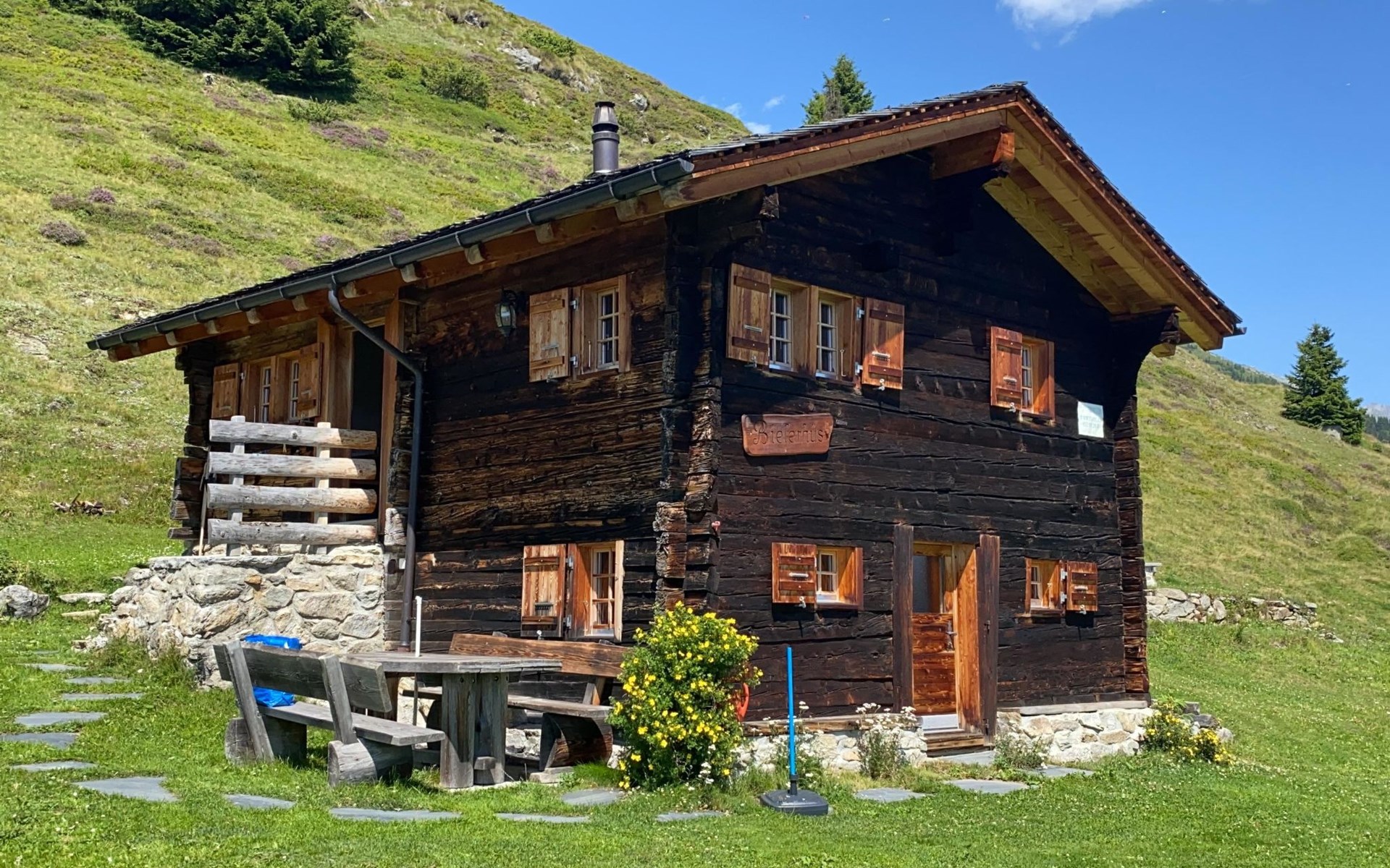 54 m2. Meer informatie beschikbaar bij de aanbieder: Spend relaxing holidays in the cozy and romantic mountain hut Bielerhüs. The alpine chalet has been carefully renovated and offers everything you need for a relaxing and comfortable holiday. Accessibility: The cottage/apartment is easily available with the cabin car Fiesch-Eggishorn. In summer time it’s possible to rent a Jeep (CHF 30.- per drive) from Fiescheralp to the cottage. The drive is about 30 minutes. In winter time it’s possible to let the baggage transport with a snow cat (CHF 95.- per drive) or it is also possible to transport your luggage yourself on your skis or snowboards. There are possibilities to buy some food in a little shop in the “Restaurant Bergfreund” or a bigger shop (Coop) on the Bettmeralp. Alphütte Bielerhüs: The ‘Alphütte Bielerhüs’ is located below the Fiescheralp (2,222 meters above sea level.) in the hamlet Fiescherstafel (1,890 m above sea level.) in the beautiful Aletsch Arena (UNESCO World Heritage), right on the slopes and the many hiking trails. A perfect 360° panorama on the Eggishorn (2'927 m above sea level.) offers a unique view of the 23 km long Aletsch Glacier (the largest glacier in the Alps) and more than 40 four-thousanders including Eiger, Mönch, Jungfrau and the Matterhorn. In summer the mountain hut is an ideal starting point for many hikes, tours, mountain biking, paragliding and hang flights. In winter, you strap on your skis in the morning and can enjoy directly the slopes. The Aletsch Arena offers 104 km of top prepared slopes in the three ski resorts Fiescheralp, Bettmeralp and Riederalp. The Fiescherstafel is a holiday paradise for nature lovers, recreation seekers, hikers and skiers. From the hut you can enjoy a beautiful view of the Southern Alps.