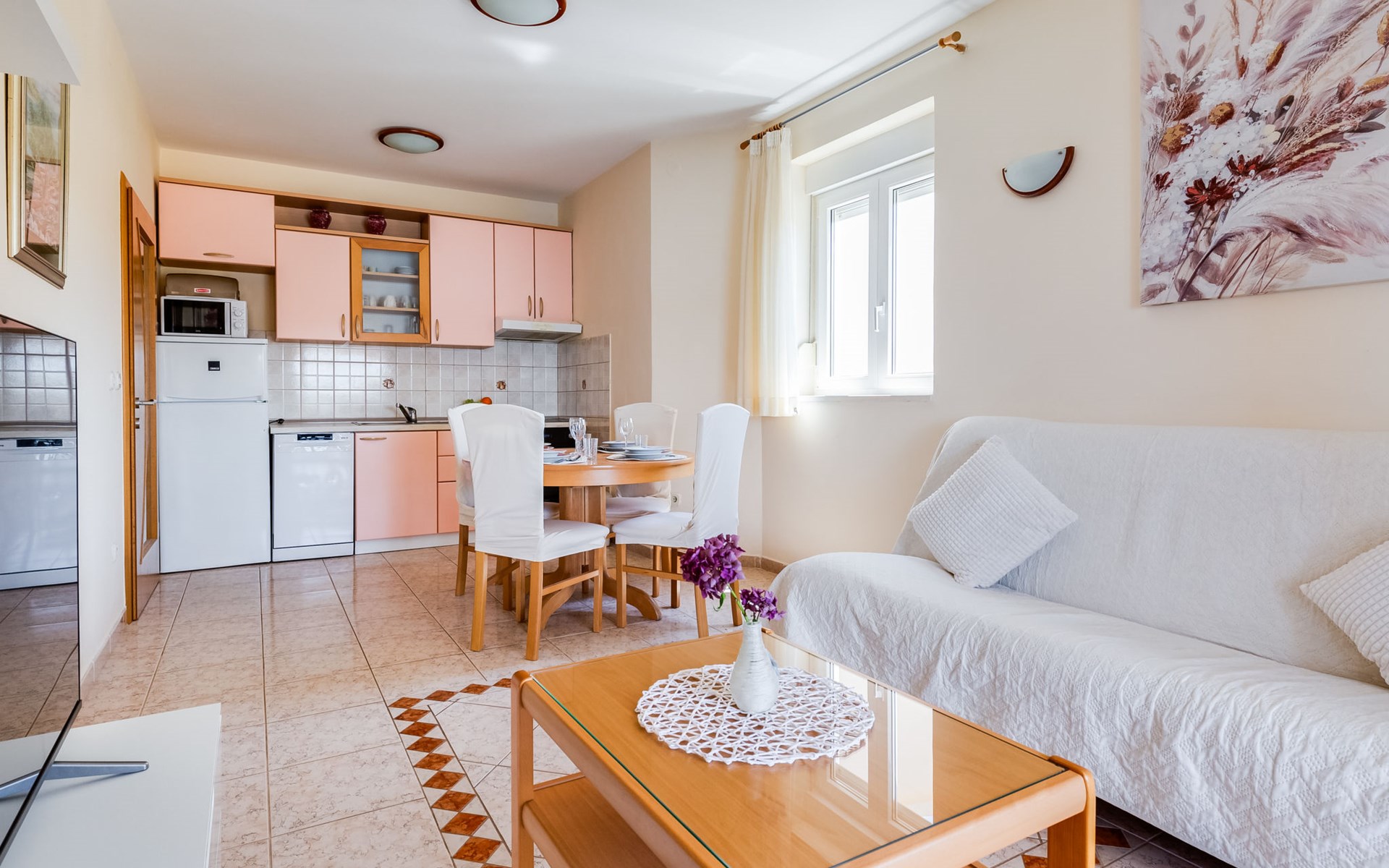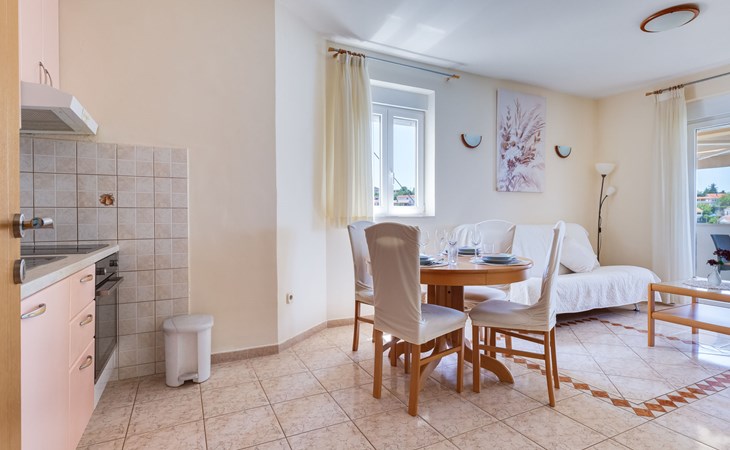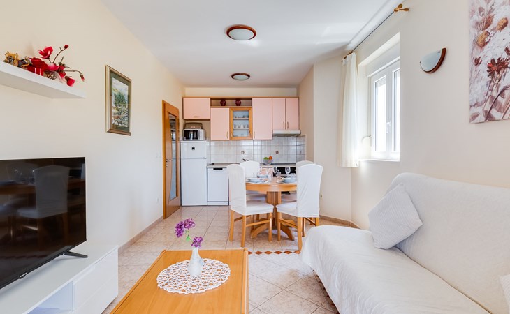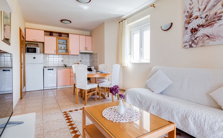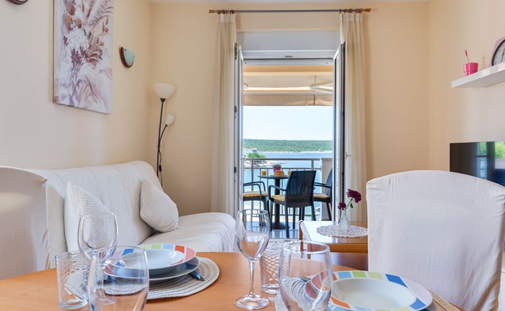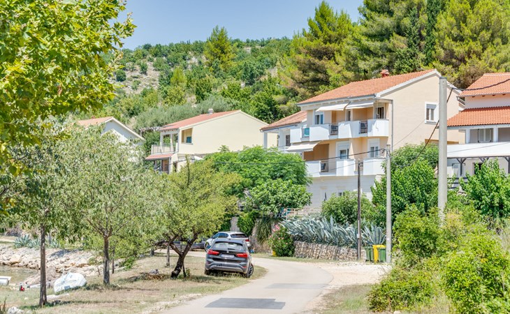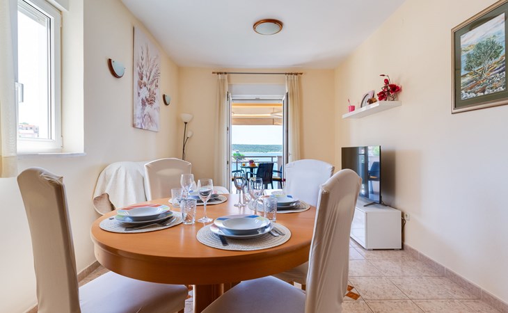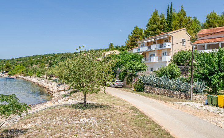 Ribnica 15 km van Novigrad: Appartementencomplex "Daria". 7 km van het centrum van Obrovac, rustige, zonnige ligging, 40 m van zee, 40 m van het strand. Voor medegebruik: barbecue. In het huis: internetaansluiting. Parkeerplaats bij het huis. Winkel 400 m, restaurant 1.5 km, bushalte 25.3 km, kiezelstrand 40 m. Het huis bevindt zich in een rustige baai, met een licht aflopend strand,ideaal voor kinderen. Tegen betaling: boottochten met de huiseigenaar.